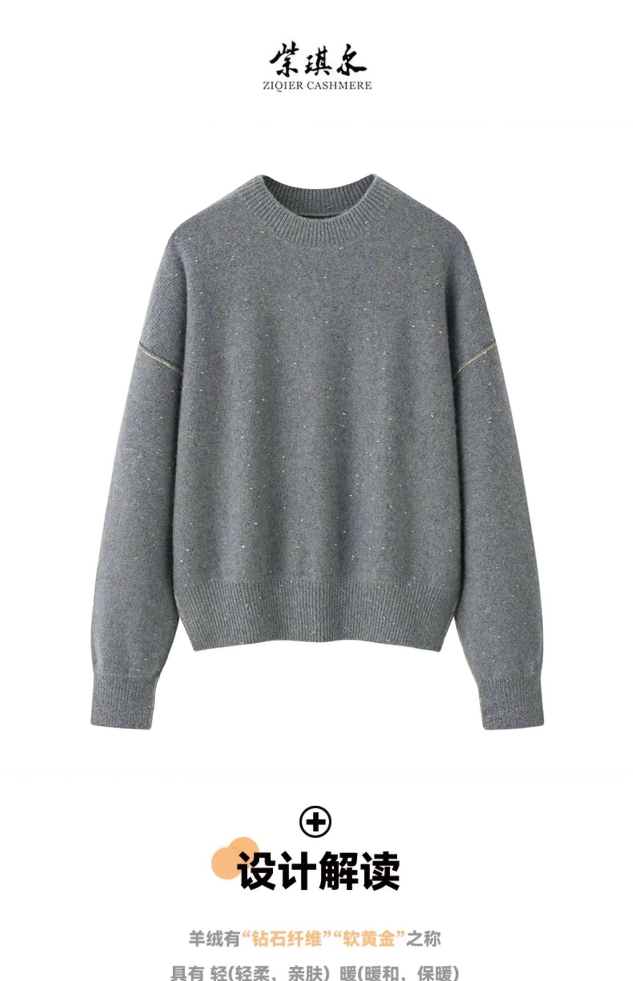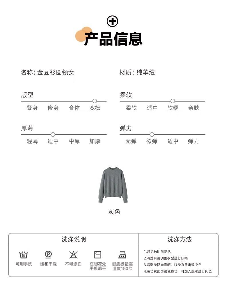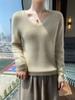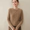Suéter de cachemira 100% pura para mujer, cuello redondo, estilo frijol dorado, otoño e invierno, nuevo, suelto, informal, cálido, camisa de base de punto grueso