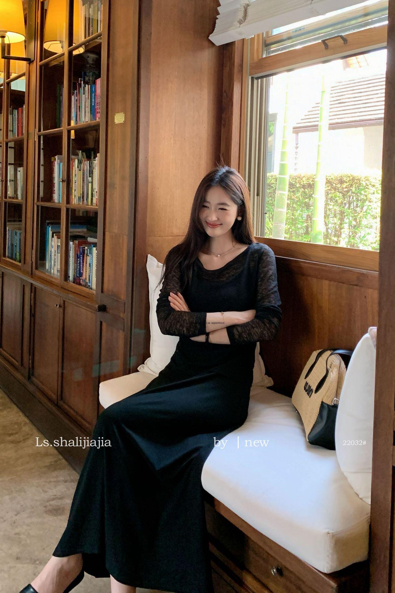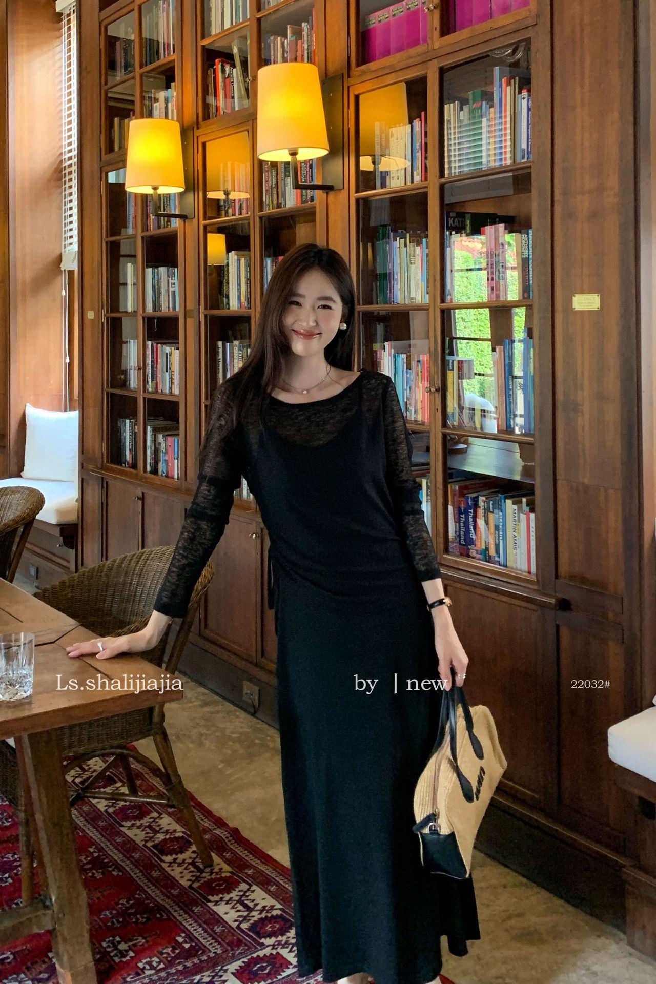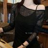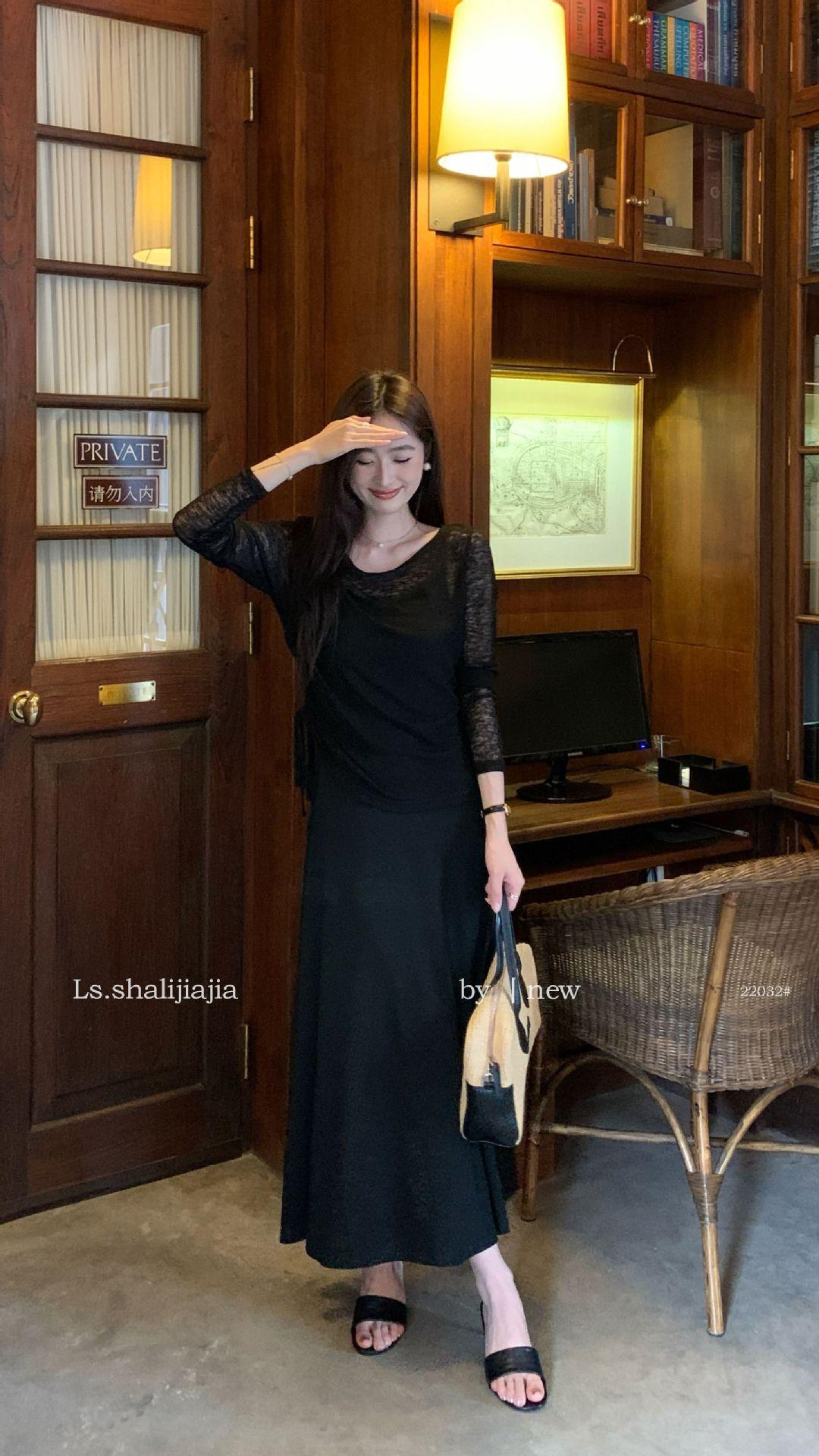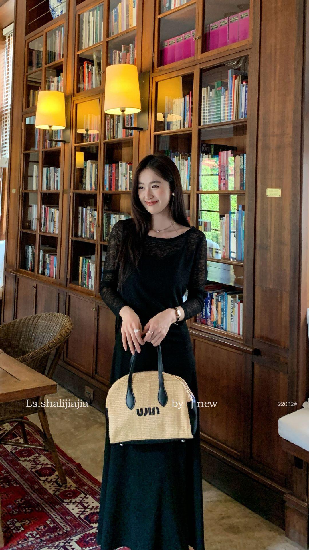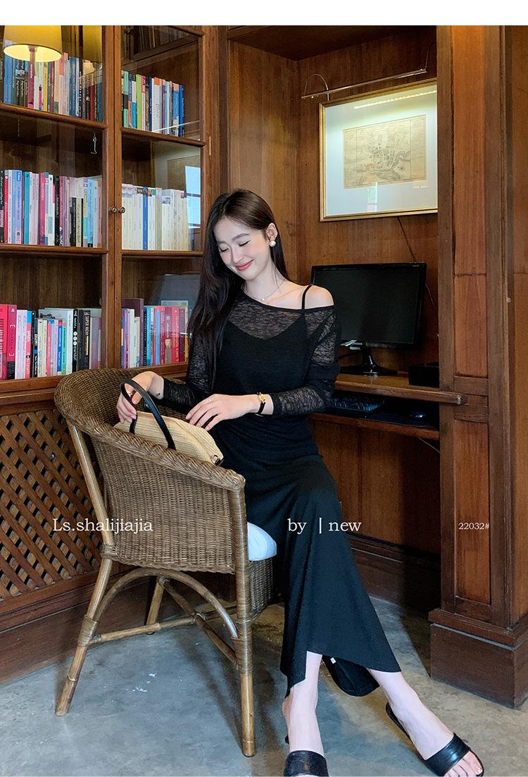LS a Yujie Vestido ajustado Camisa tejida con hombros descubiertos Conjunto de dos piezas 25 Años Primavera Nuevo Ropa de mujer 22032#