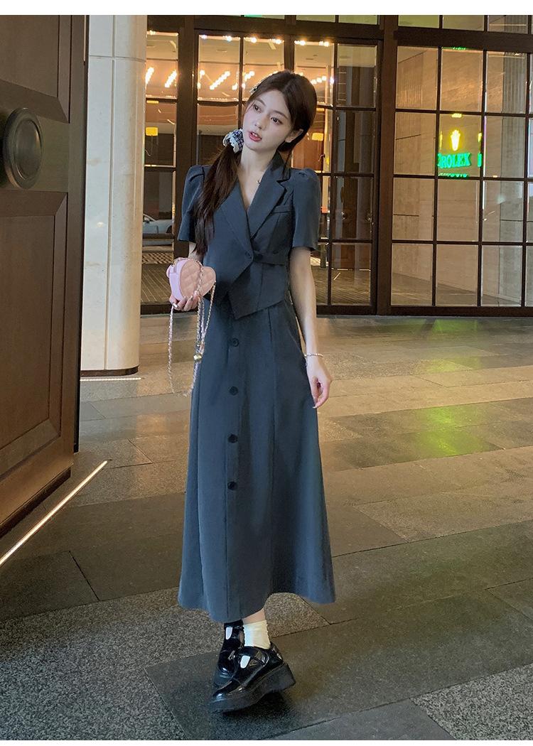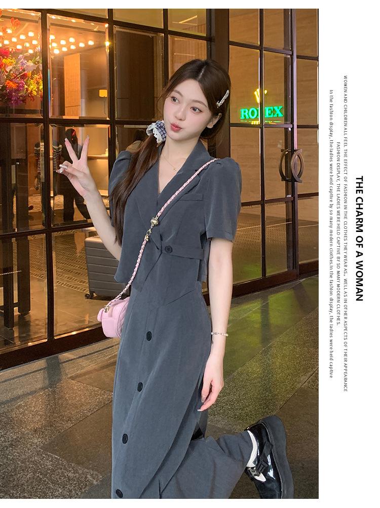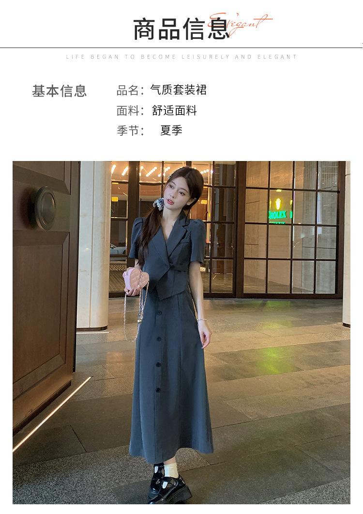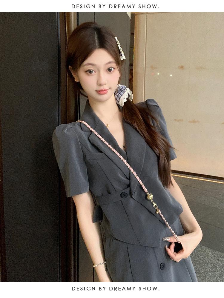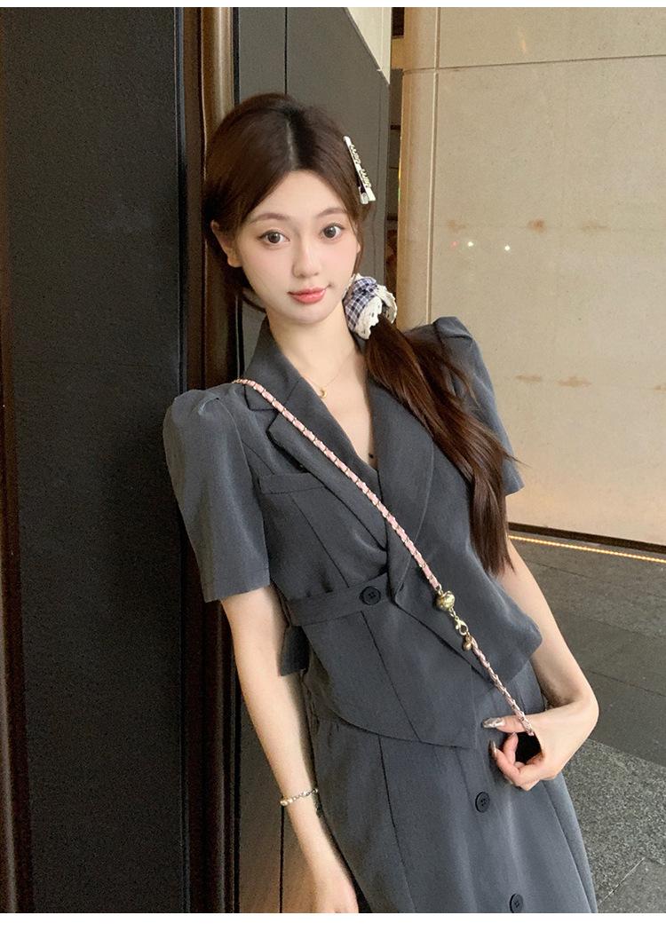 Traje Gris de Verano Nuevo 2025 Vestido Cintura para Mujer Popular de Este Año Look Francés Adelgazante Traje Profesional Falda
