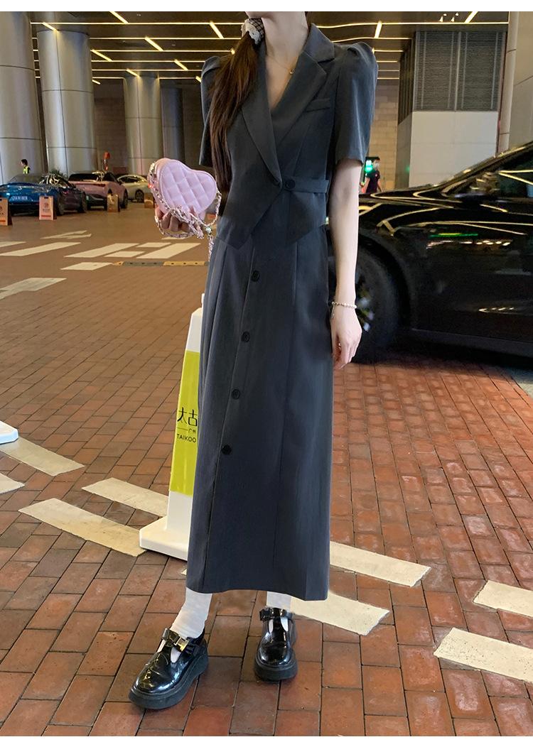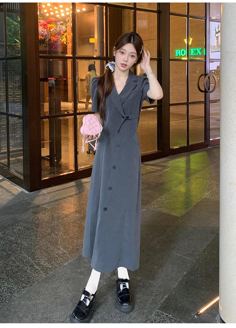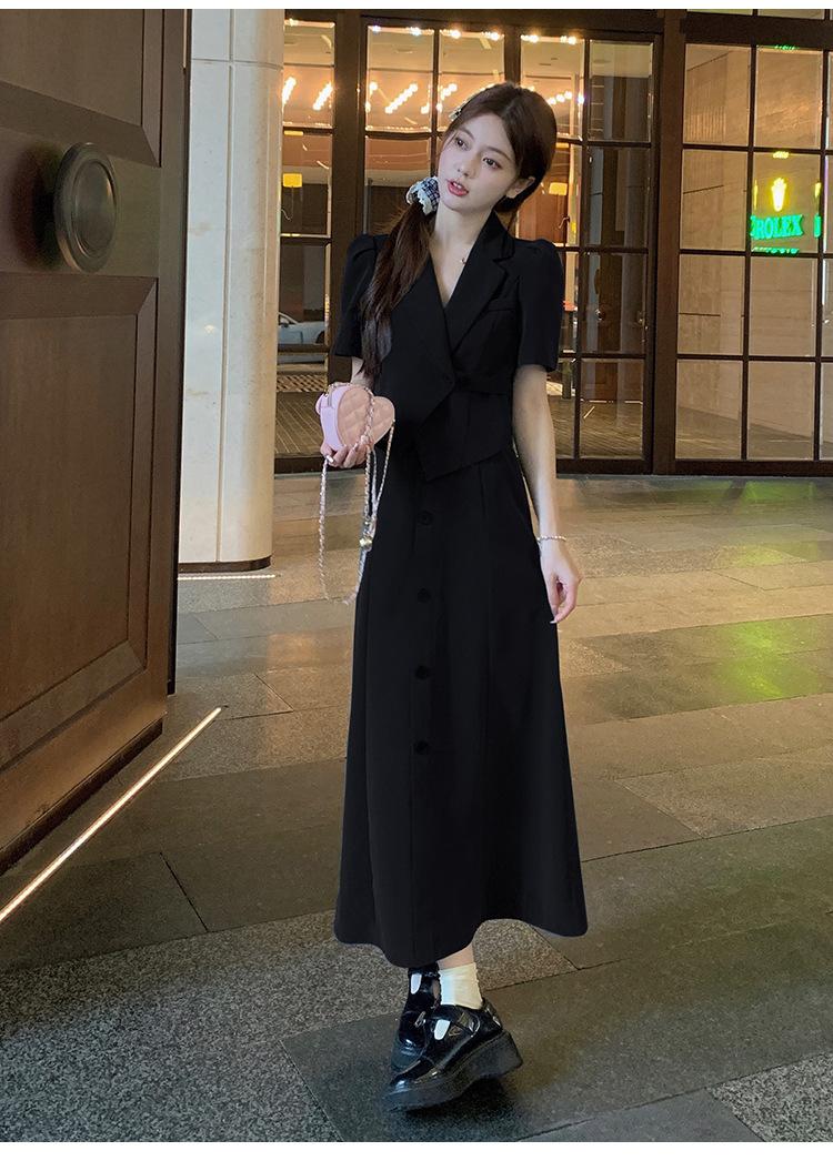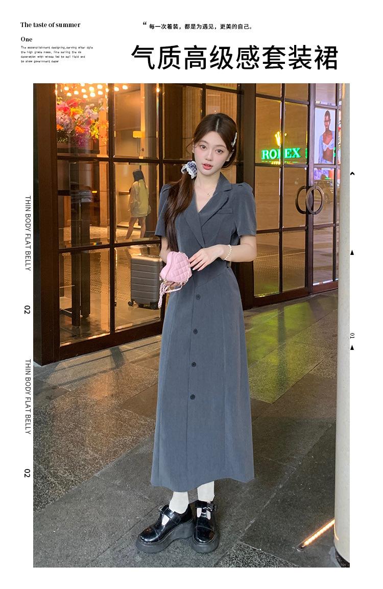 Traje Gris de Verano Nuevo 2025 Vestido Cintura para Mujer Popular de Este Año Look Francés Adelgazante Traje Profesional Falda