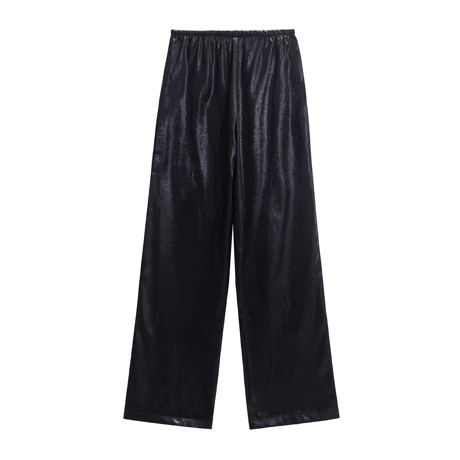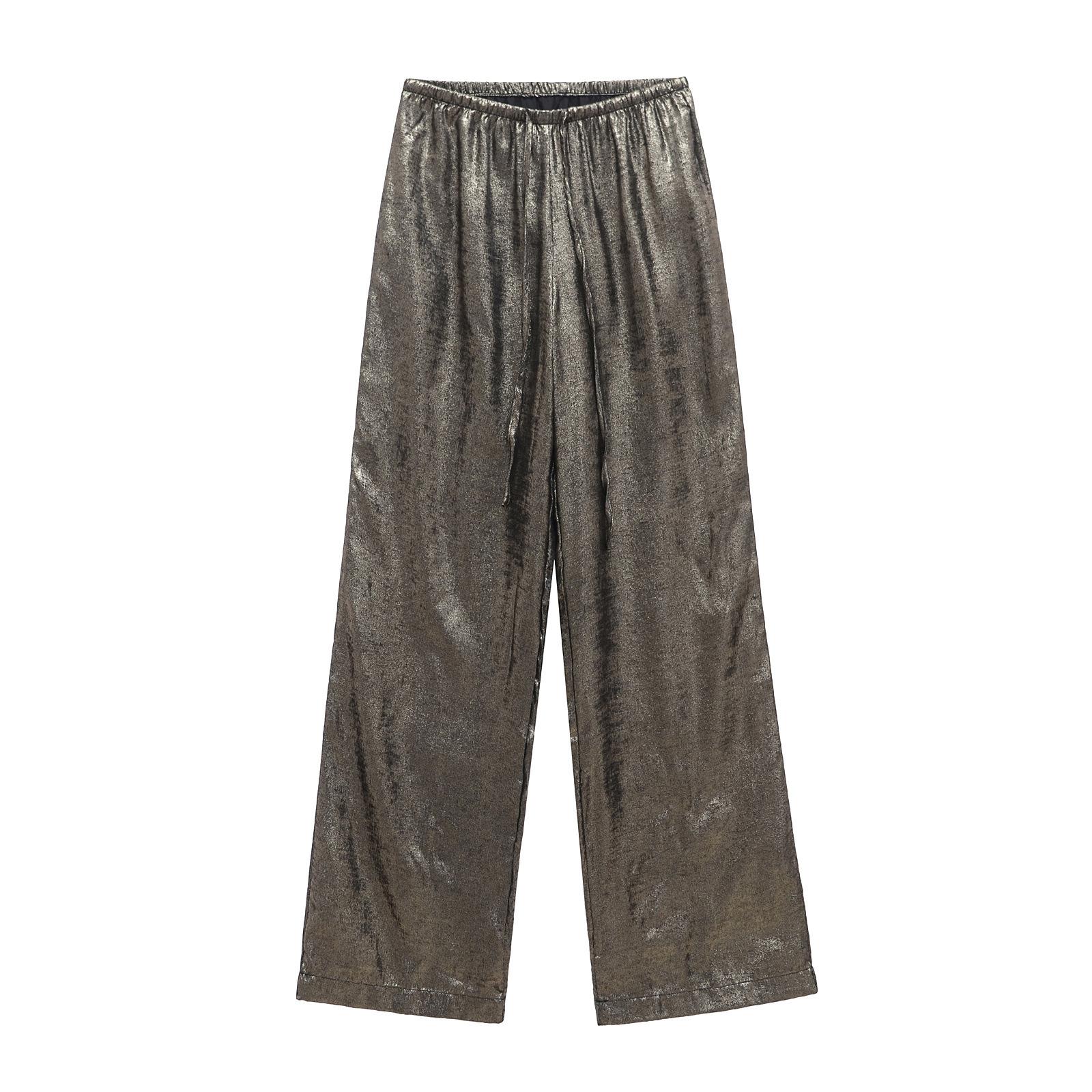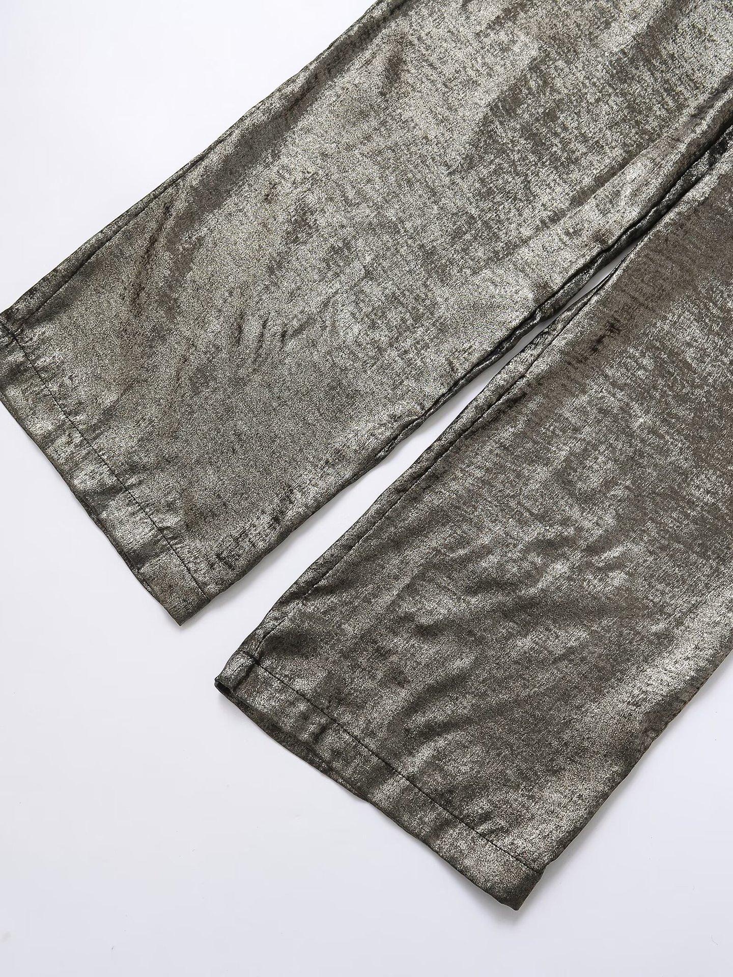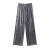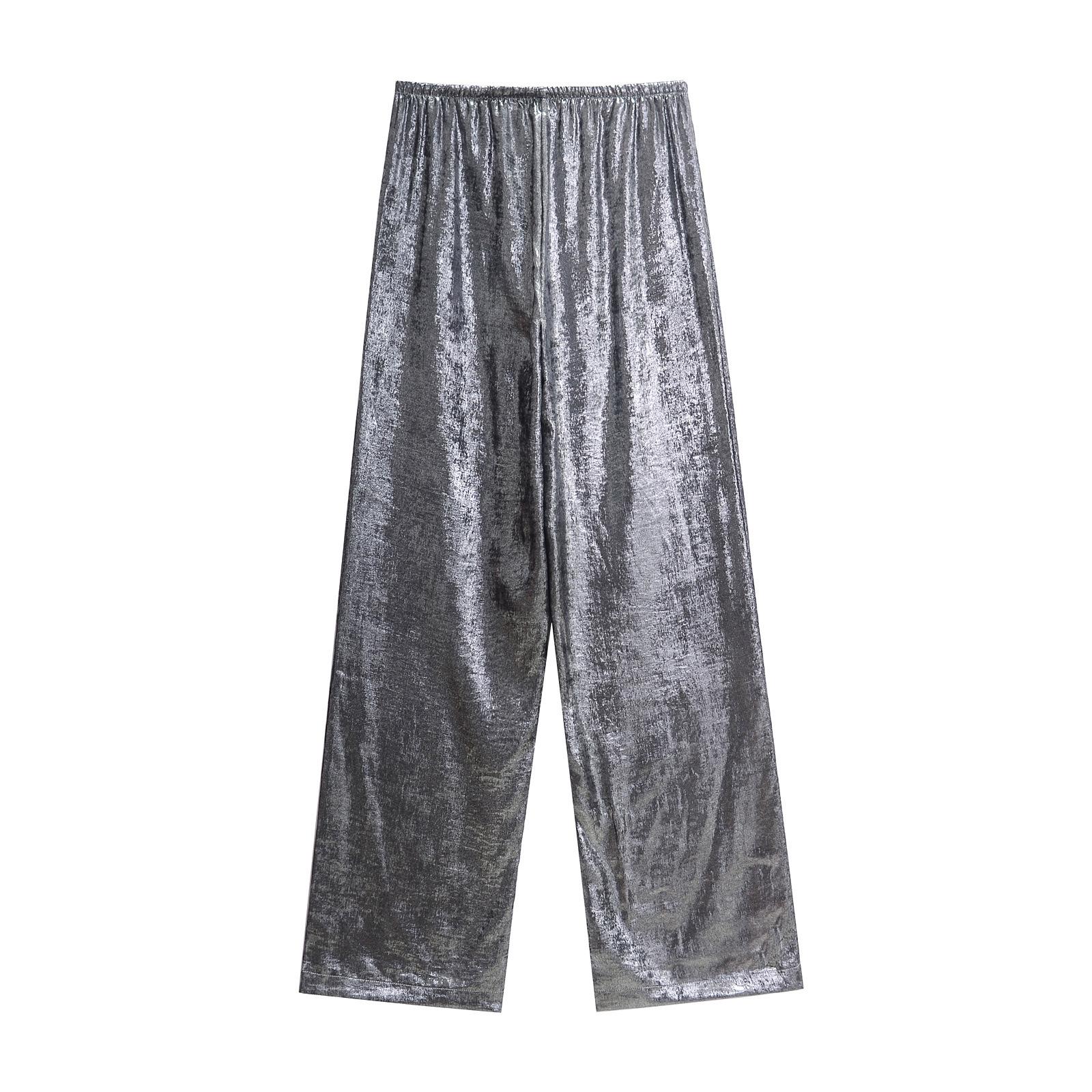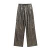 Ropa transfronteriza europea y americana para mujer, primavera 2025, pantalones elásticos de cintura alta, adelgazantes, de pierna ancha, rectos, metálicos, 9223157