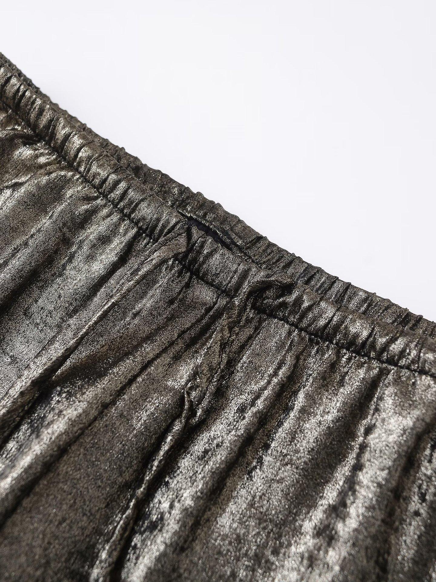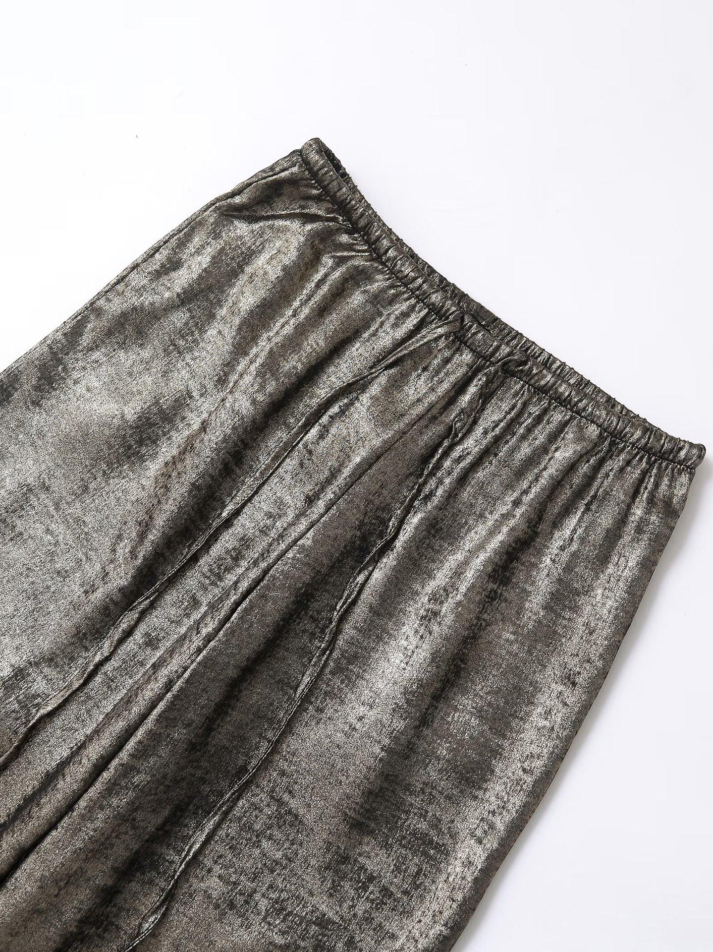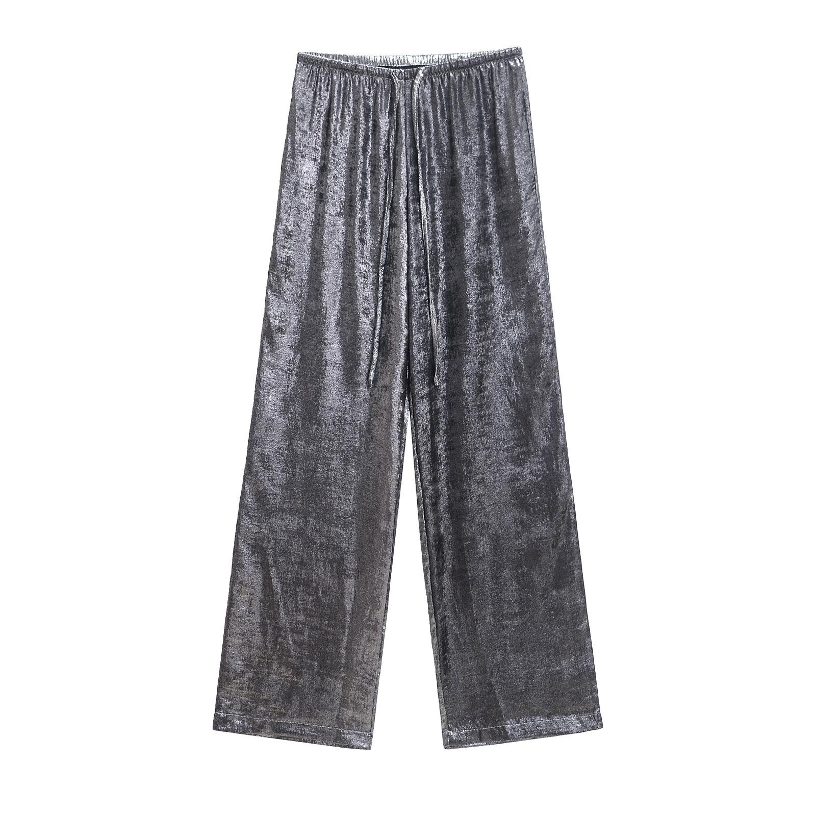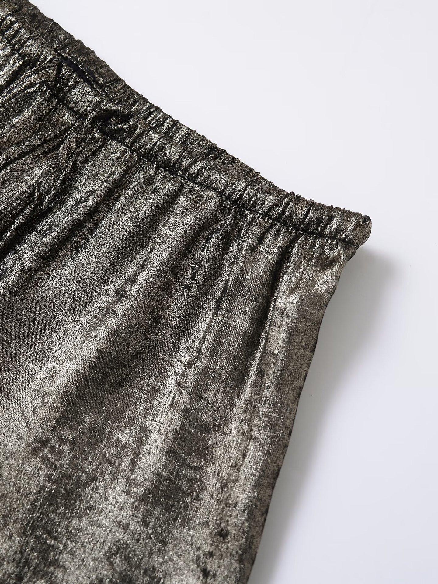 Ropa transfronteriza europea y americana para mujer, primavera 2025, pantalones elásticos de cintura alta, adelgazantes, de pierna ancha, rectos, metálicos, 9223157
