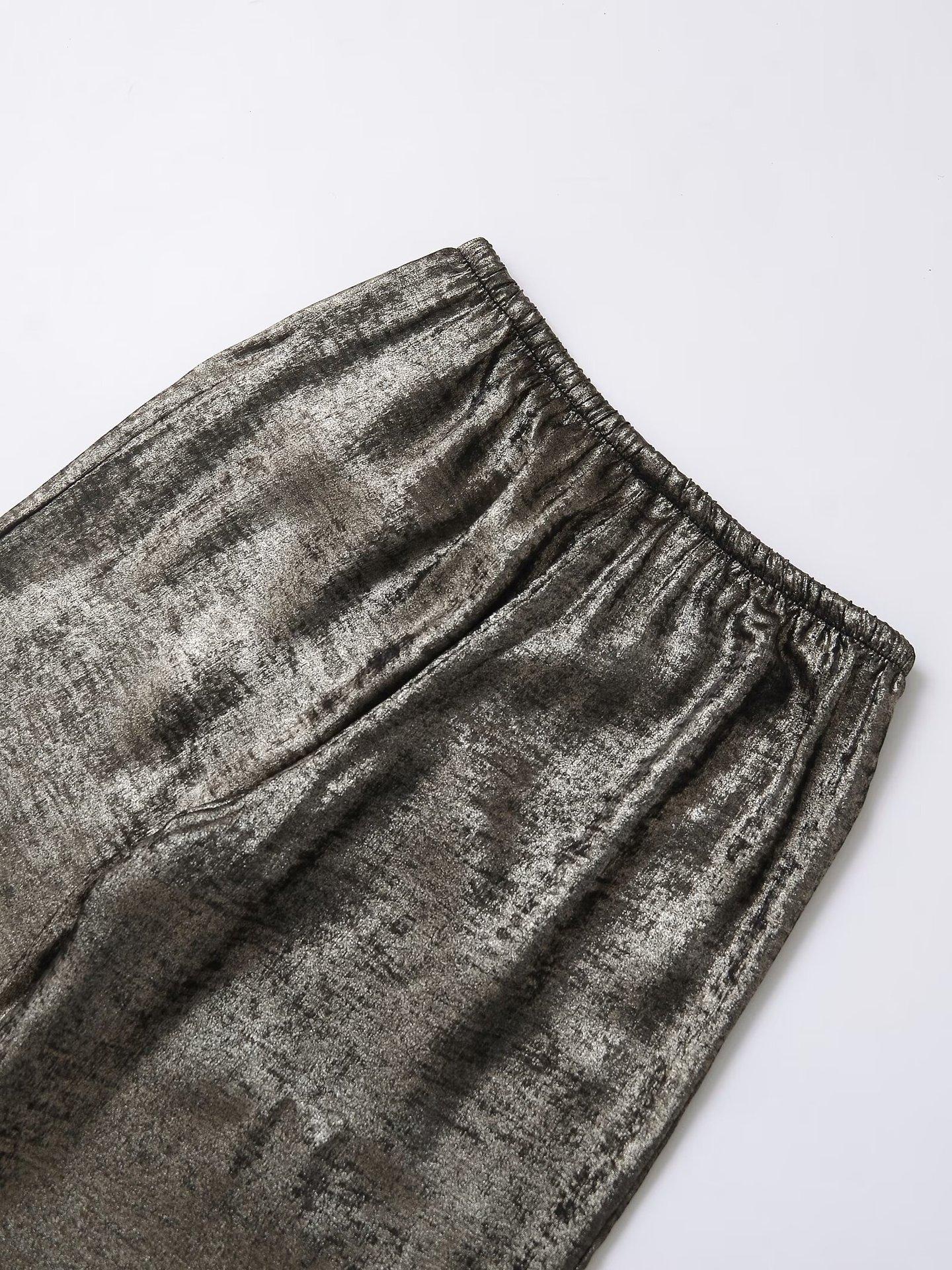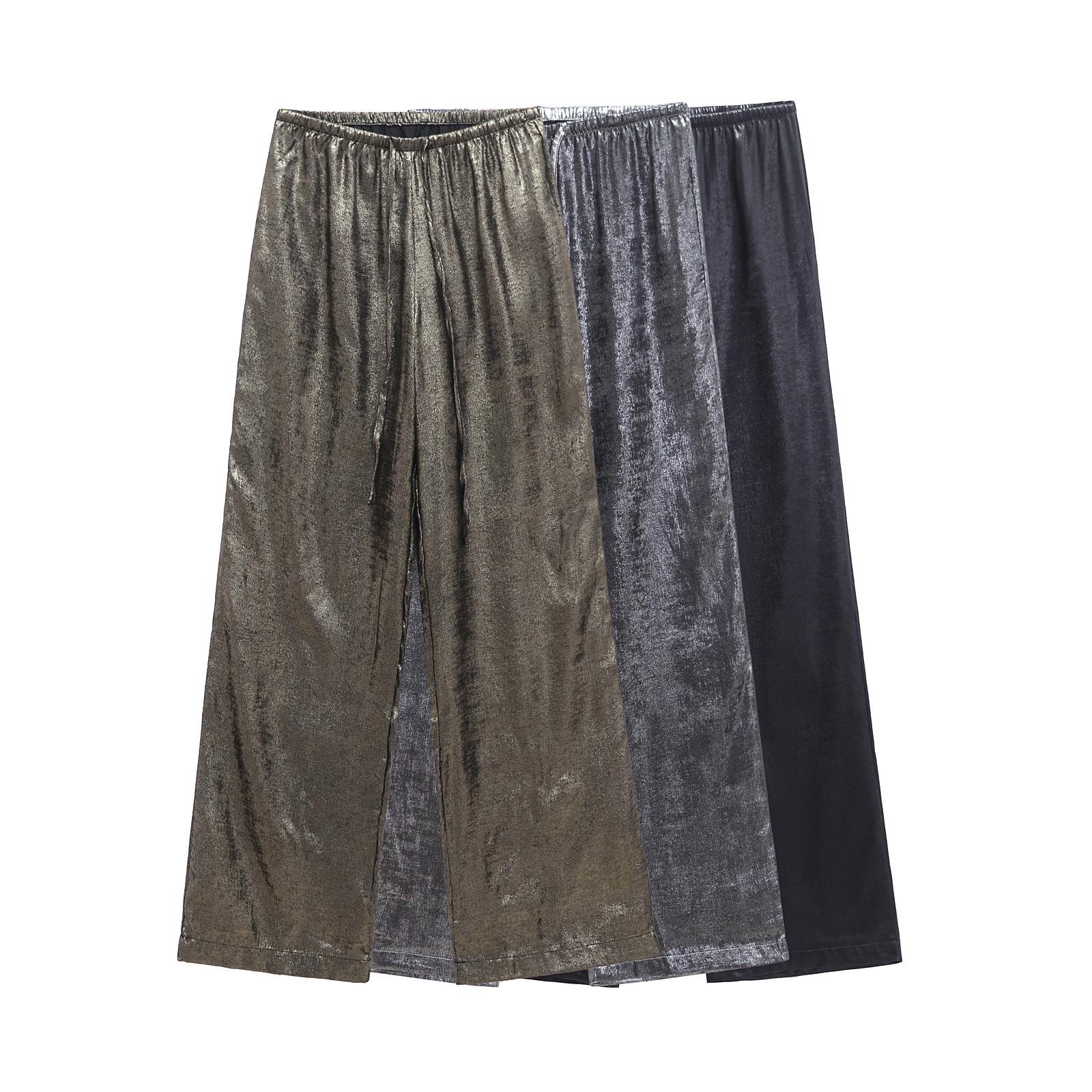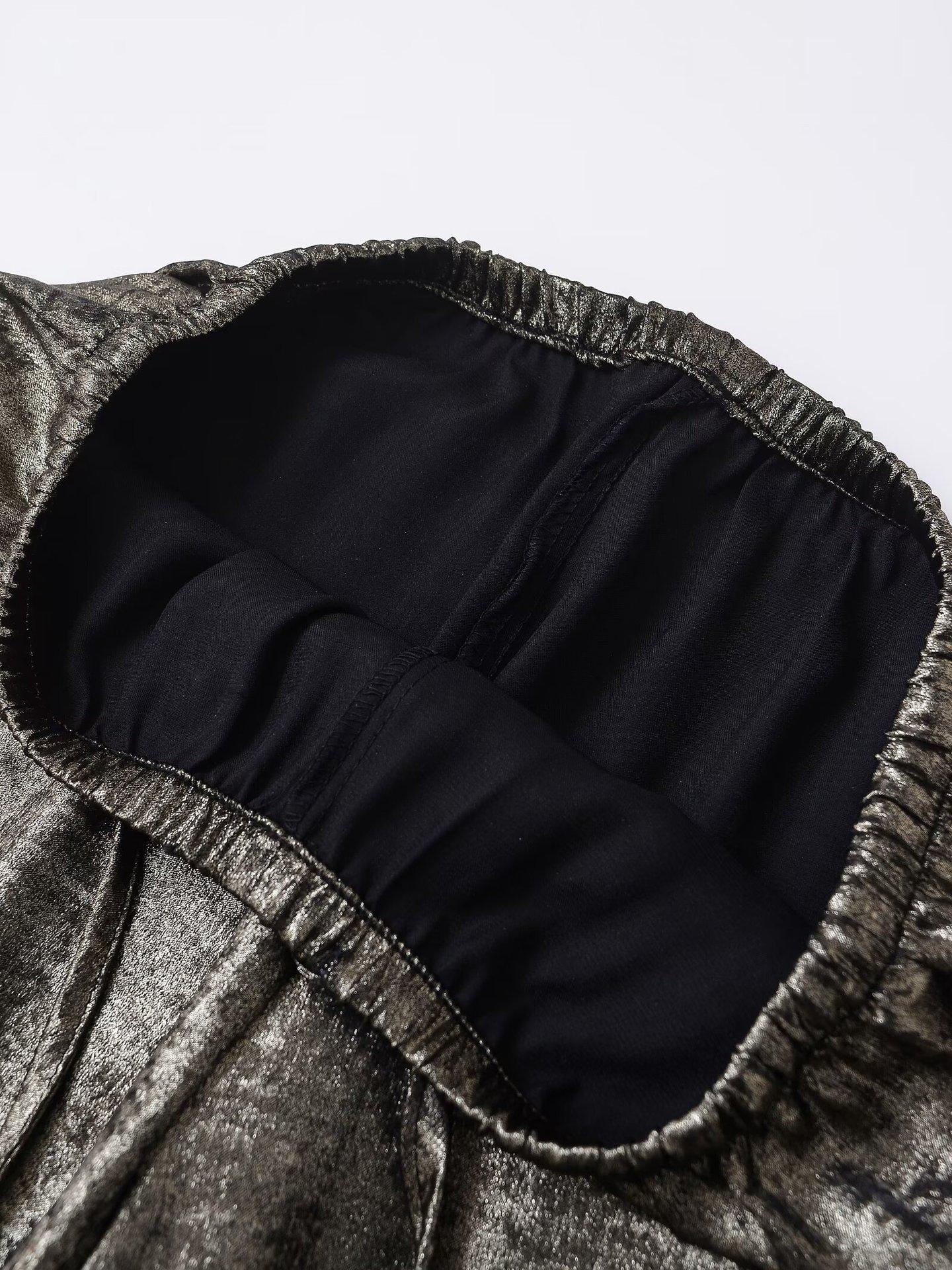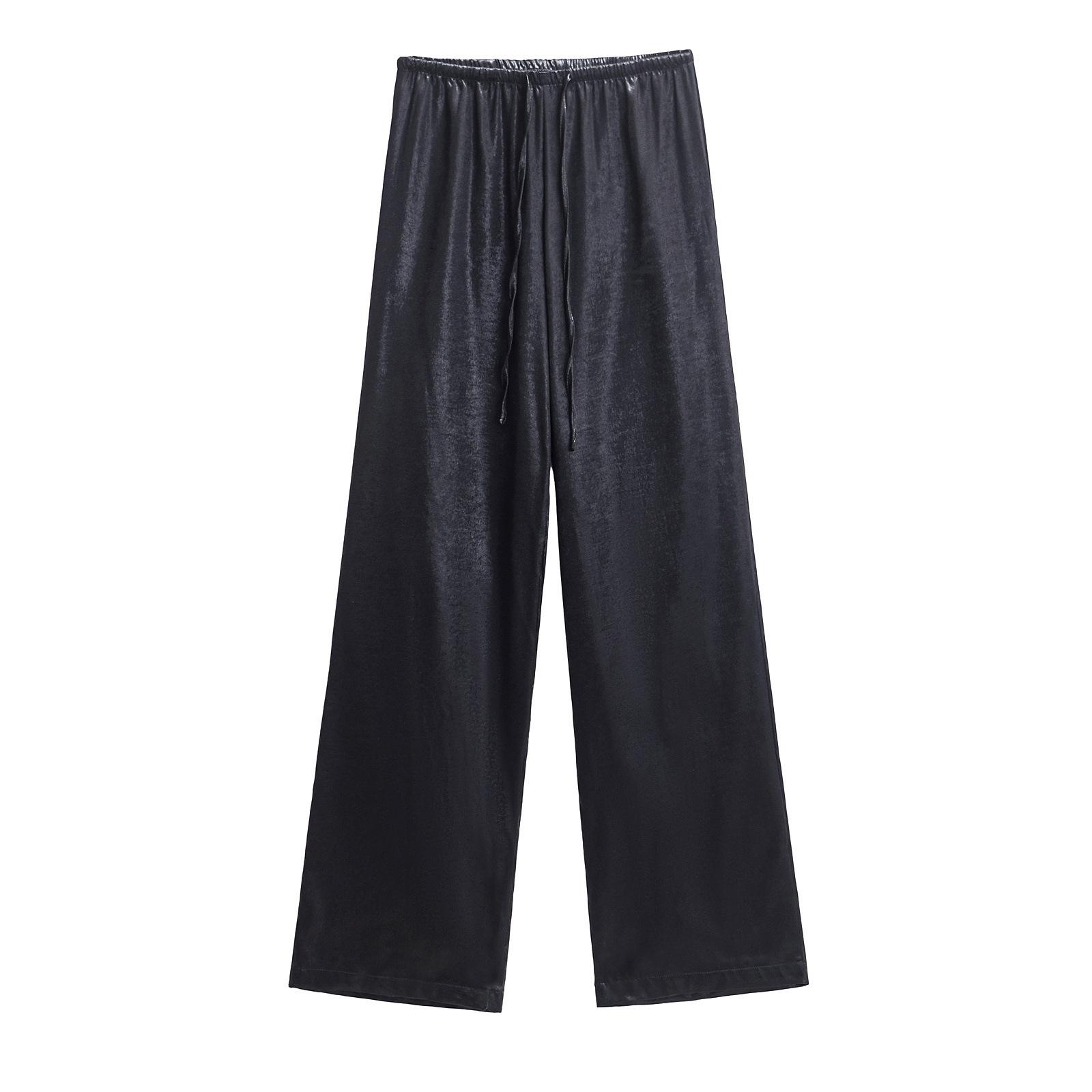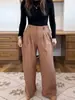 Ropa transfronteriza europea y americana para mujer, primavera 2025, pantalones elásticos de cintura alta, adelgazantes, de pierna ancha, rectos, metálicos, 9223157