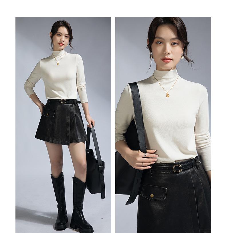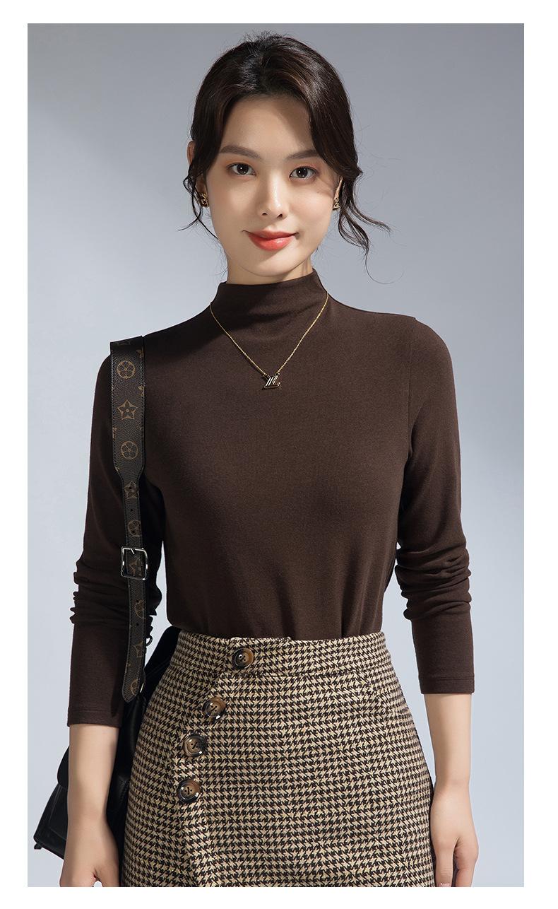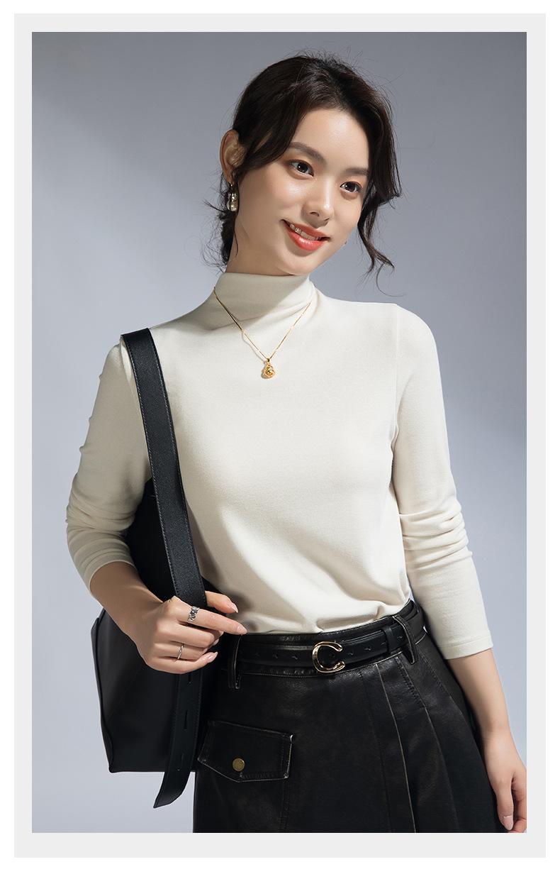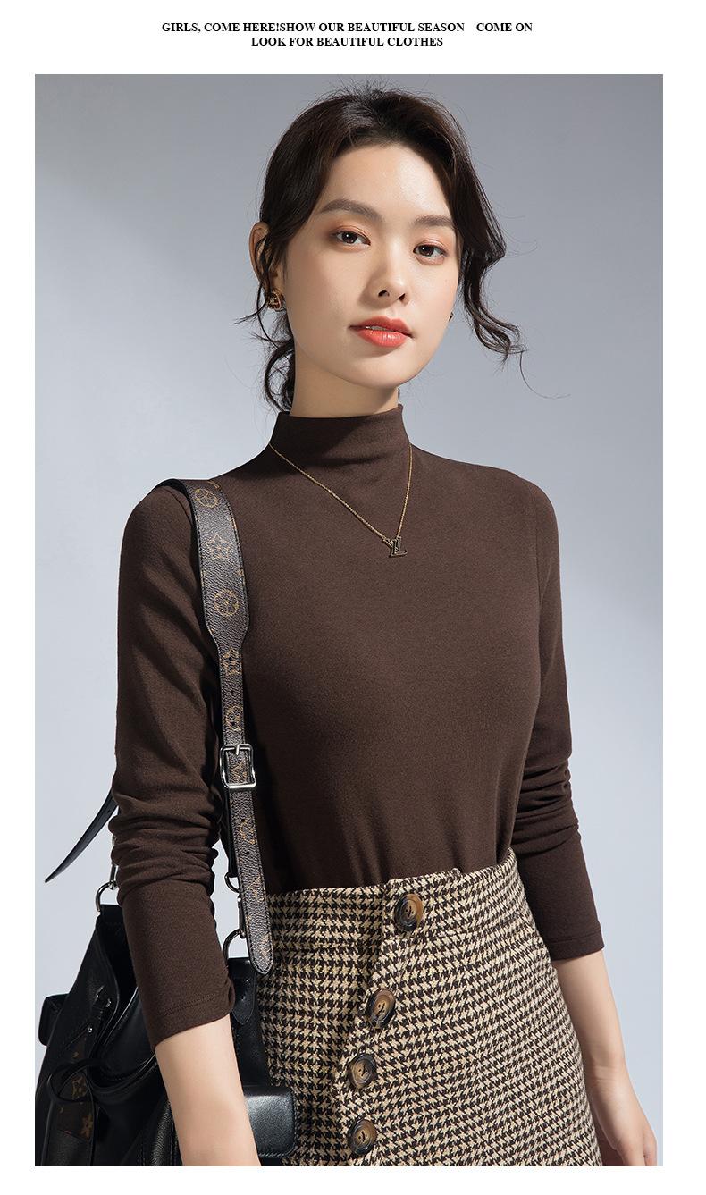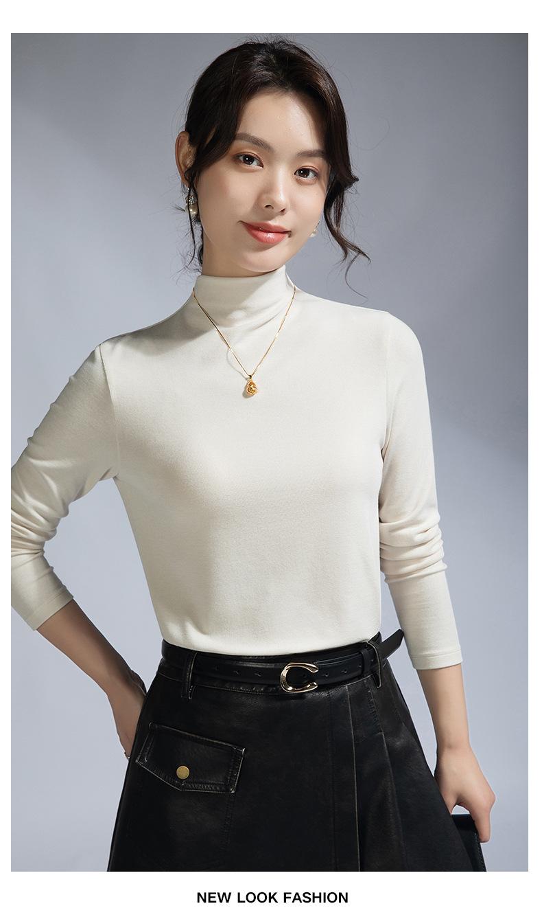 Capa Base de Cuello Alto de Lana Seda para Mujer Otoño/Invierno 2025 Nueva Ropa de Mujer Ropa Interior Top Cálido Generador de Calor con Forro Polar Mujer