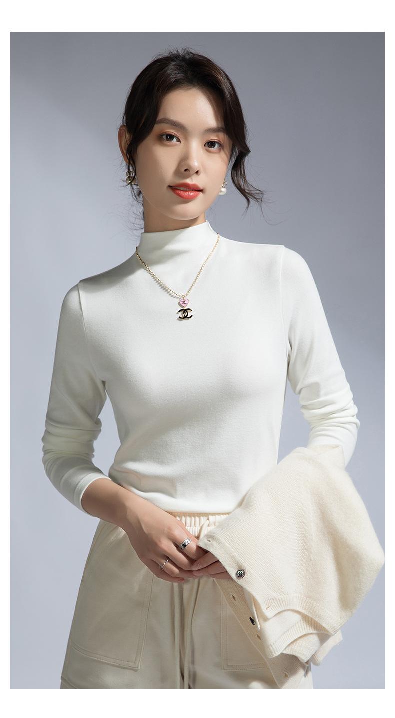 Camisa de cuello redondo para mujer, ropa interior, ropa de mujer, principios de otoño 2025, camiseta blanca de manga larga de moda, top de cachemira sintética para mujer, ropa exterior