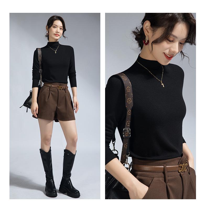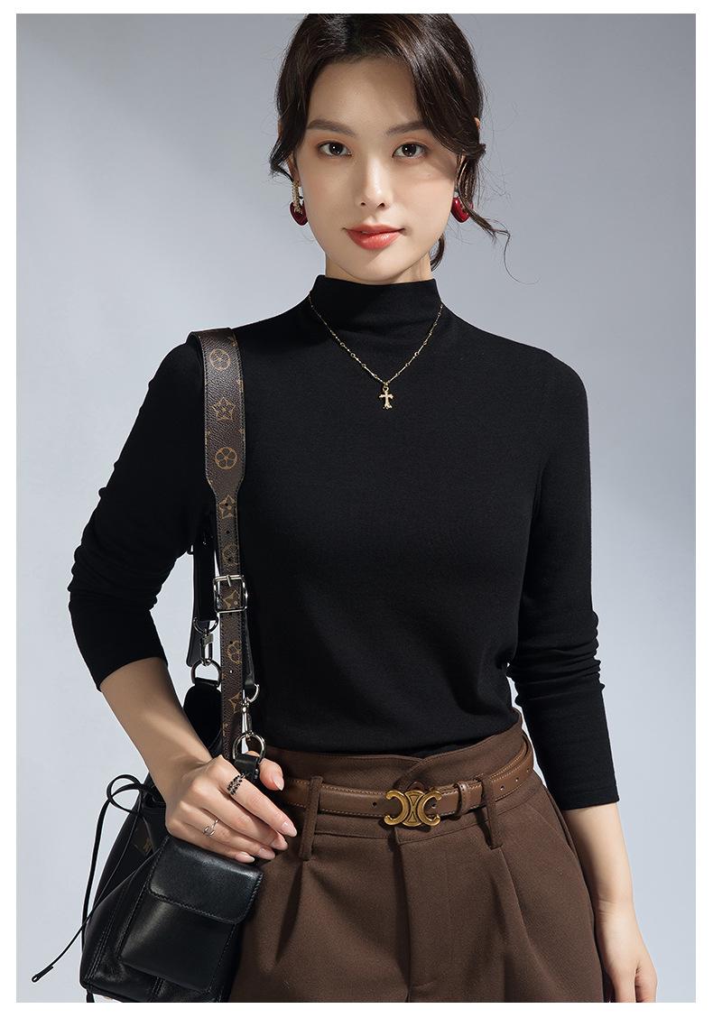 Primera Capa de Cuello Alto para Mujer Otoño Invierno 2025 Cuello Alto Lana Seda Térmica Forro Polar Grueso Ropa Interior Top de Moda