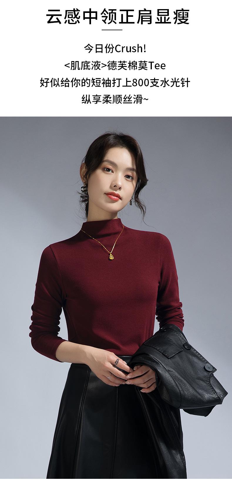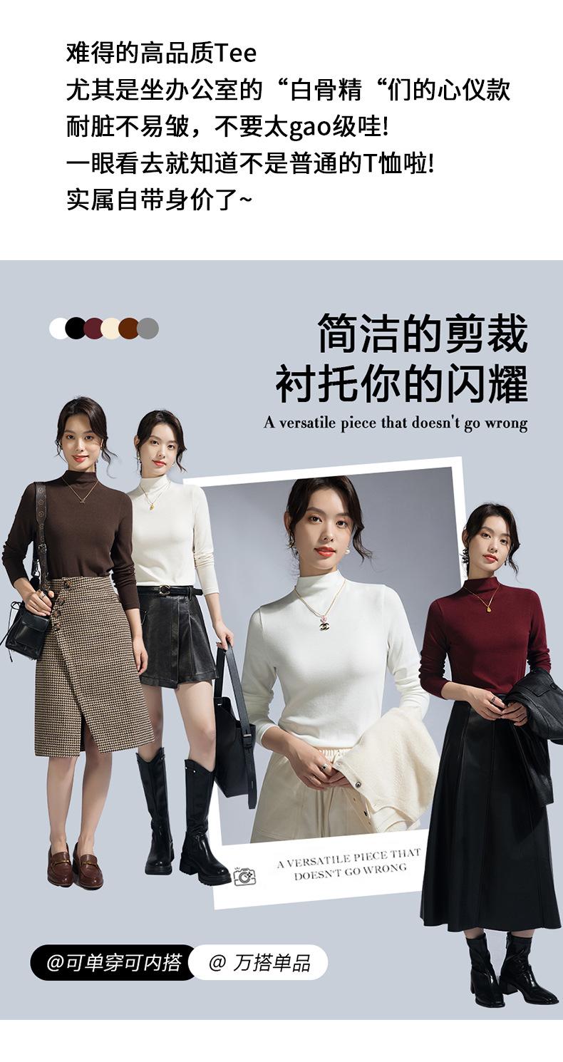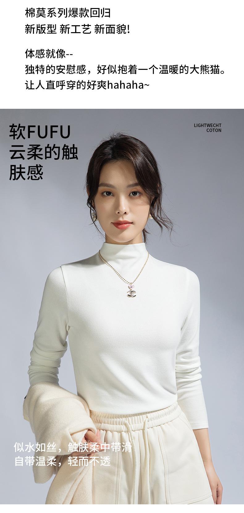 Lana Seda Capa Base Mujer 2025 Otoño/Invierno Nueva Ropa de Mujer Ropa Interior Generadora de Calor Cálida Top de Cuello Alto Espesado con Forro Polar