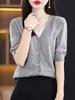 Cárdigan de punto de lana peinada para mujer, cuello en V, color liso, elegante, informal, de manga larga, con hebilla, para principios de otoño