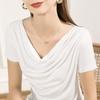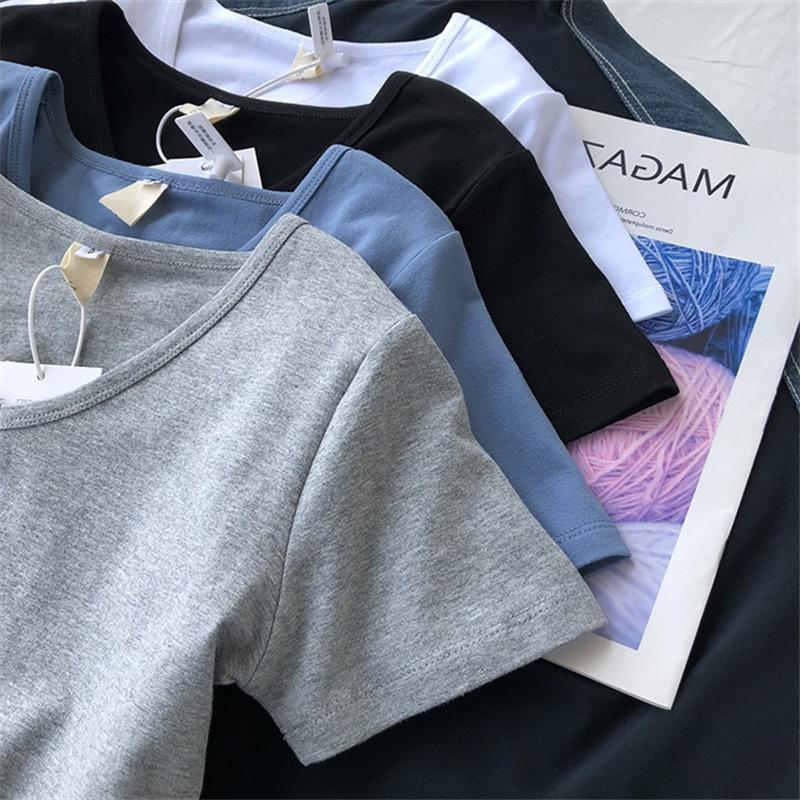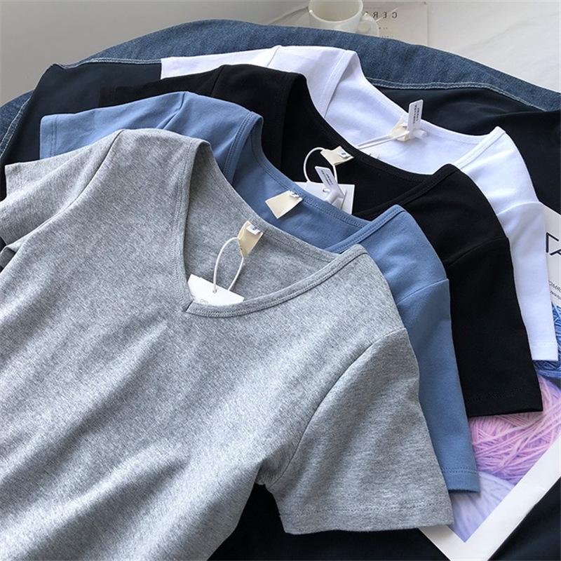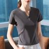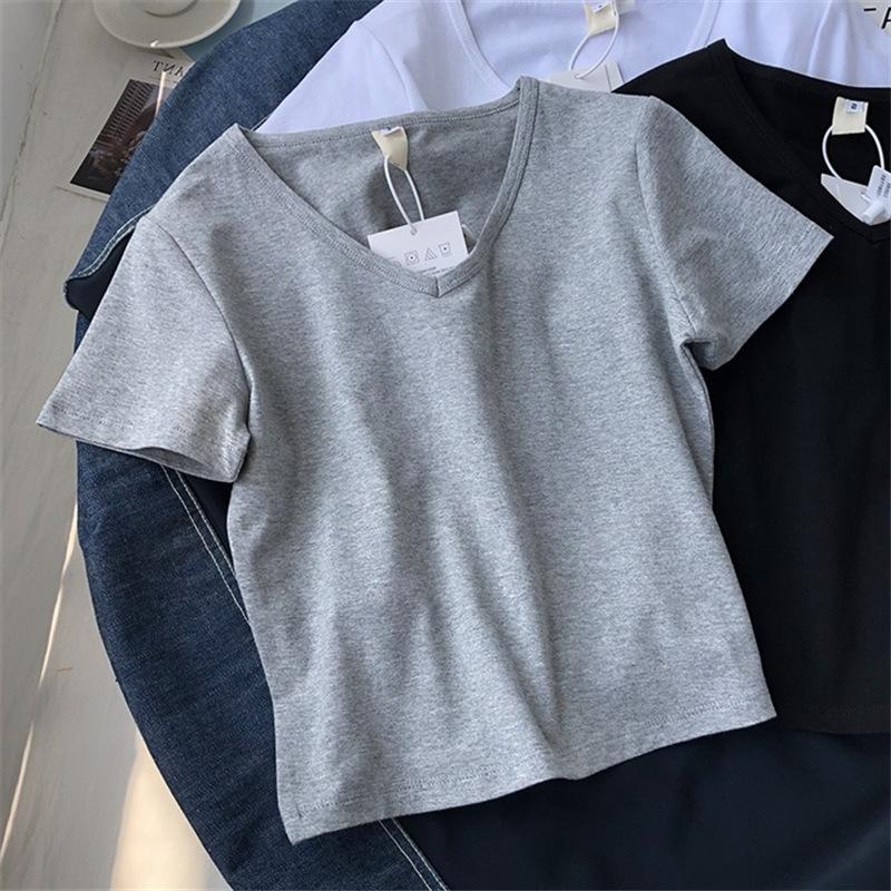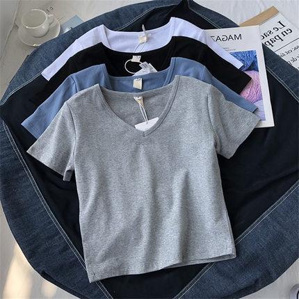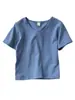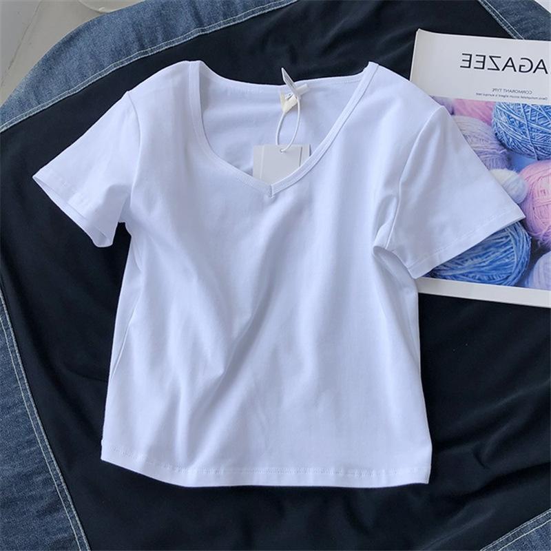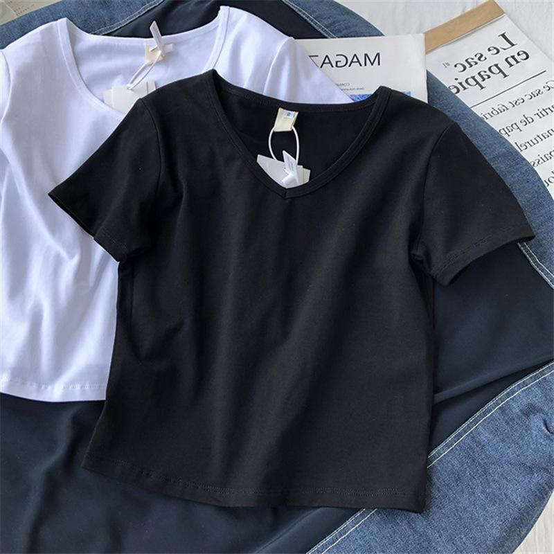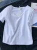 2025 Primavera y Verano Nuevo Diseño Chic Nicho Camiseta Corta de Algodón Puro de Manga Corta con Cuello en V para Mujer Top de Deseo Puro de Cintura Alta
