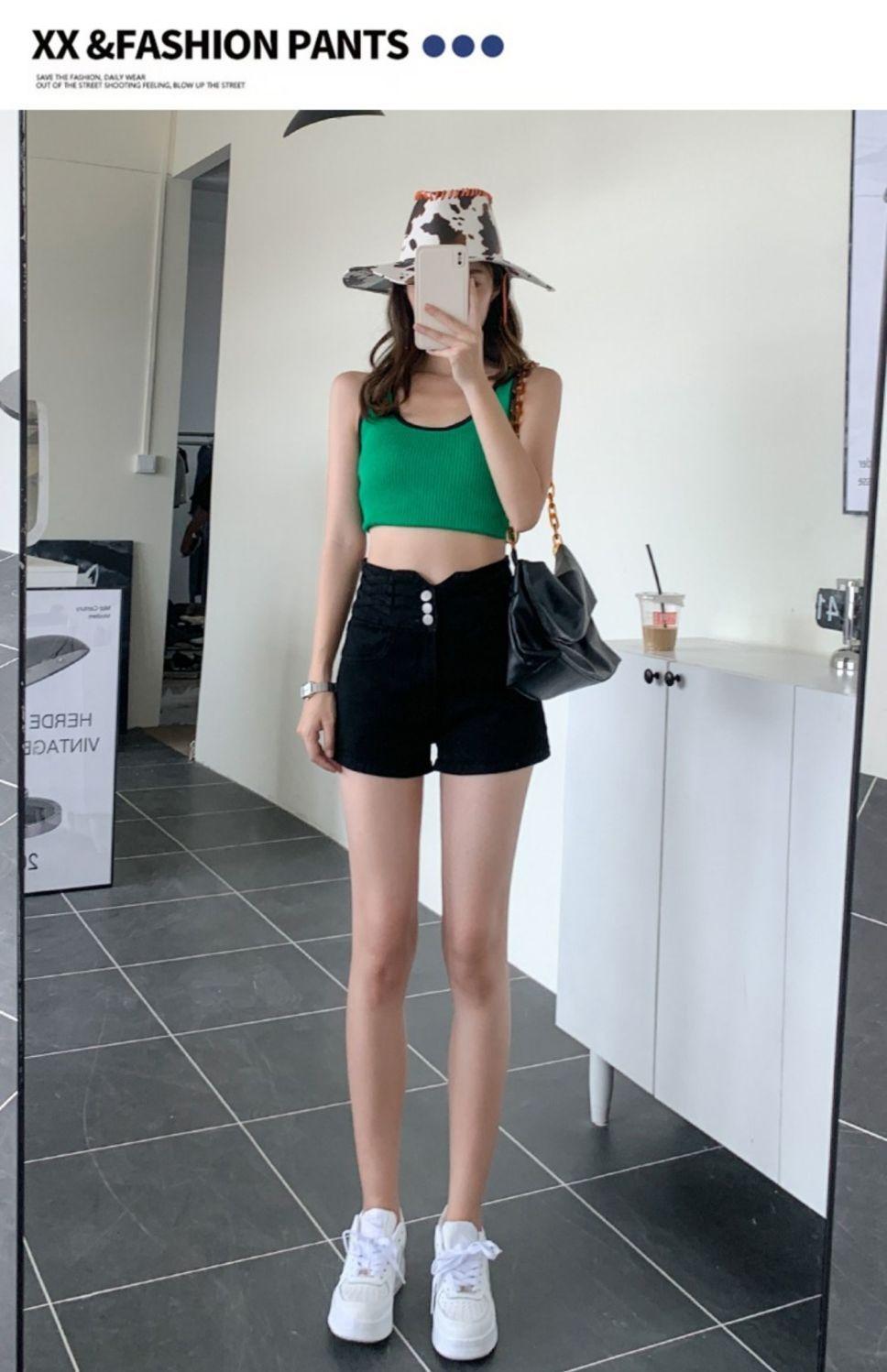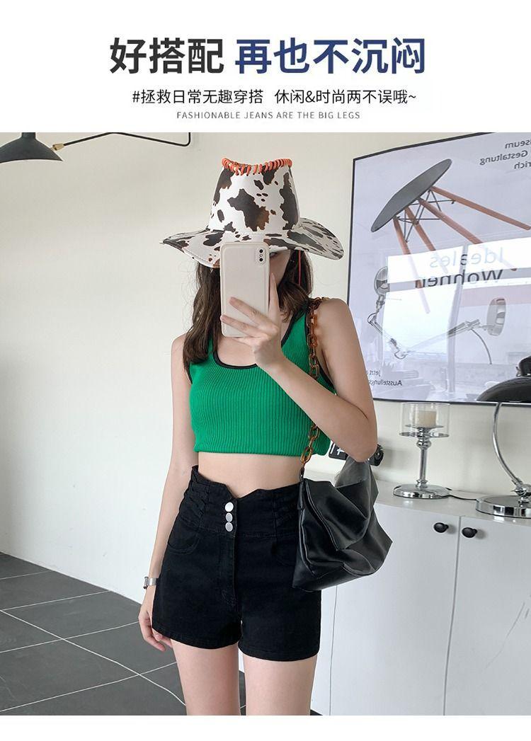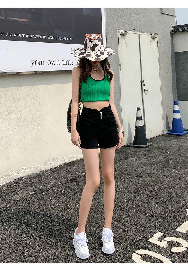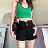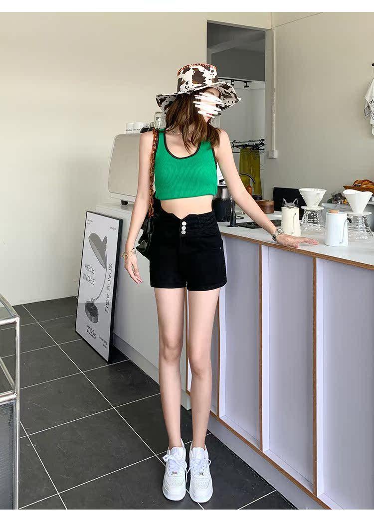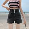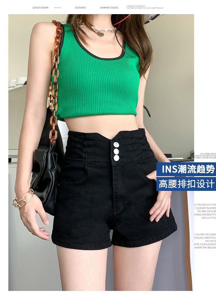 Pantalones cortos vaqueros ajustados elásticos de tres botonadura negros 2025 nuevos y versátiles pantalones cortos de cintura alta de corte A para mujer