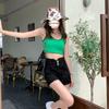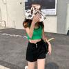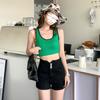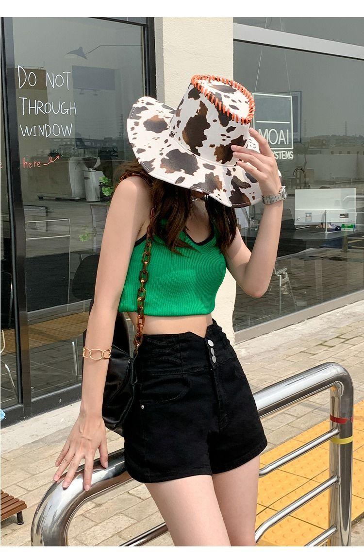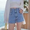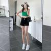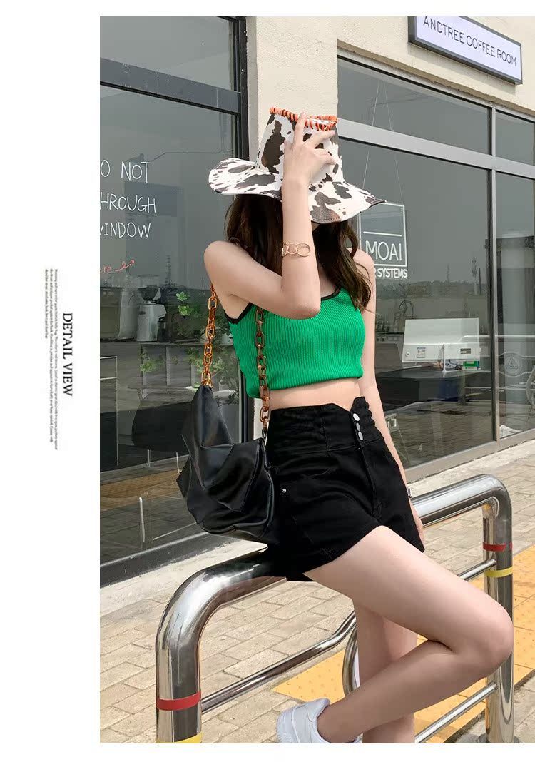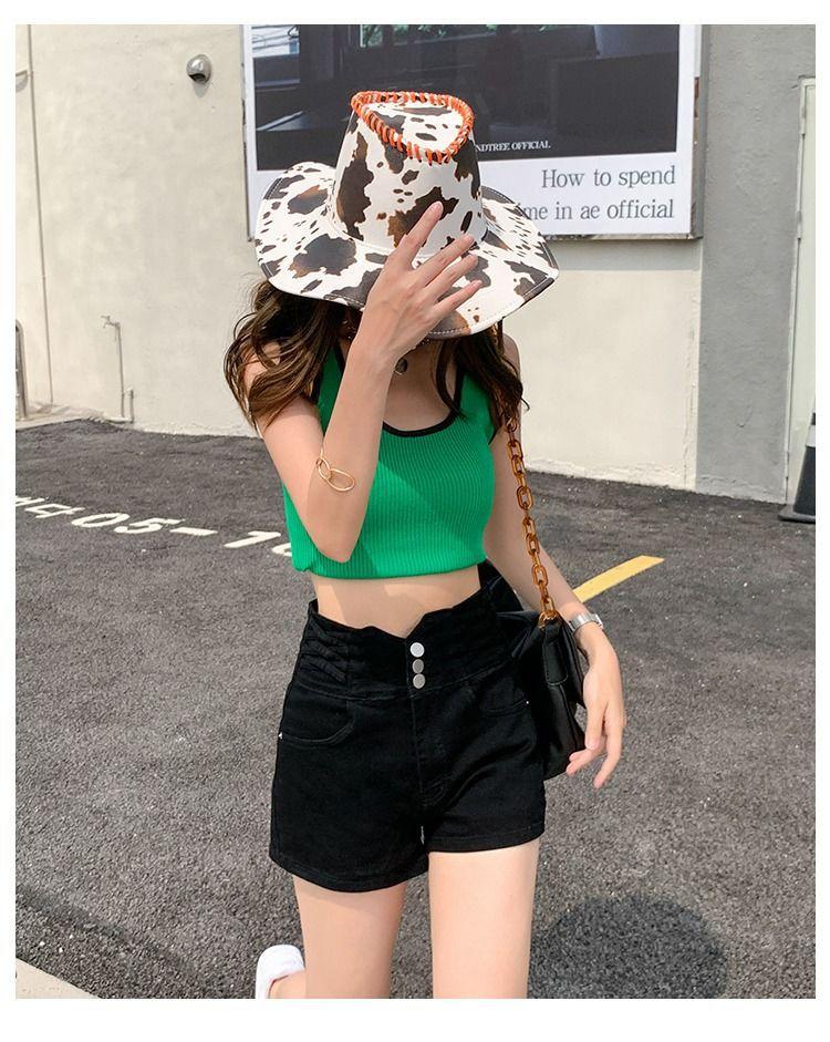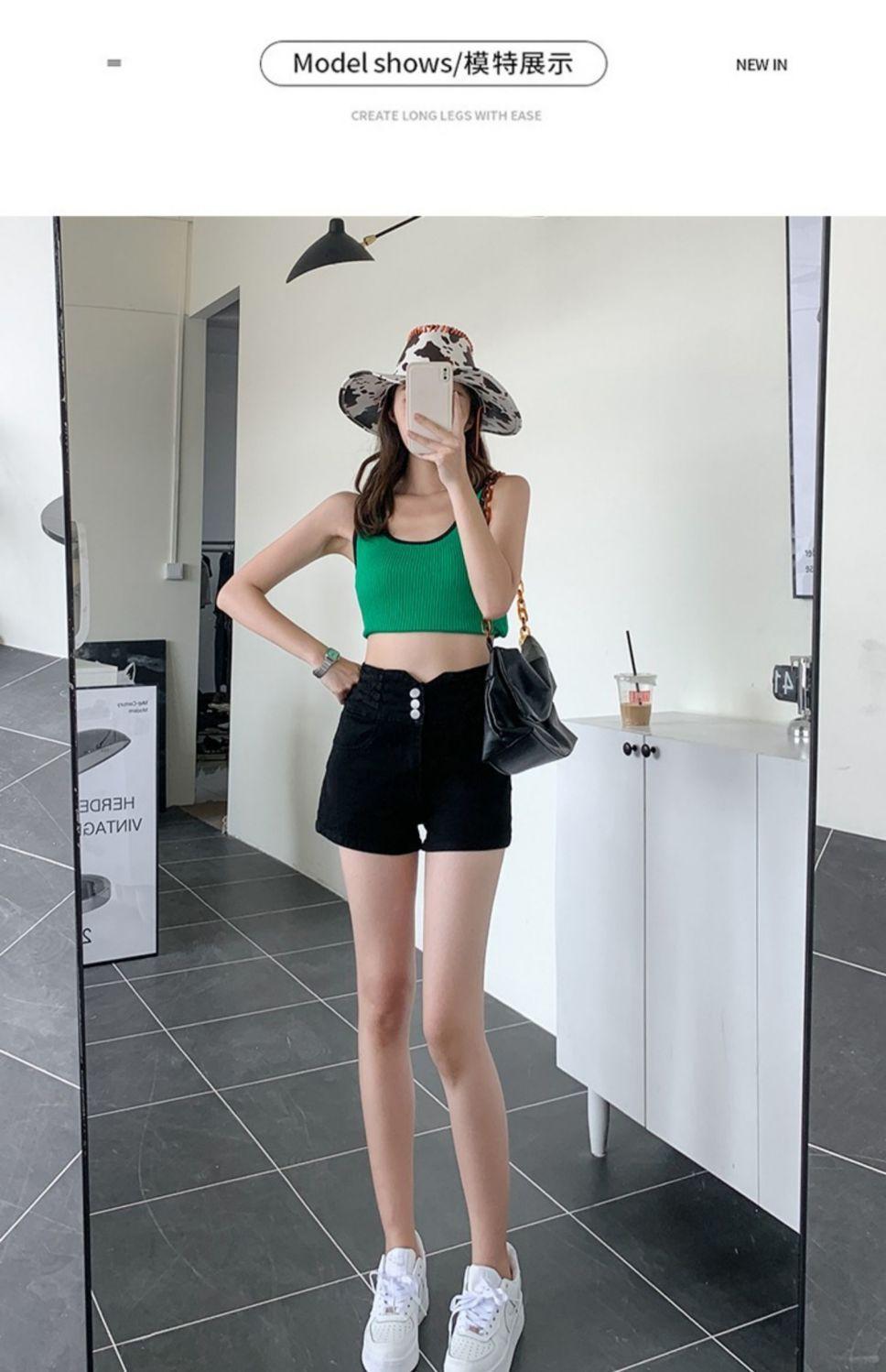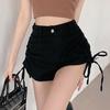 Pantalones cortos vaqueros ajustados elásticos de tres botonadura negros 2025 nuevos y versátiles pantalones cortos de cintura alta de corte A para mujer