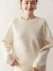 Suéter de Lana de Manga al Hombro con Cuello Redondo para Mujer Otoño e Invierno Color Sólido Suéter Grueso Holgado Simple Coreano Camiseta Básica Gris