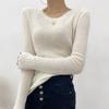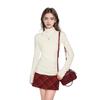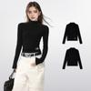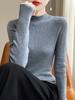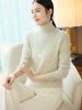 Camisa de punto con cuello alto y pelo blanco para mujer, otoño e invierno, de lana y cachemir, interior entallado, de manga larga y ajustada.