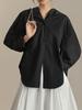 Primavera y Otoño Sentido del Diseño para Mujer Frente Corto Espalda Larga Manga de Pierna de Cordero Chaqueta Cárdigan con Capucha Casual Suelta MD5142