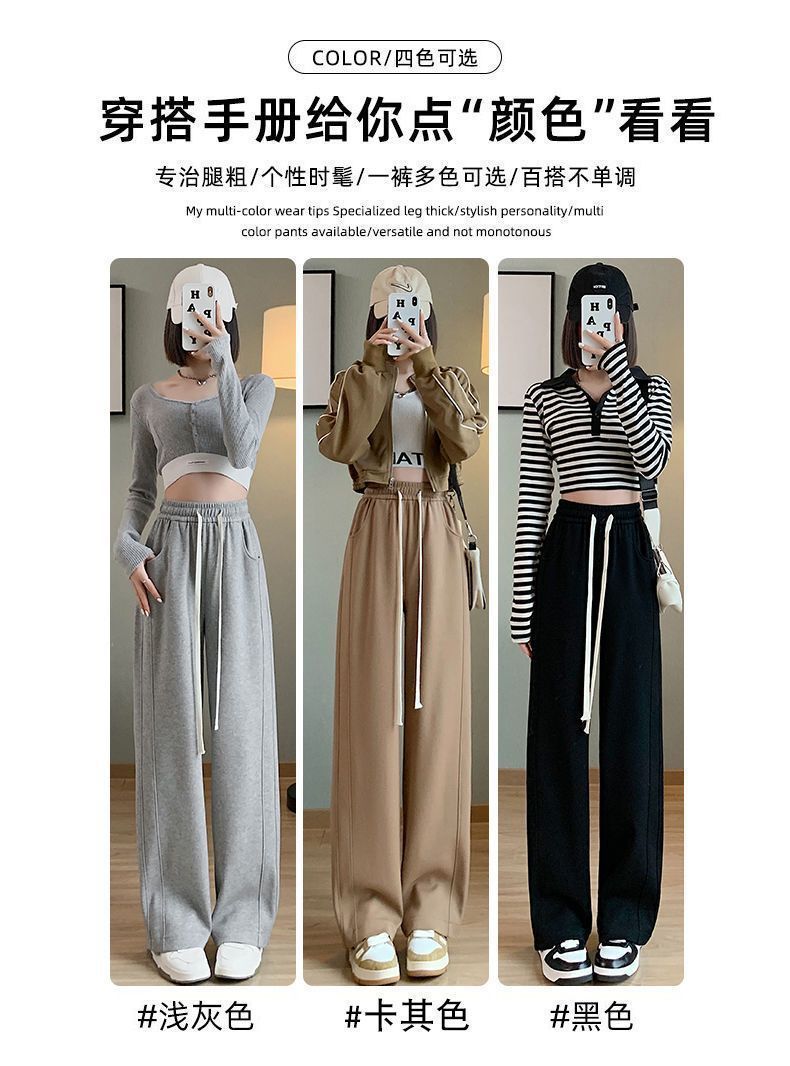 Shanli Dadi talla grande Pantalones deportivos para mujer chica gordita Jin Otoño e Invierno forrados de vellón Engrosados Sueltos Casuales de pierna ancha