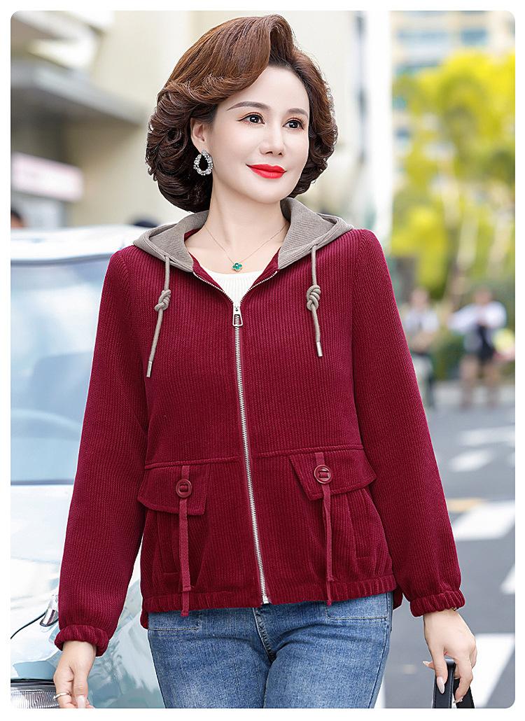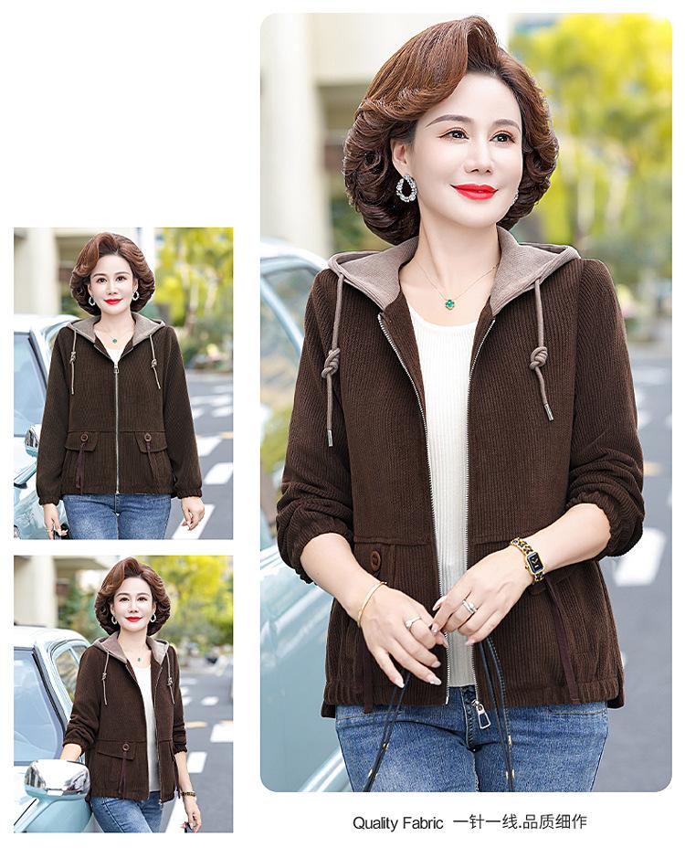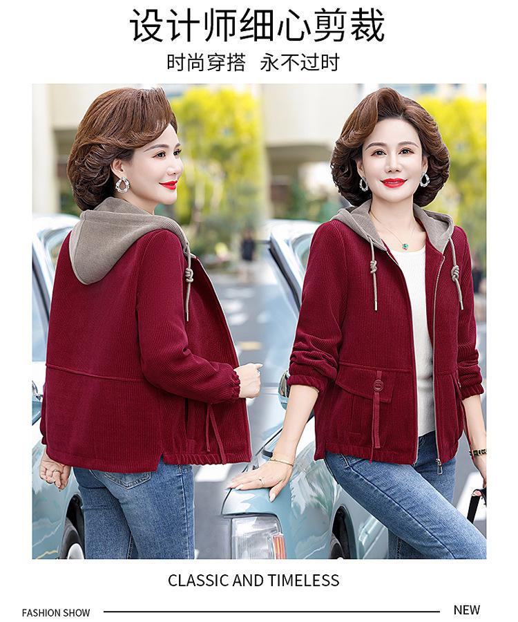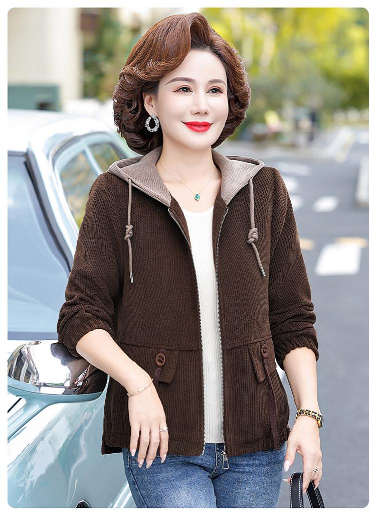 Abrigo corto de primavera para mamá, novedad de 2025, con capucha, para mujer de 50 años, de mediana edad y mayor, chaqueta informal de moda.
