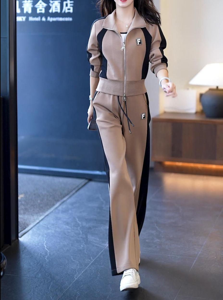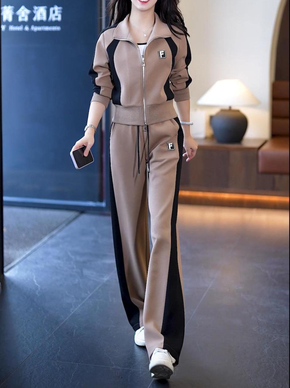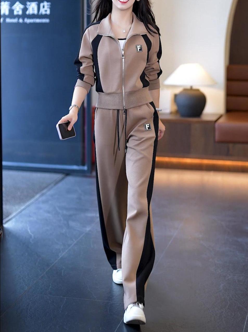 Traje deportivo de manga larga para mujer, primavera, otoño e invierno 2024, nuevo, pequeño, antiedad, temperamento extranjero, ocio, dos piezas, venta al por mayor