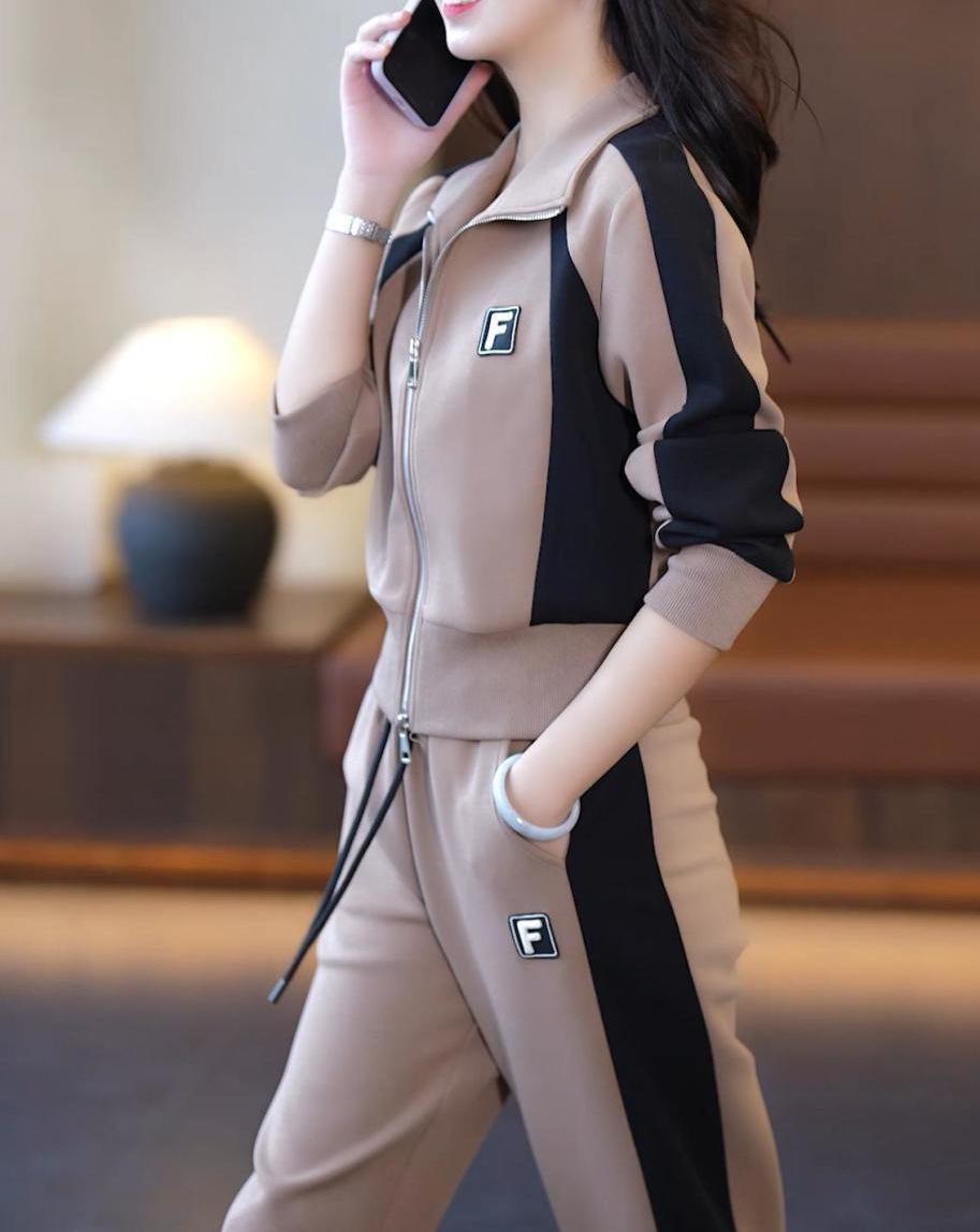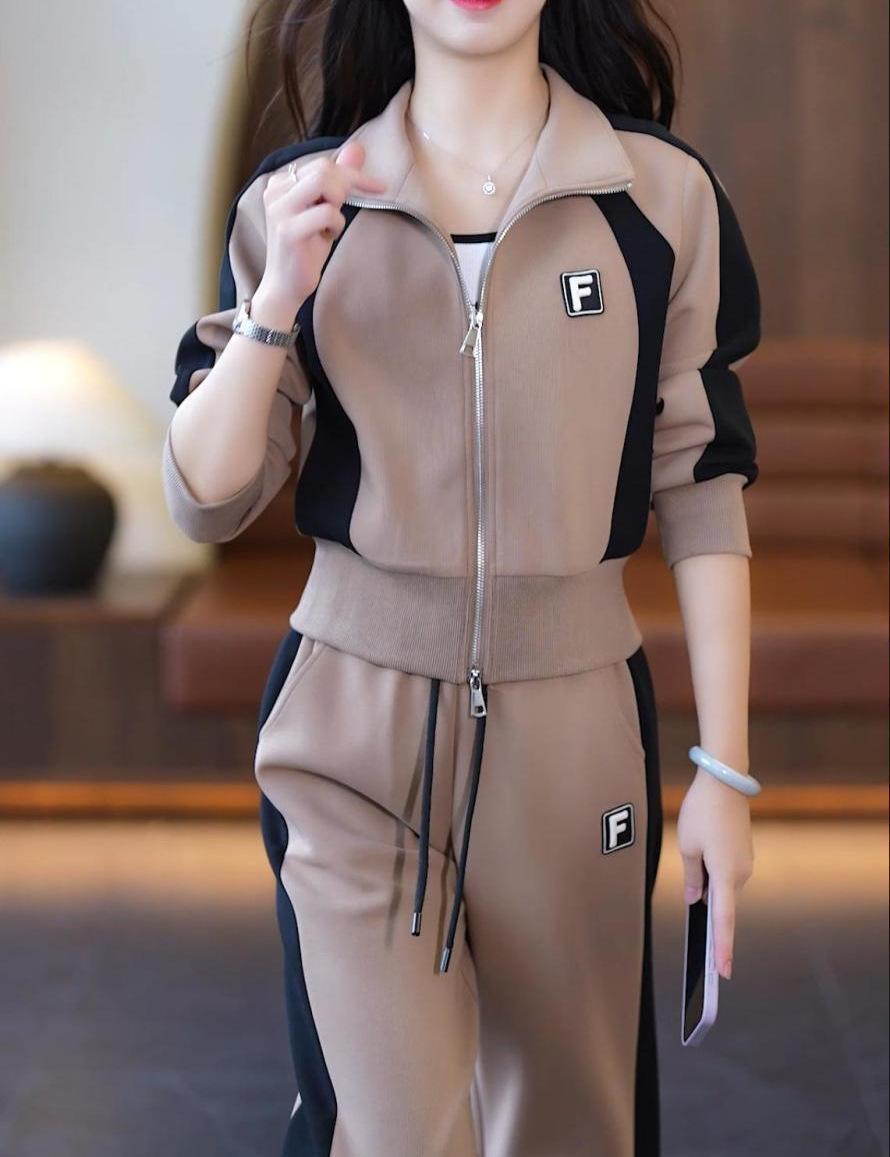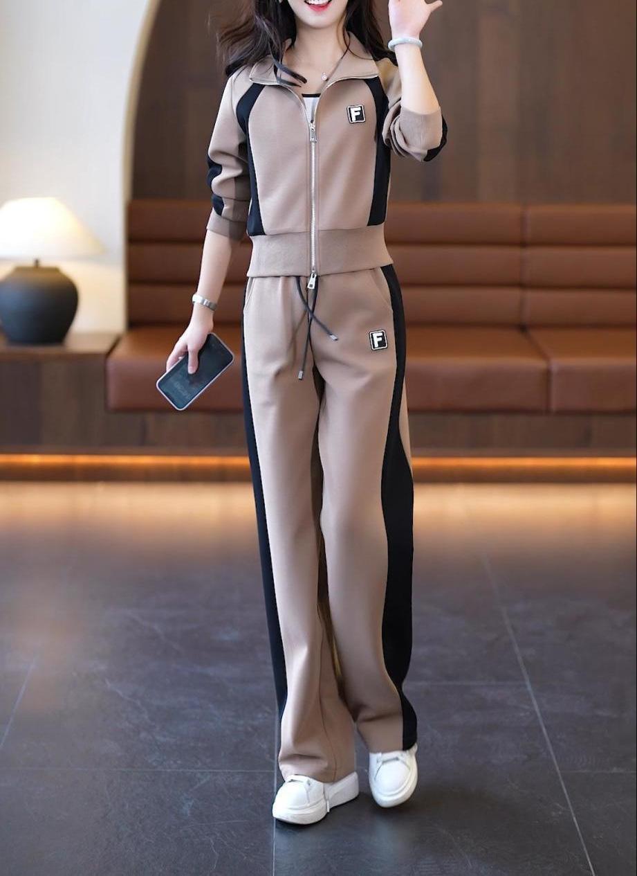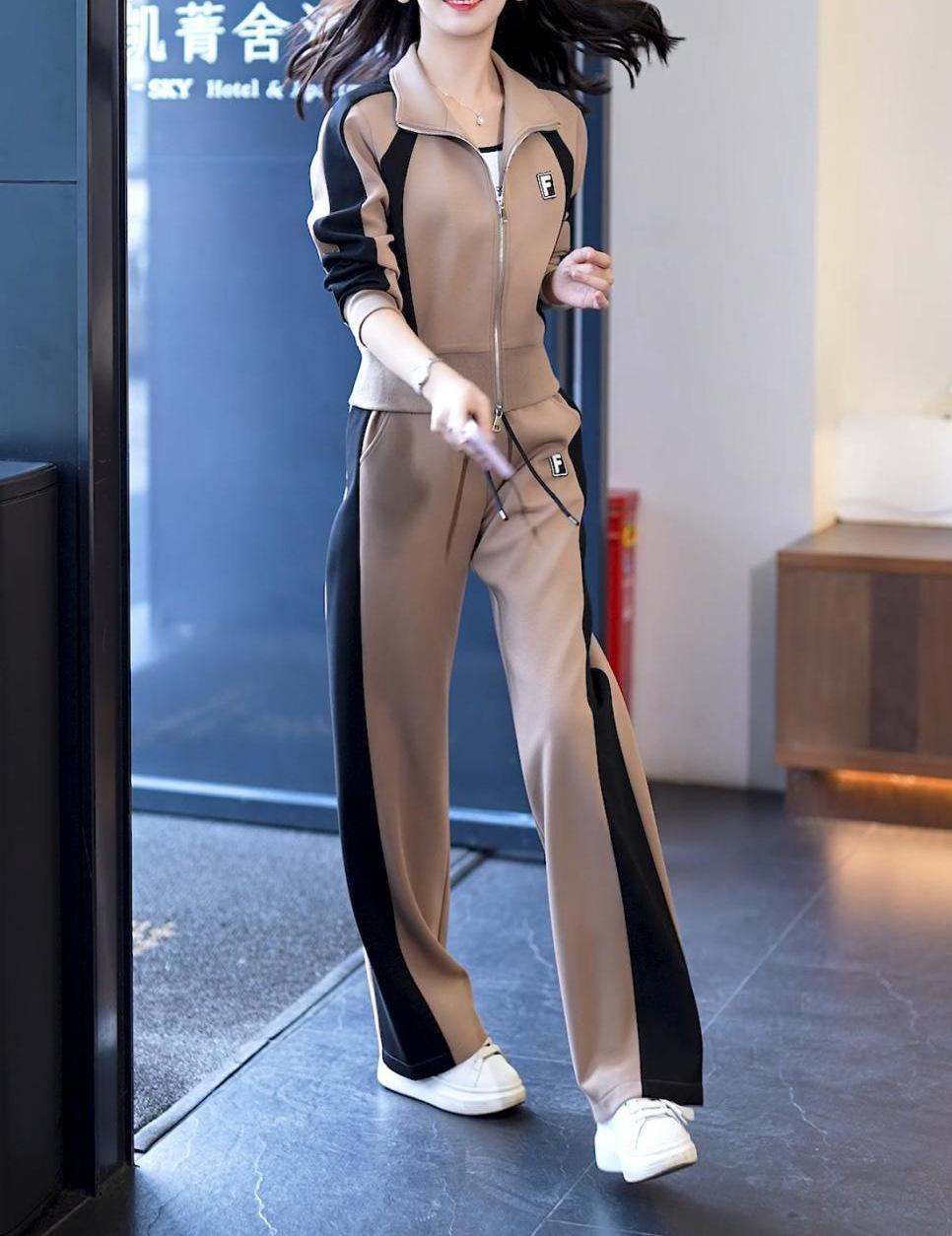 Traje deportivo de manga larga para mujer, primavera, otoño e invierno 2024, nuevo, pequeño, antiedad, temperamento extranjero, ocio, dos piezas, venta al por mayor