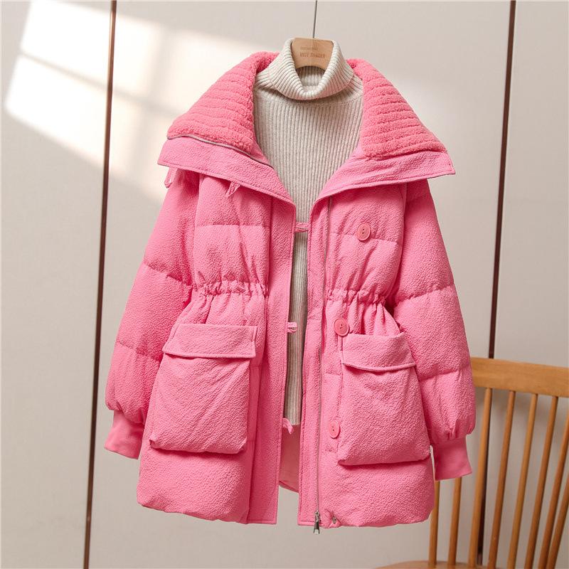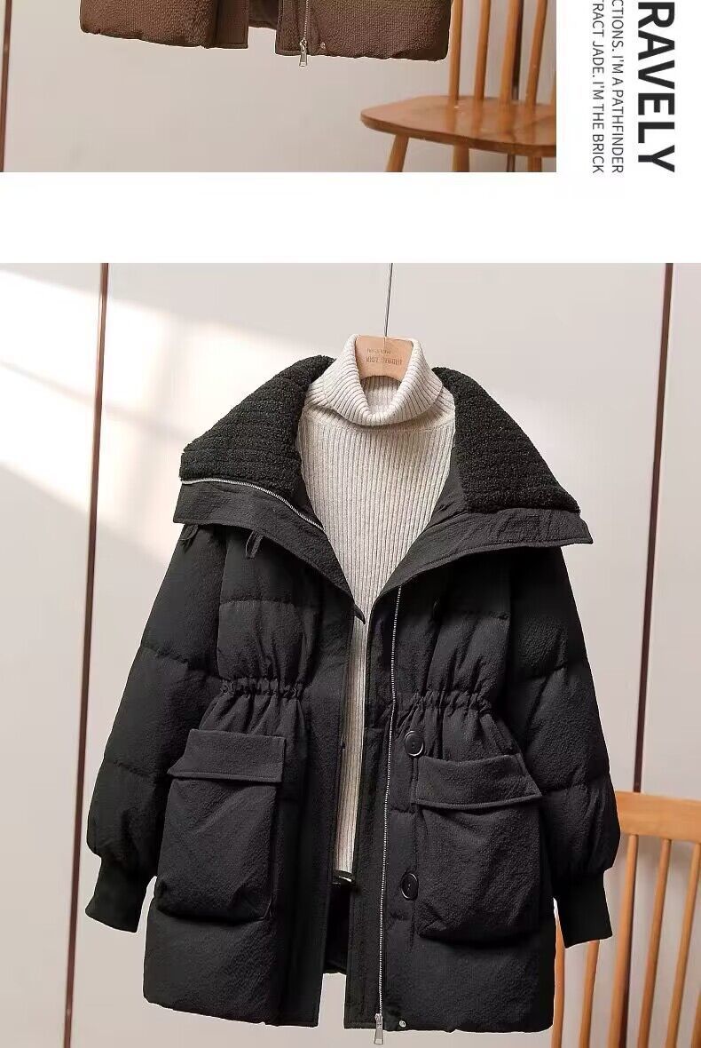 Chaqueta Shanli Dadi de invierno estilo occidental, de longitud media, acolchada de algodón y lana de cordero, con solapa grande y gruesa.