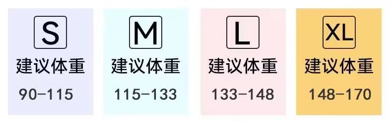 S 45-57.5kg, M 57.5-67.5kg, L 67.5-75kg, Xl 75-85kg