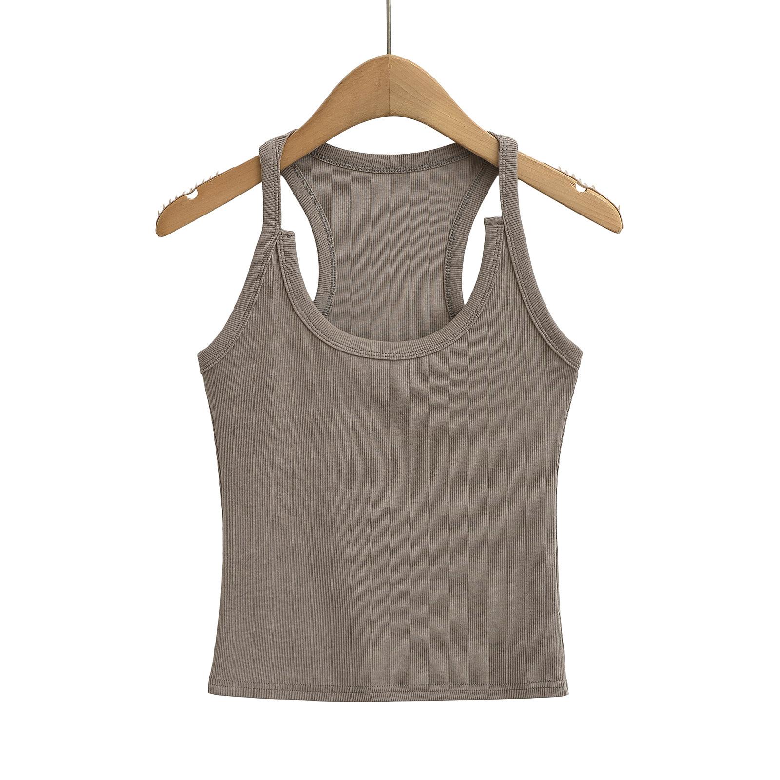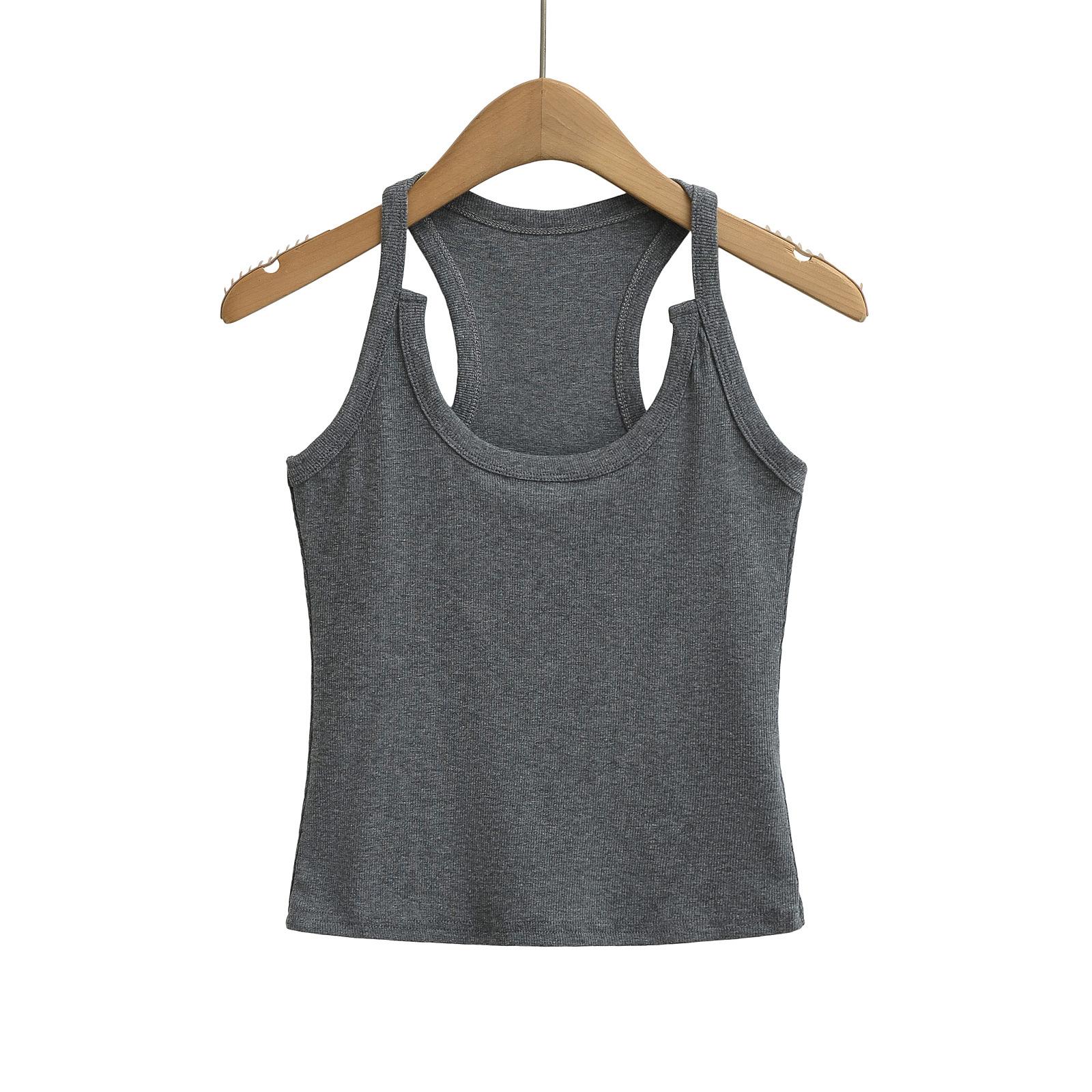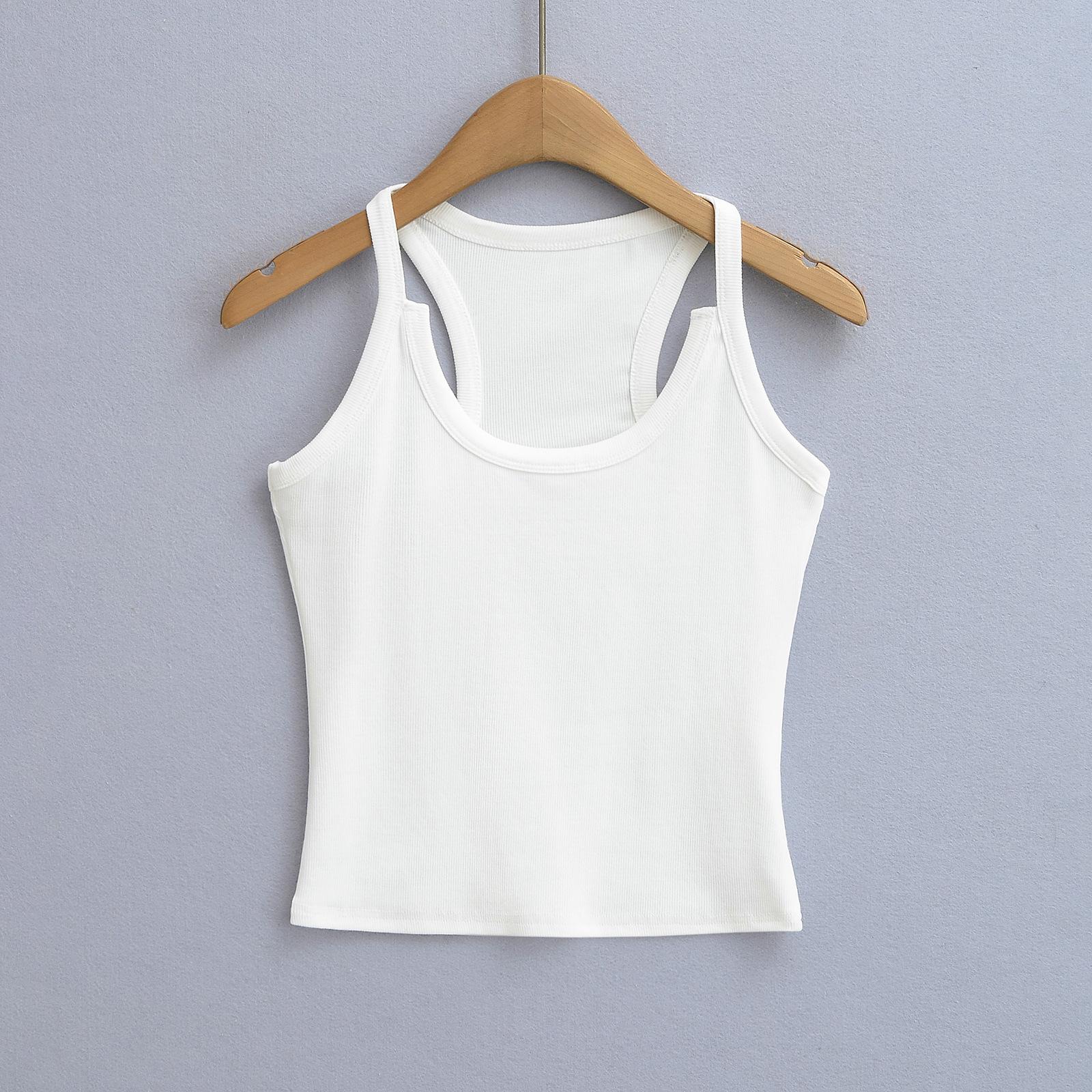 Camisola sexy con cuello en U de las Spice Girls, primavera y verano de 2025, para mujer, corta, sin mangas, con hombros estrechos, base interior.