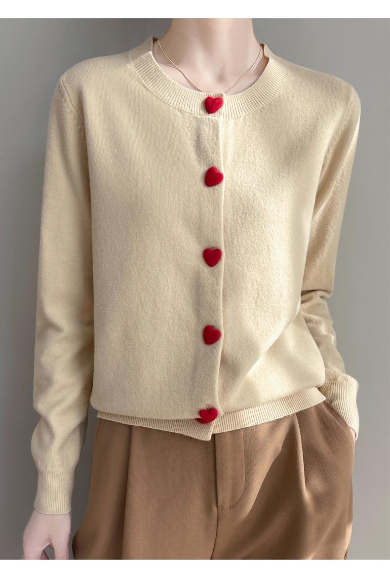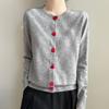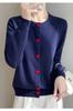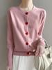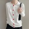 Cárdigan de punto de primavera para mujer, nuevo suéter de punto de manga larga con cuello redondo y botones de amor dulce, abrigo superior de terciopelo Andy