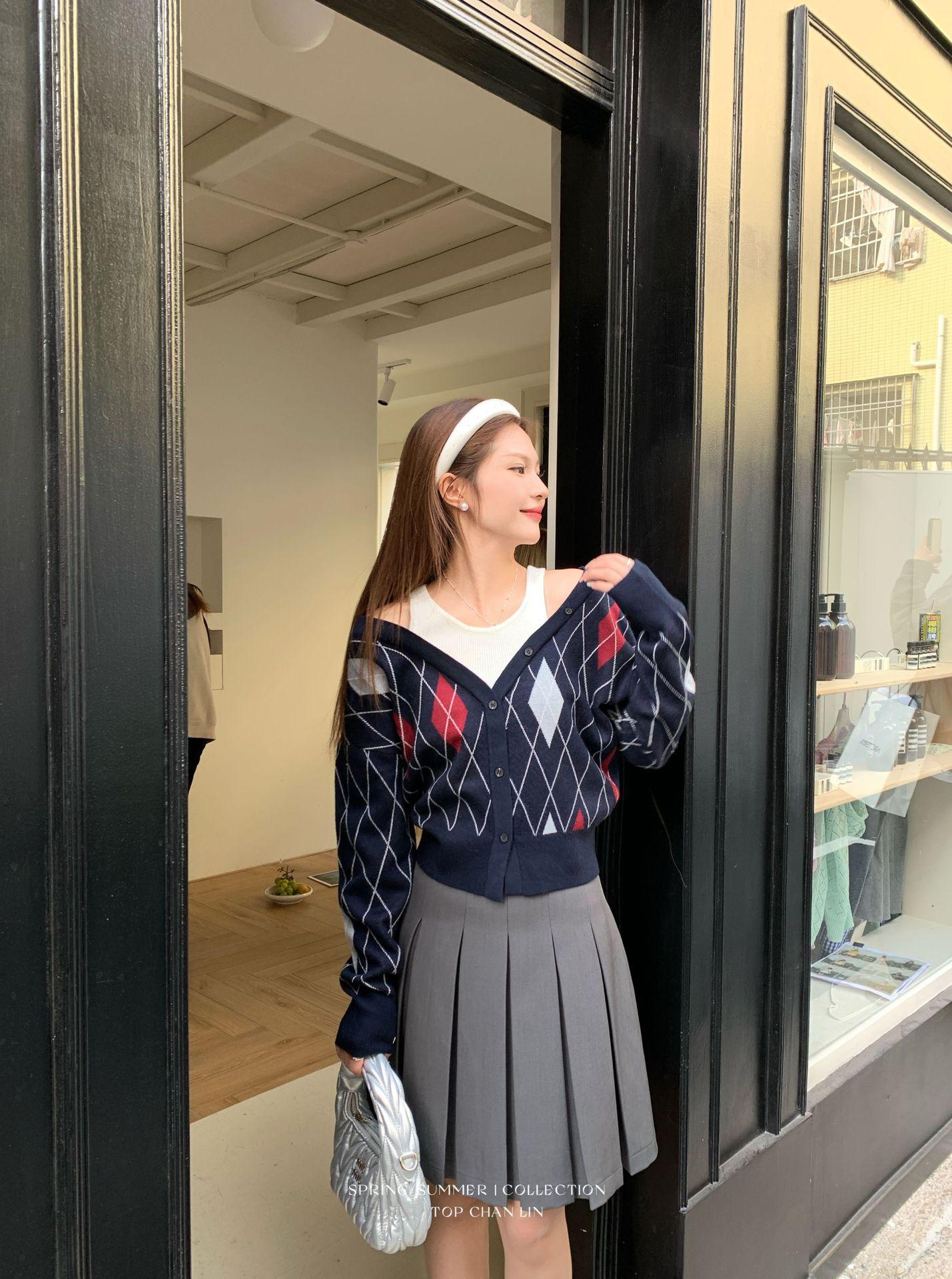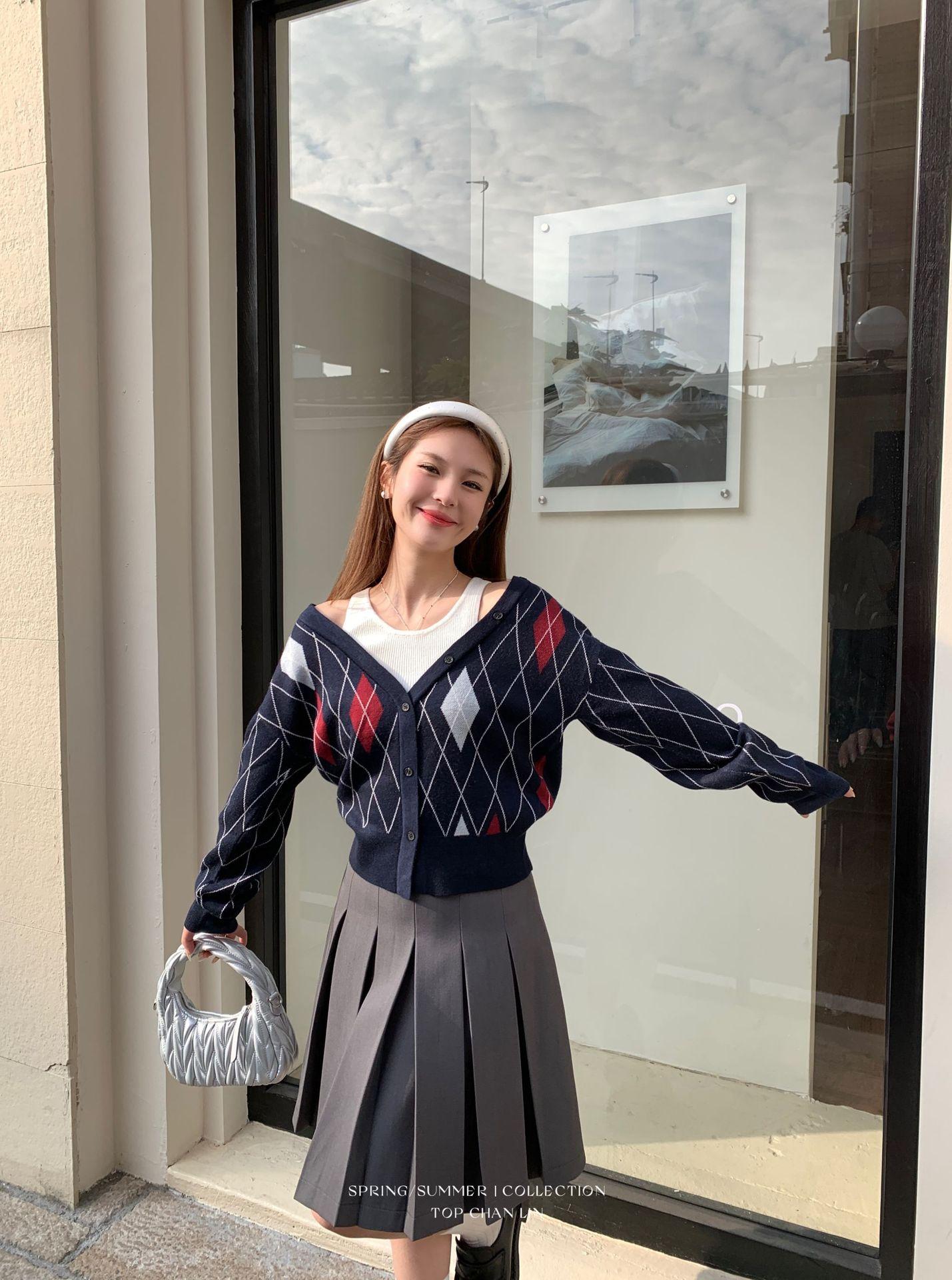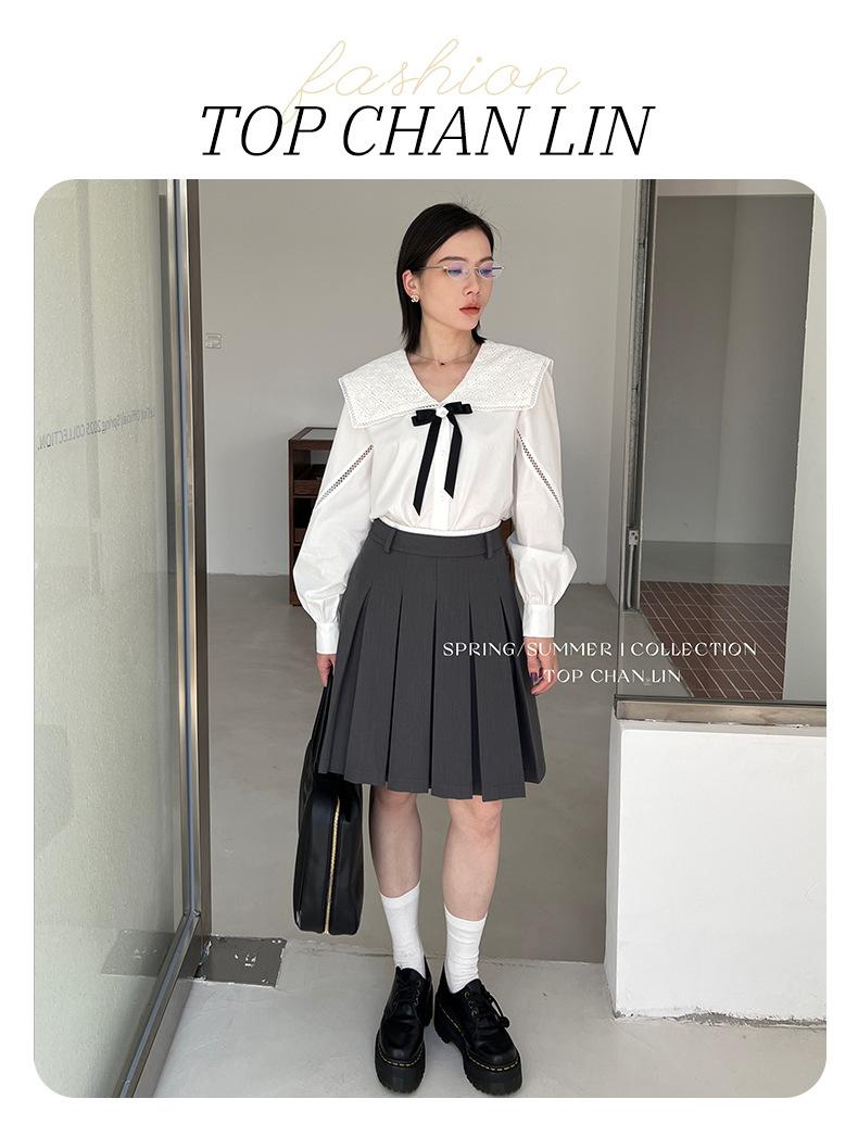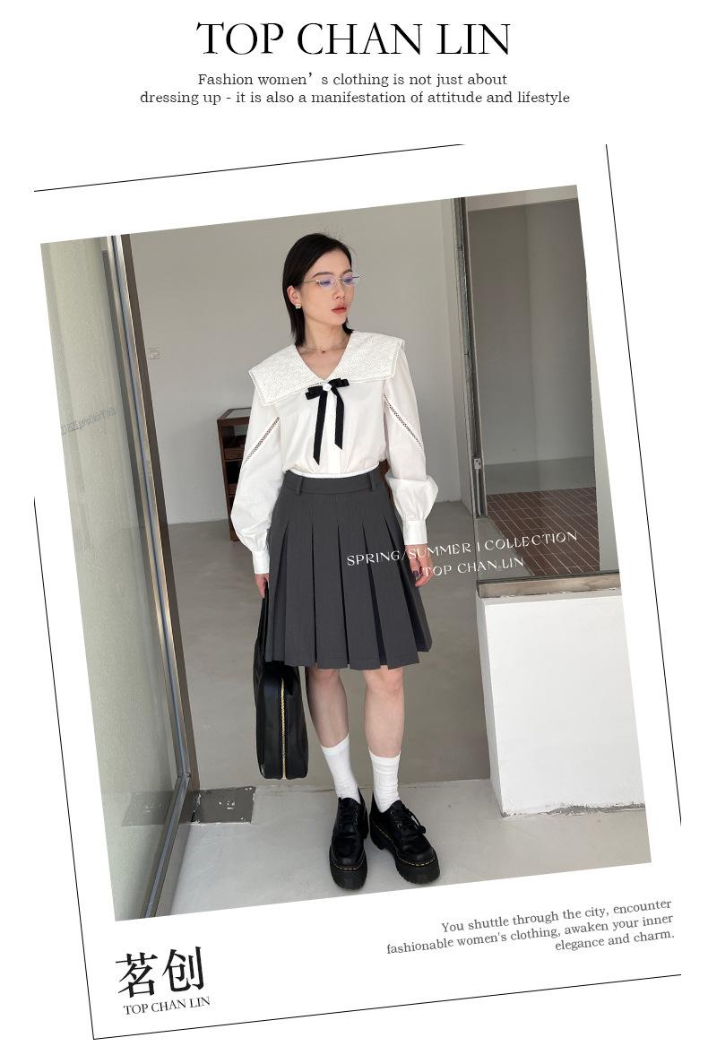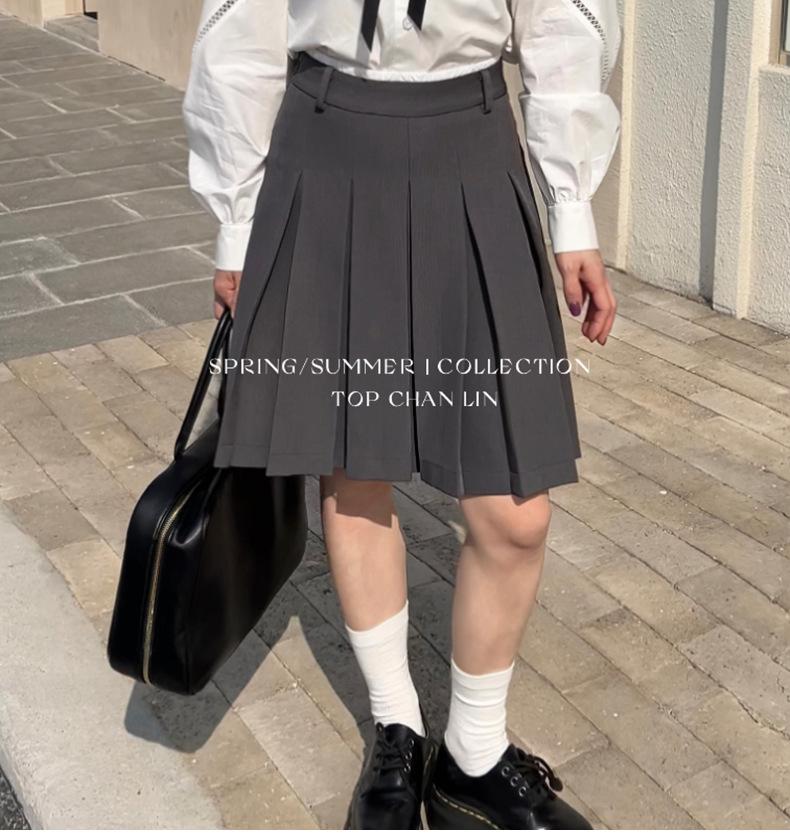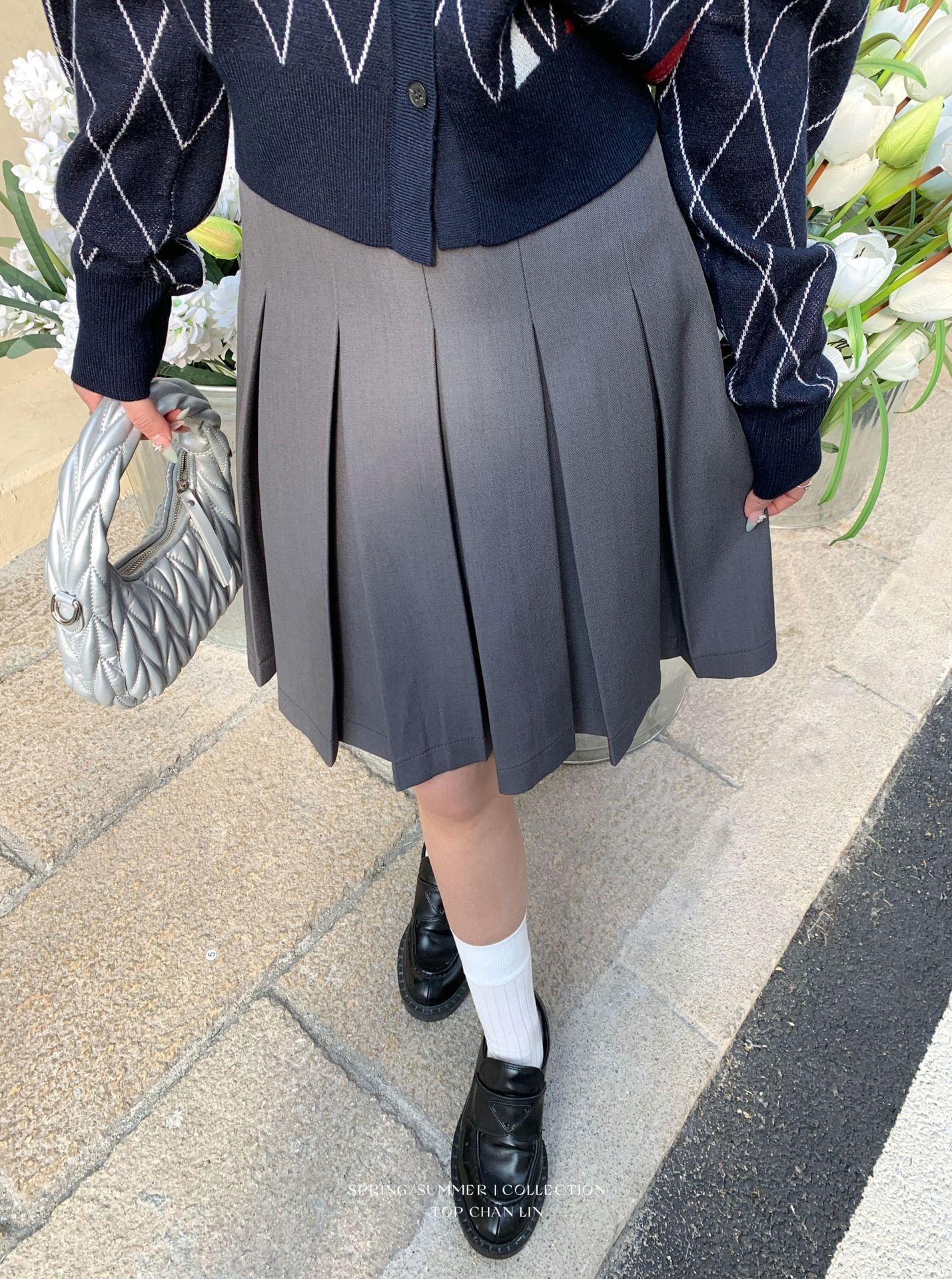[Liquidación Sin Devoluciones ni Cambios] Estilo Universitario Miu Casual y Más Fácil de Combinar Falda de Cinco Puntos de Cintura Alta Falda Midi Plisada