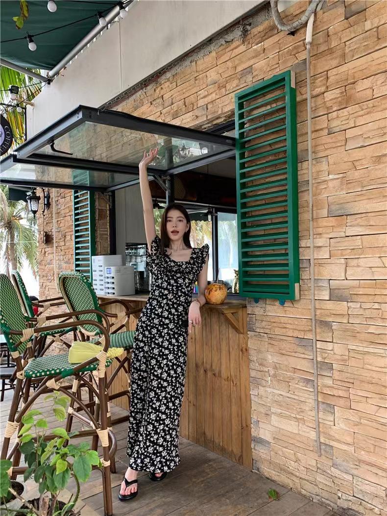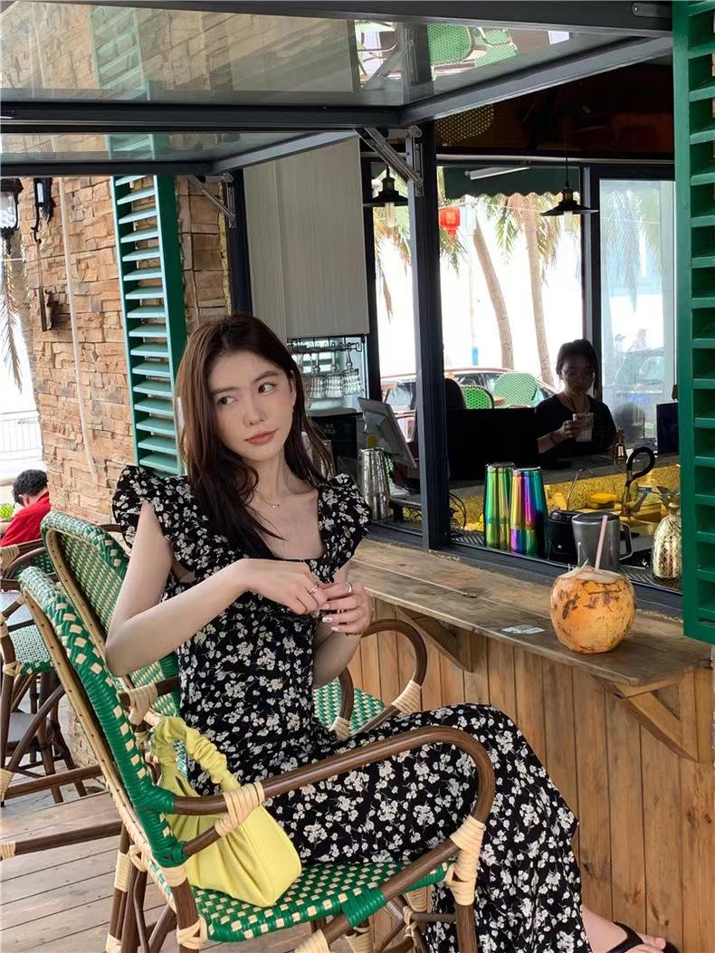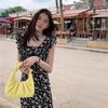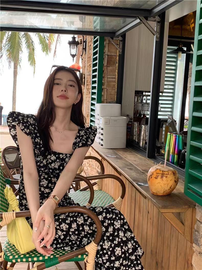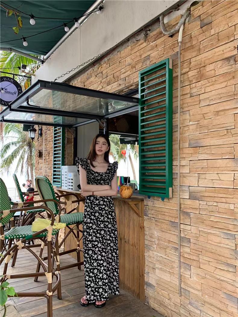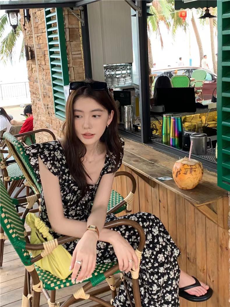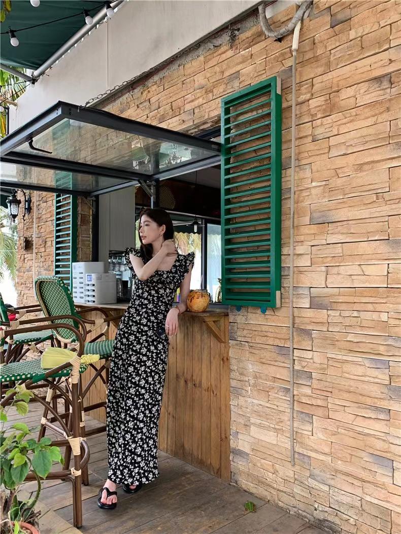 Vestido Floral de Manga Corta con Vuelo para Mujer Verano 2023 Nuevo Elegante de Gama Alta con Aspecto Adelgazante en la Cintura Falda Larga