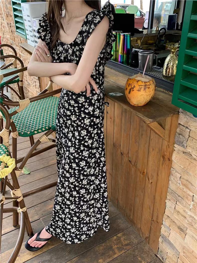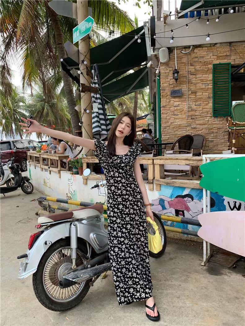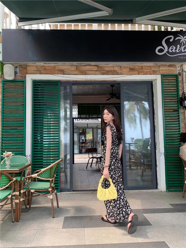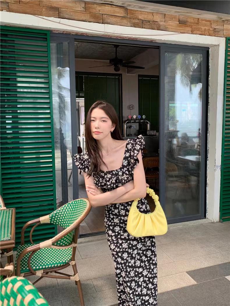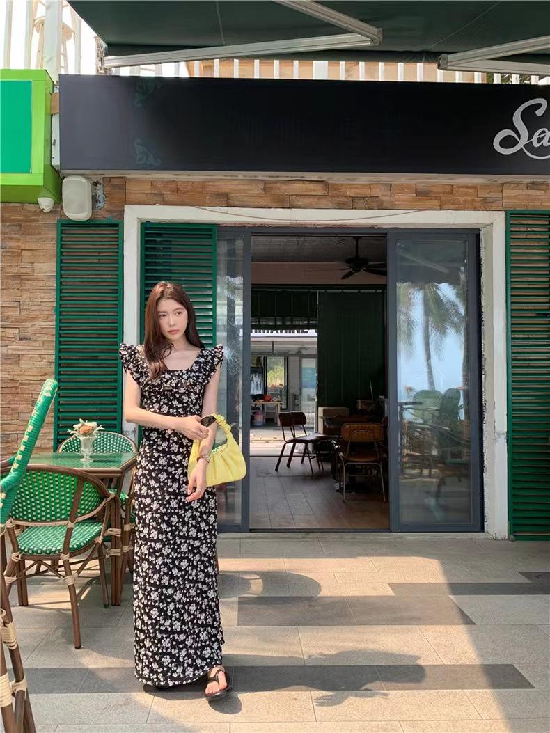 Vestido Floral de Manga Corta con Vuelo para Mujer Verano 2023 Nuevo Elegante de Gama Alta con Aspecto Adelgazante en la Cintura Falda Larga