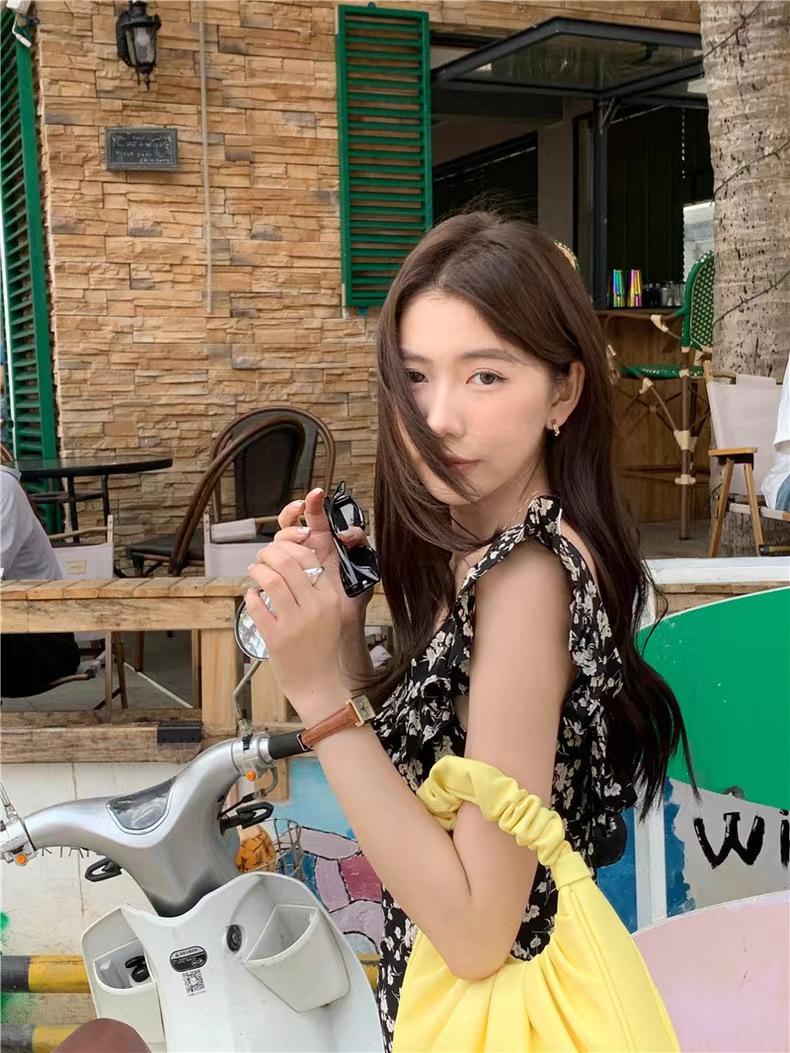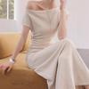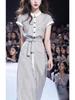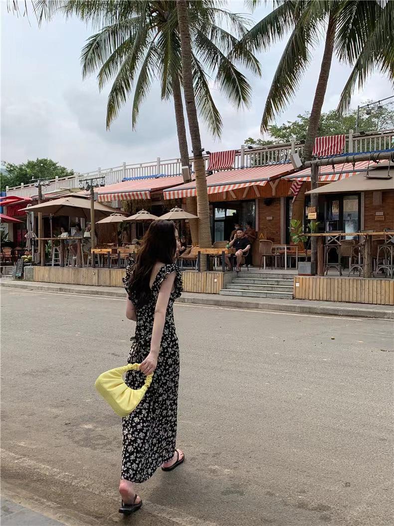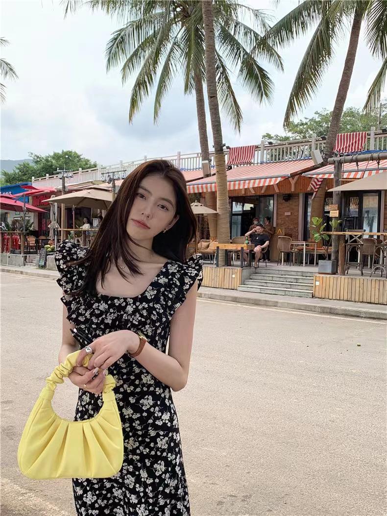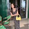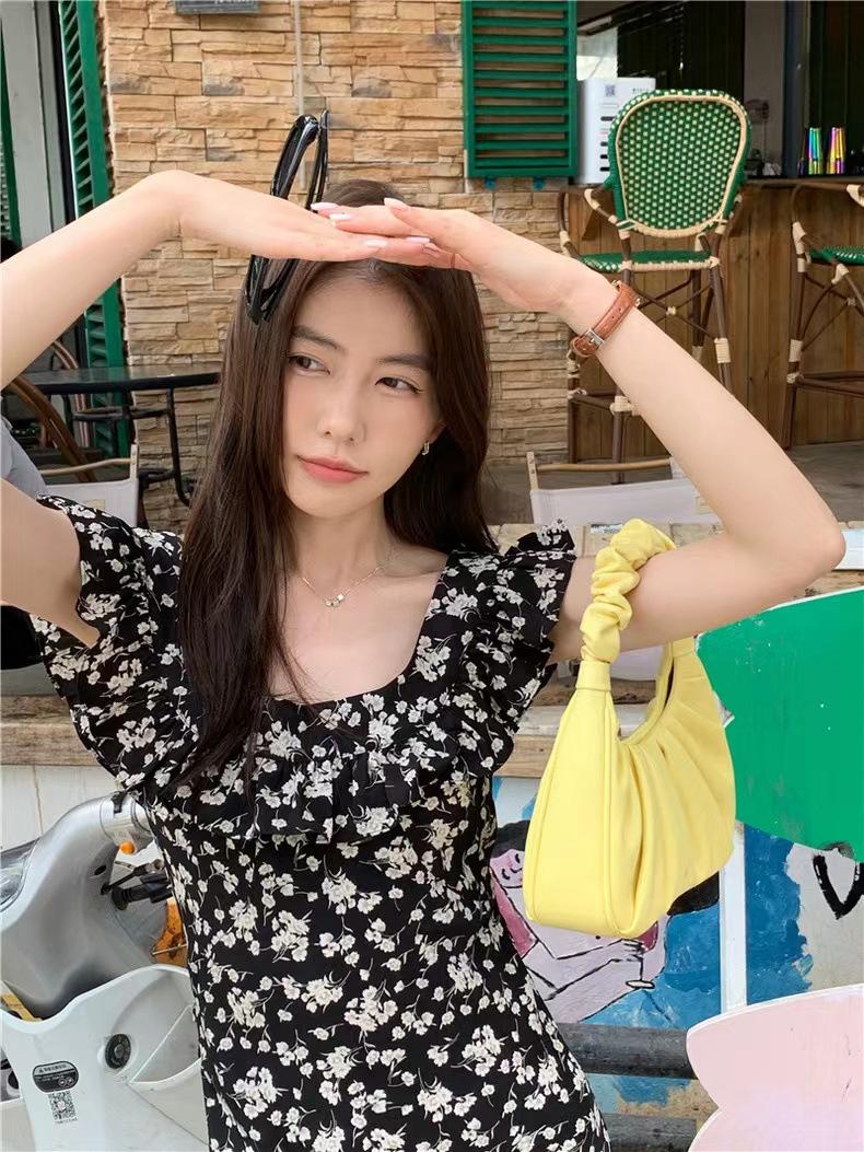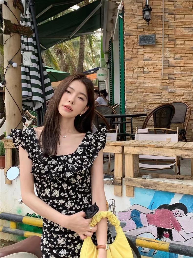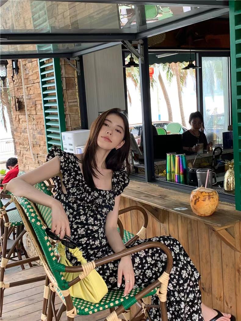 Vestido Floral de Manga Corta con Vuelo para Mujer Verano 2023 Nuevo Elegante de Gama Alta con Aspecto Adelgazante en la Cintura Falda Larga