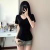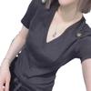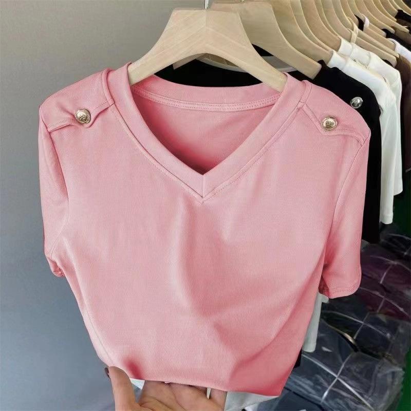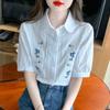 2024 Verano Nuevo Commuter Combinable Camisa de Manga Corta Top para Mujer Ajustado Estilo Camisa Básica de Color Sólido con Botones en el Cuello Trendy