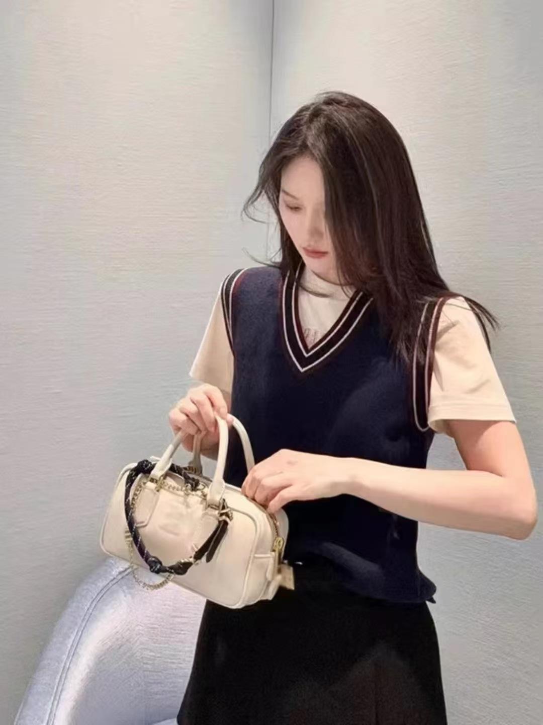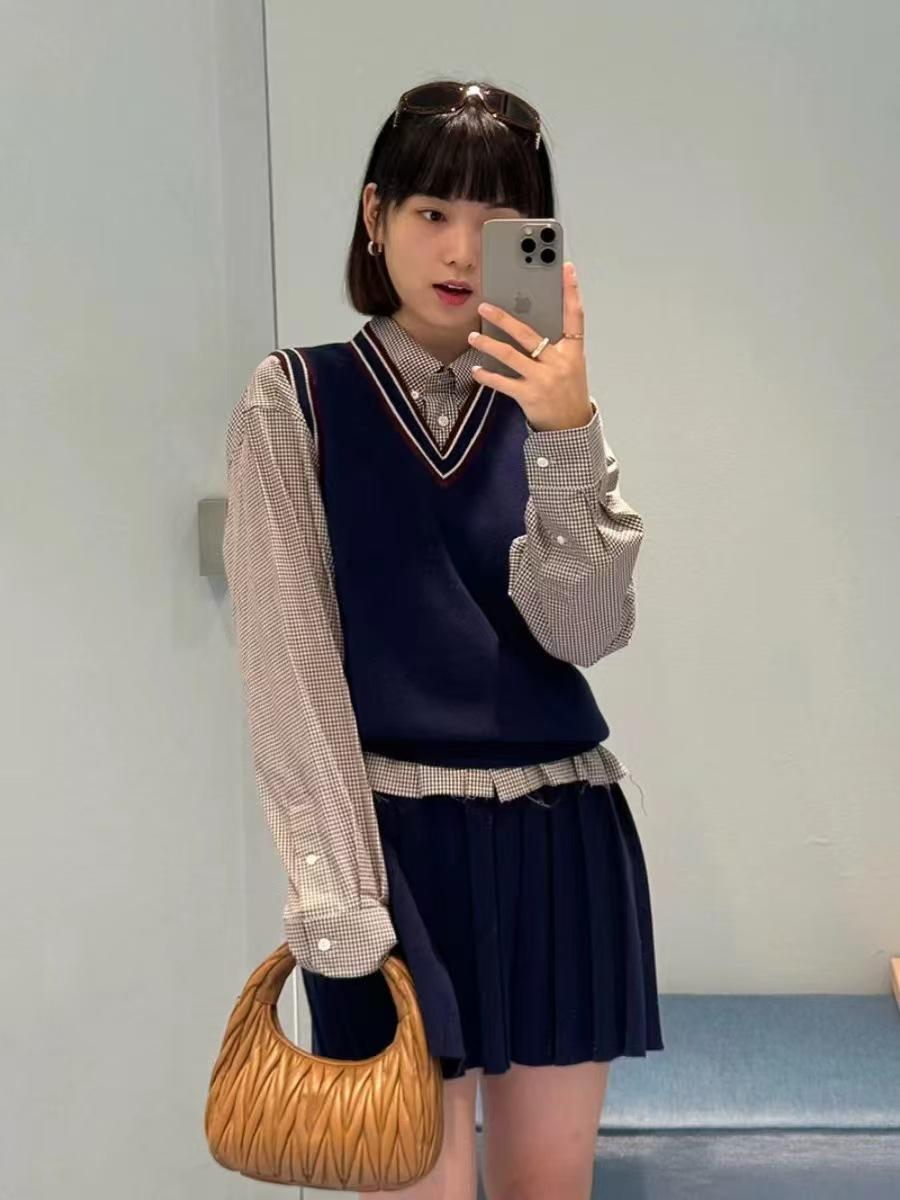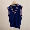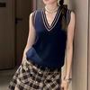 Suéter de punto con cuello en V en contraste, ajustado, combinable con todo, estilo coreano, otoño de 2024