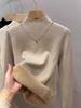 2024 otoño e invierno nuevo estilo extranjero con forro polar interior suéter acolchado para mujer cuello semi alto cálido una pieza terciopelo tejido camisa base