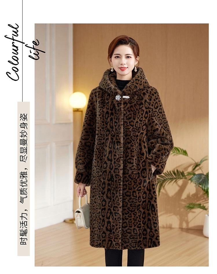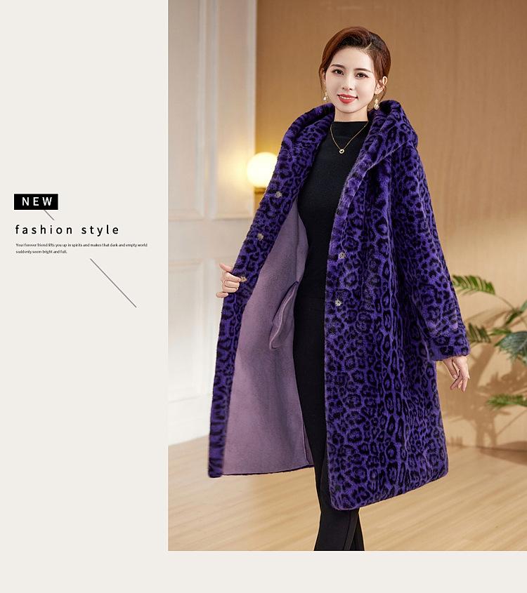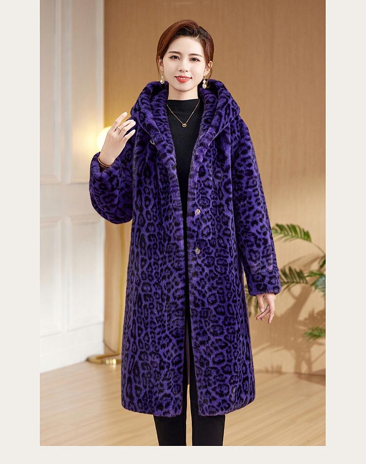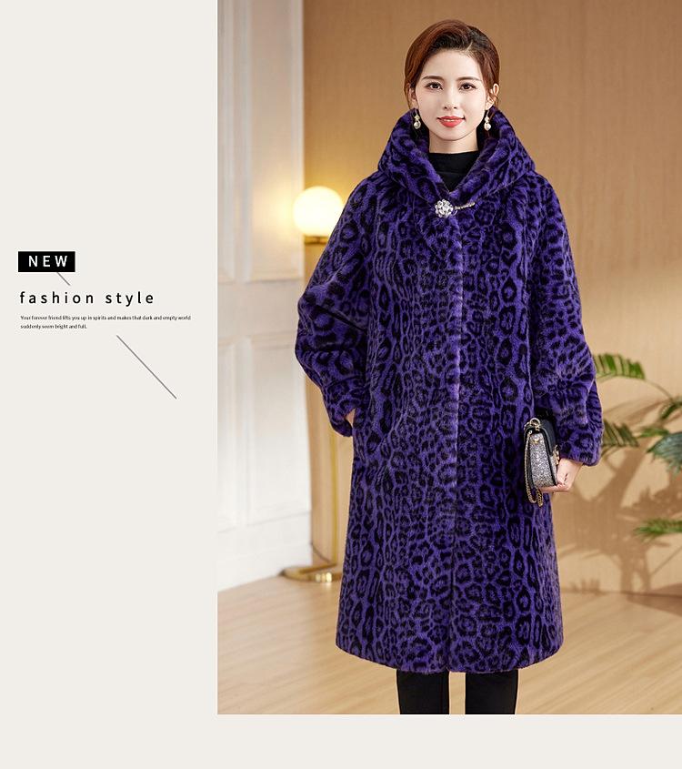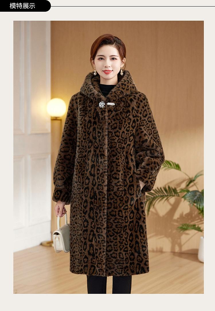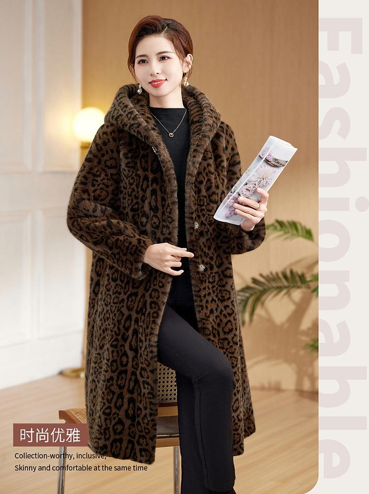 Abrigo de piel sintética de visón con capucha Fur One 2024 para mujer, abrigo largo de piel sintética con estampado de leopardo para invierno.