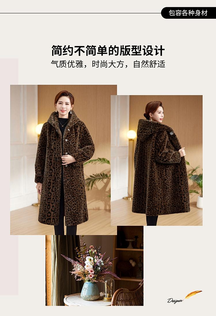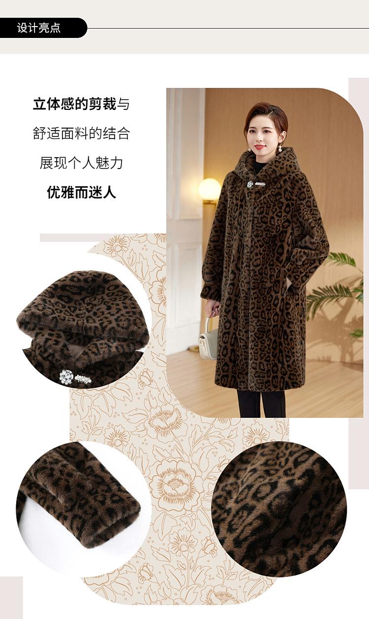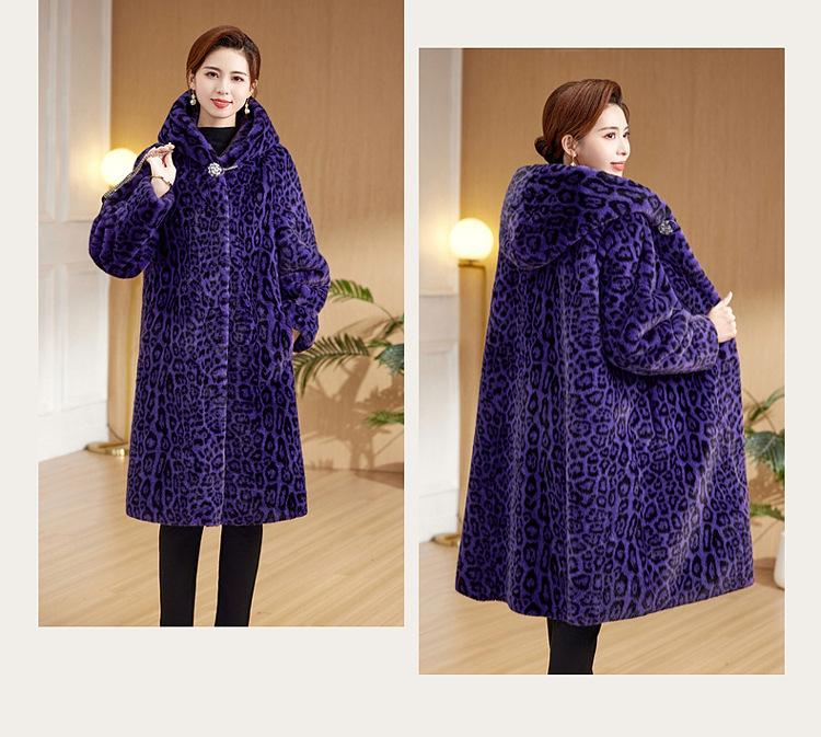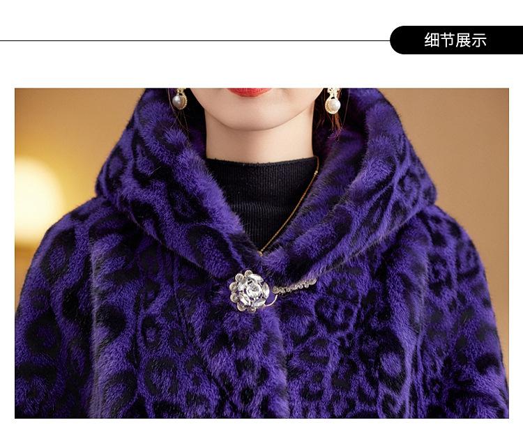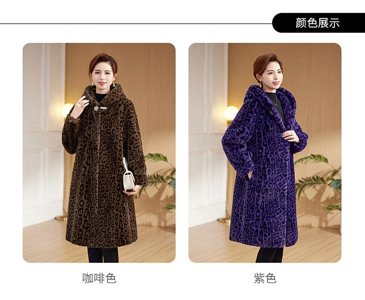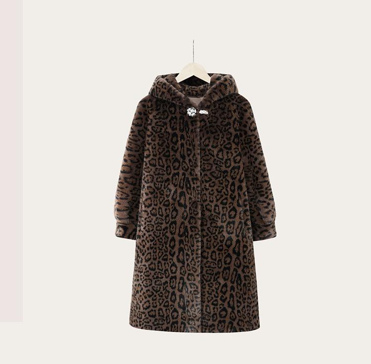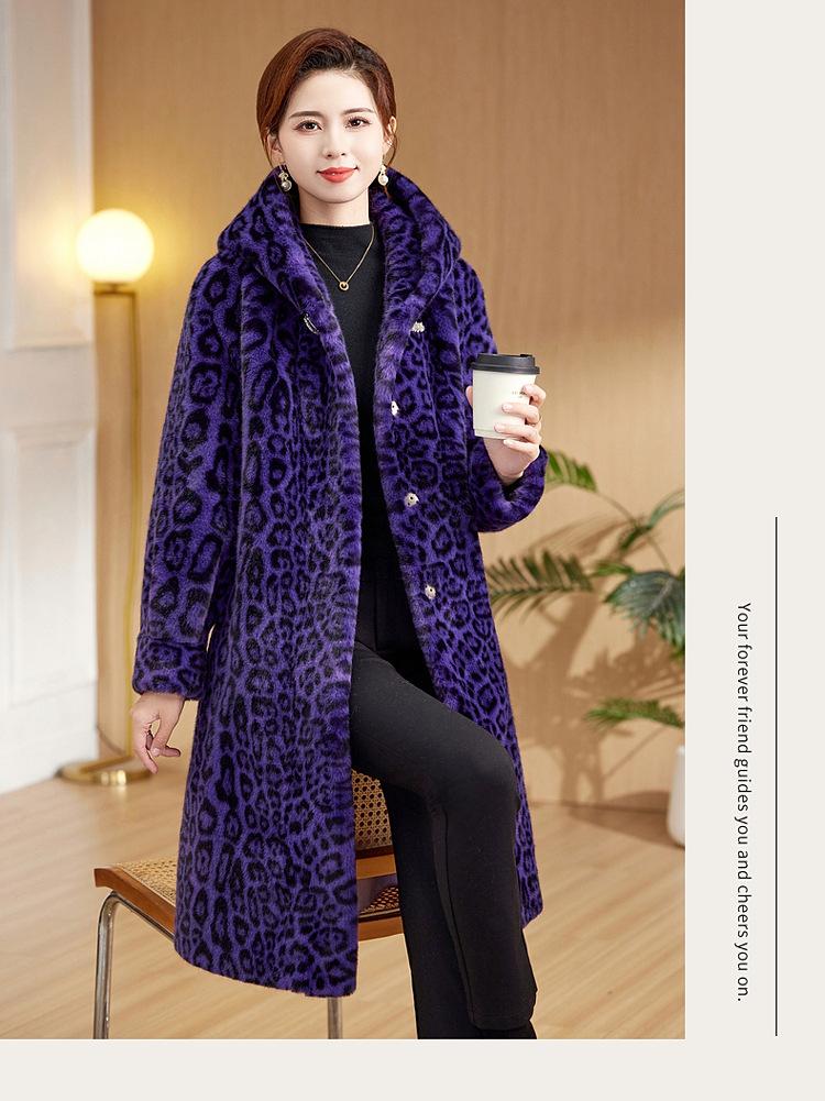 Abrigo de piel sintética de visón con capucha Fur One 2024 para mujer, abrigo largo de piel sintética con estampado de leopardo para invierno.