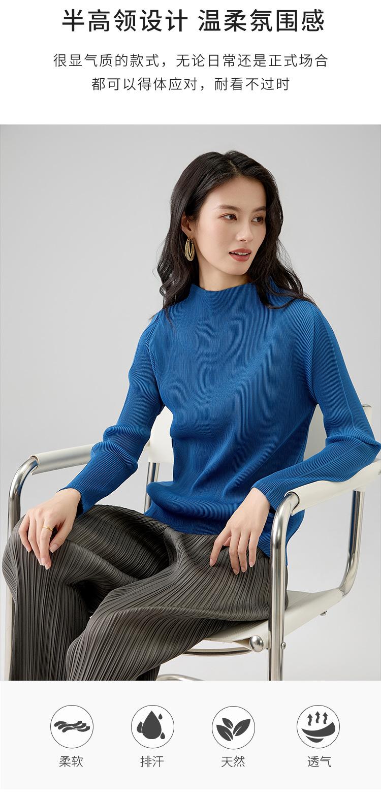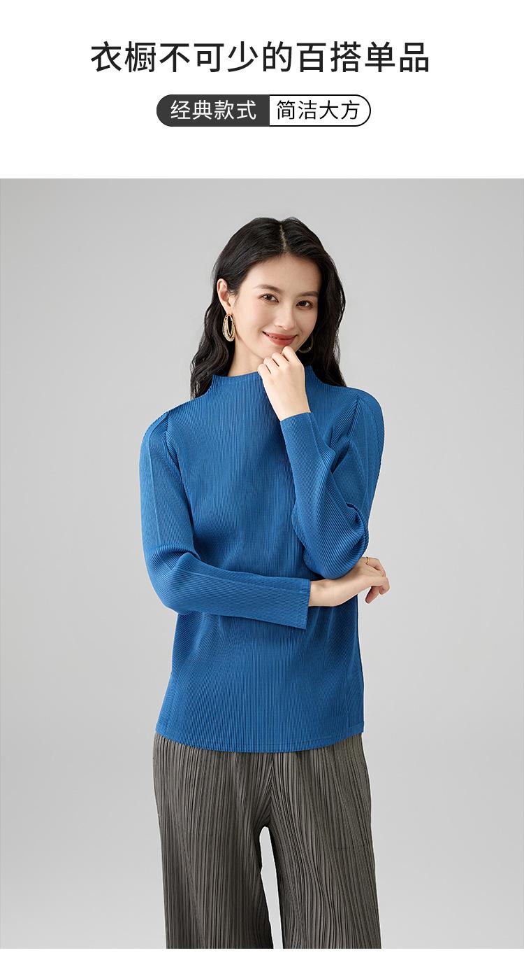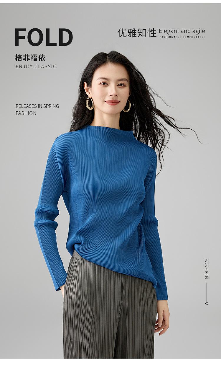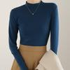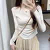 Top de Manga Larga con Pliegues de Bajo Alto Primavera 2025 Nuevo Elegante Medio Cuello Alto Ajustado Versátil Color Puro Camiseta Base