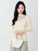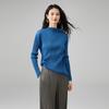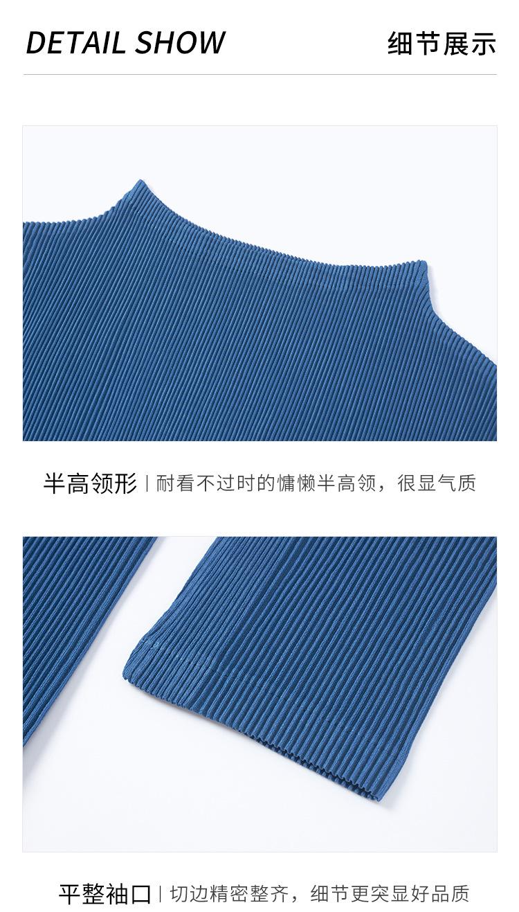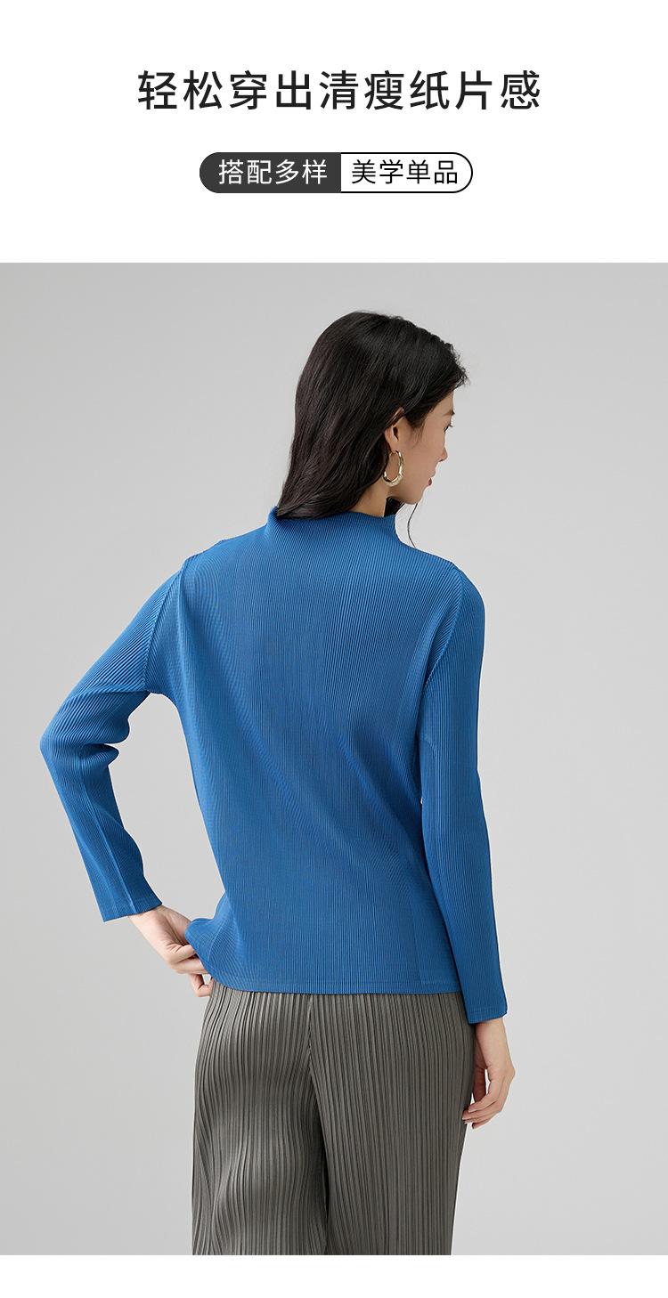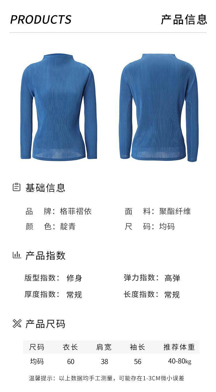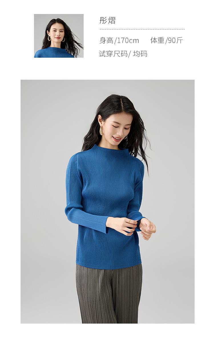 Top de Manga Larga con Pliegues de Bajo Alto Primavera 2025 Nuevo Elegante Medio Cuello Alto Ajustado Versátil Color Puro Camiseta Base