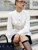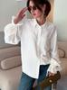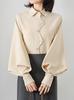 Camisa retro estilo Hong Kong de cuello puntiagudo 2025 primavera y otoño nueva camisa de temperamento de manga larga irregular diseño top chic