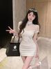 Vestido Clásico Exquisito de Gente Pequeña Estilo Lujuria Pura Sexy Malla Empalmada Cintura Ceñida de Manga Corta