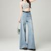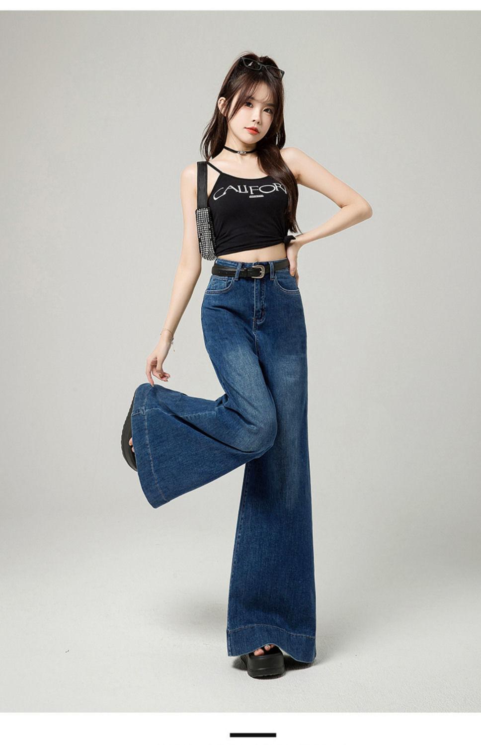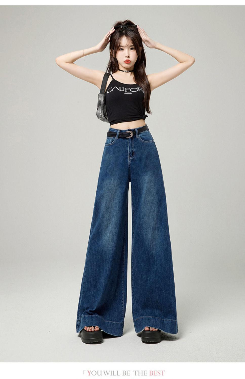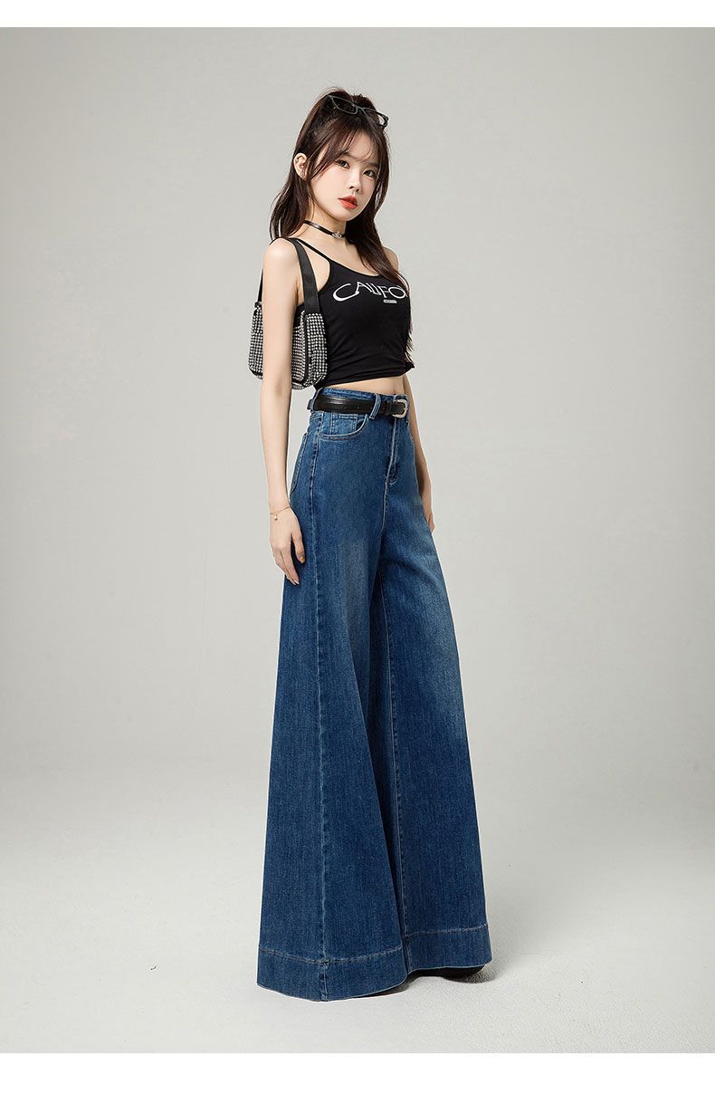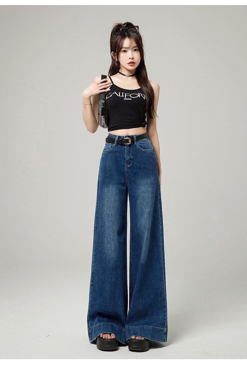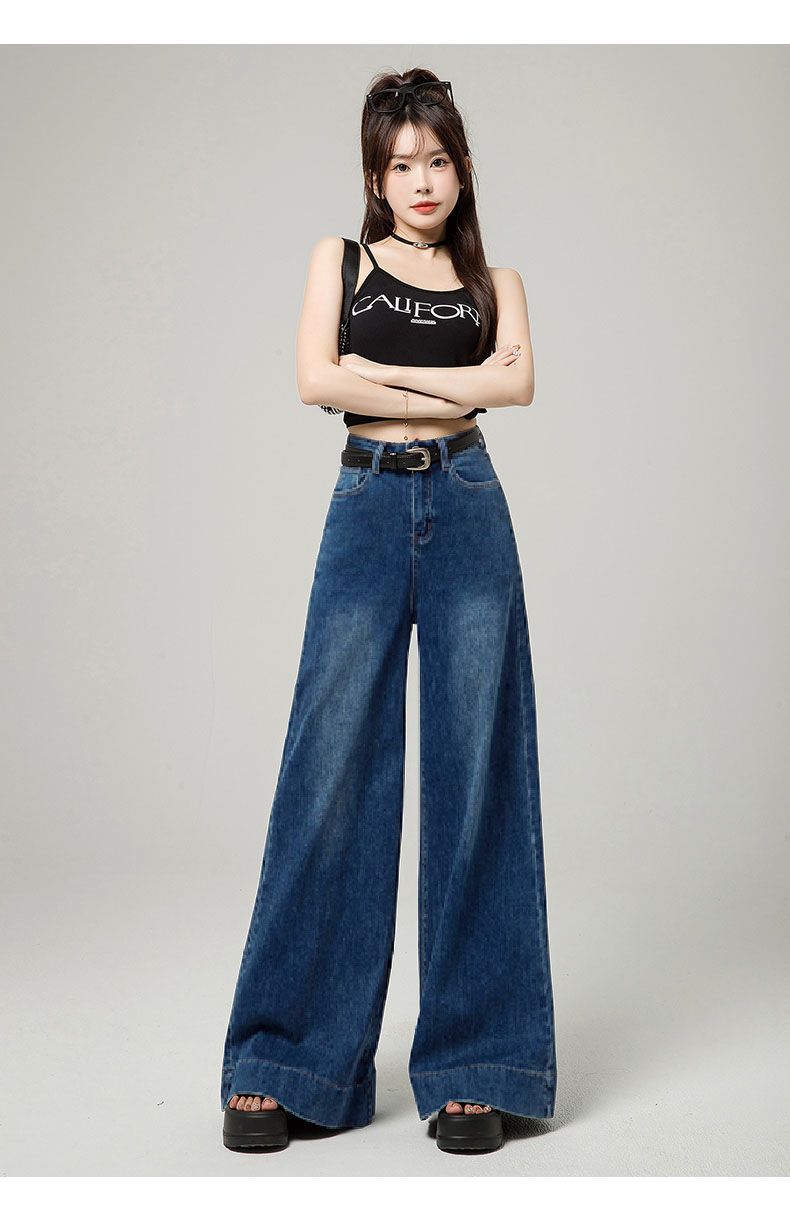 Pantalones elásticos de fregona 2025, recién llegados, vaqueros holgados de pierna ancha, ropa exterior de primavera para mujer, cintura alta adelgazante, combinables.