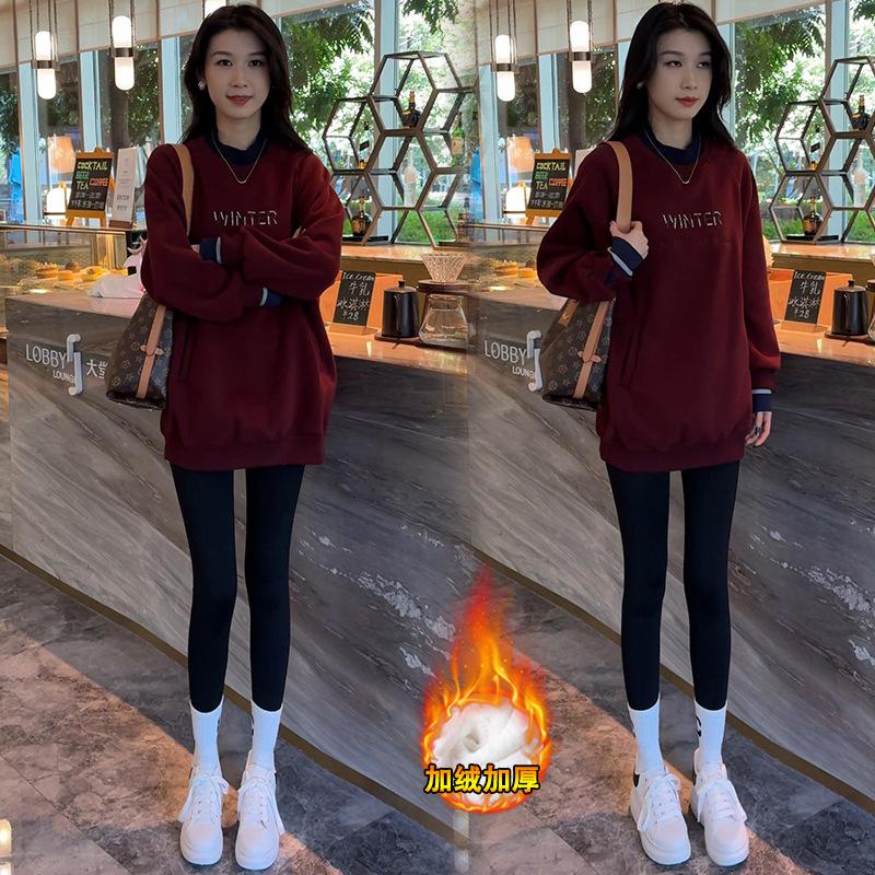 Red sweatshirt [velvet], Apricot sweatshirt [plus velvet]