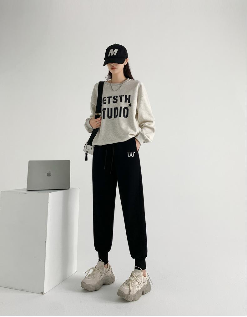 Pantalones deportivos de algodón de marca de moda para mujer, otoño e invierno, nuevo estilo coreano, modernos, holgados, adelgazantes, cintura alta, casuales, deportivos, pantalones harem