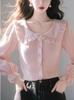 Primavera 2025 Estilo Francés Chic Estilo Occidental Elegante Versátil Reductor de Edad Súper Bonita Blusa Top de Chifón con Cuello de Muñeca