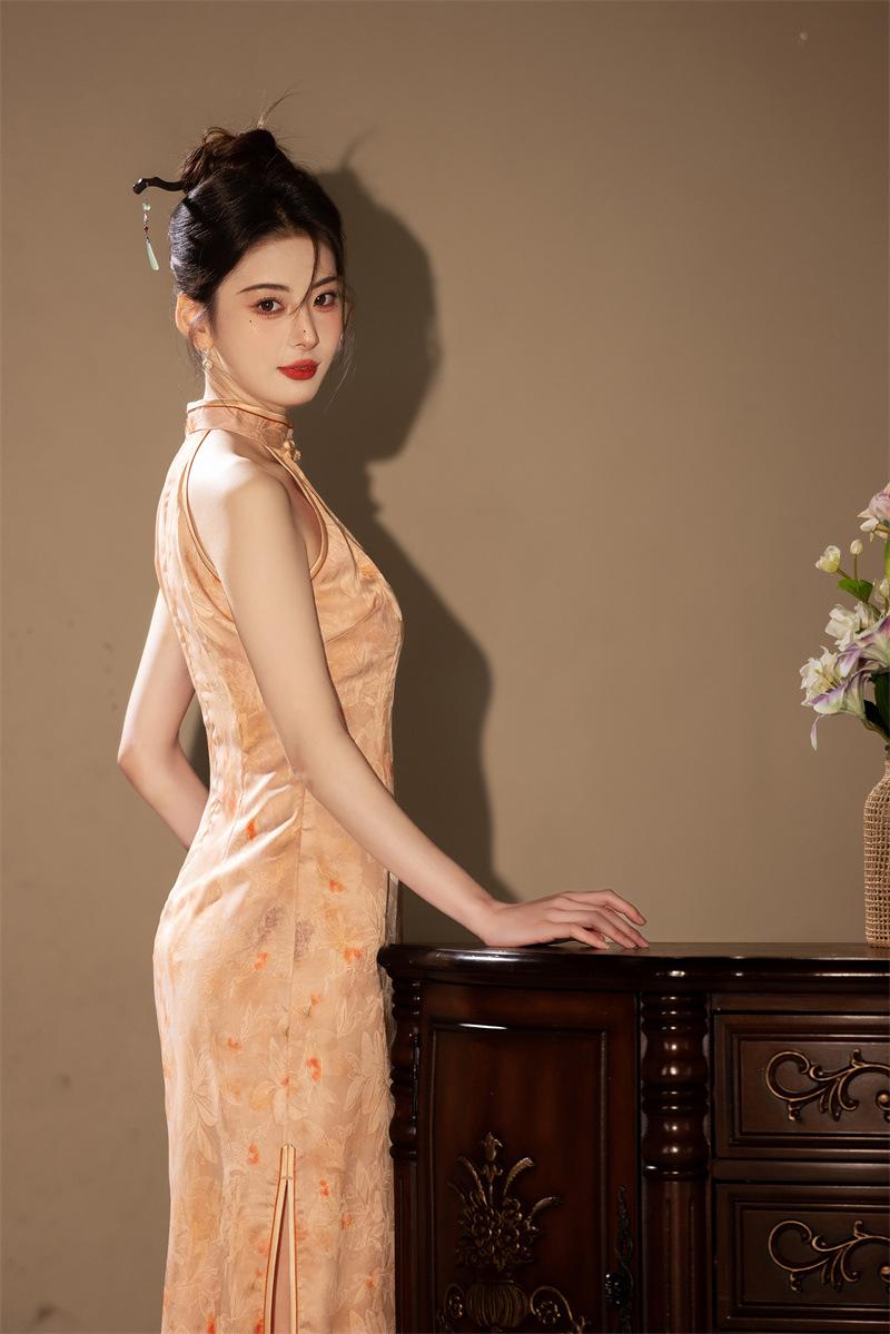 Características:Cheongsam nuevo, tela, textura suave, buena caída, no se encoge, no se decolora, no hace bolitas, ligera elasticidad, más característico de la nación china, bienvenido a comprar,