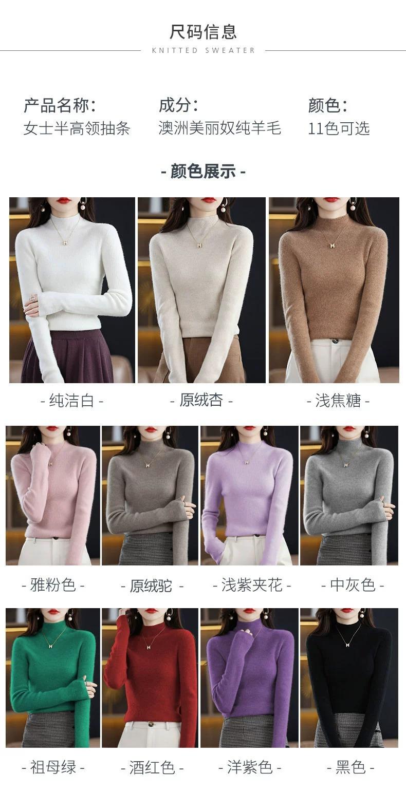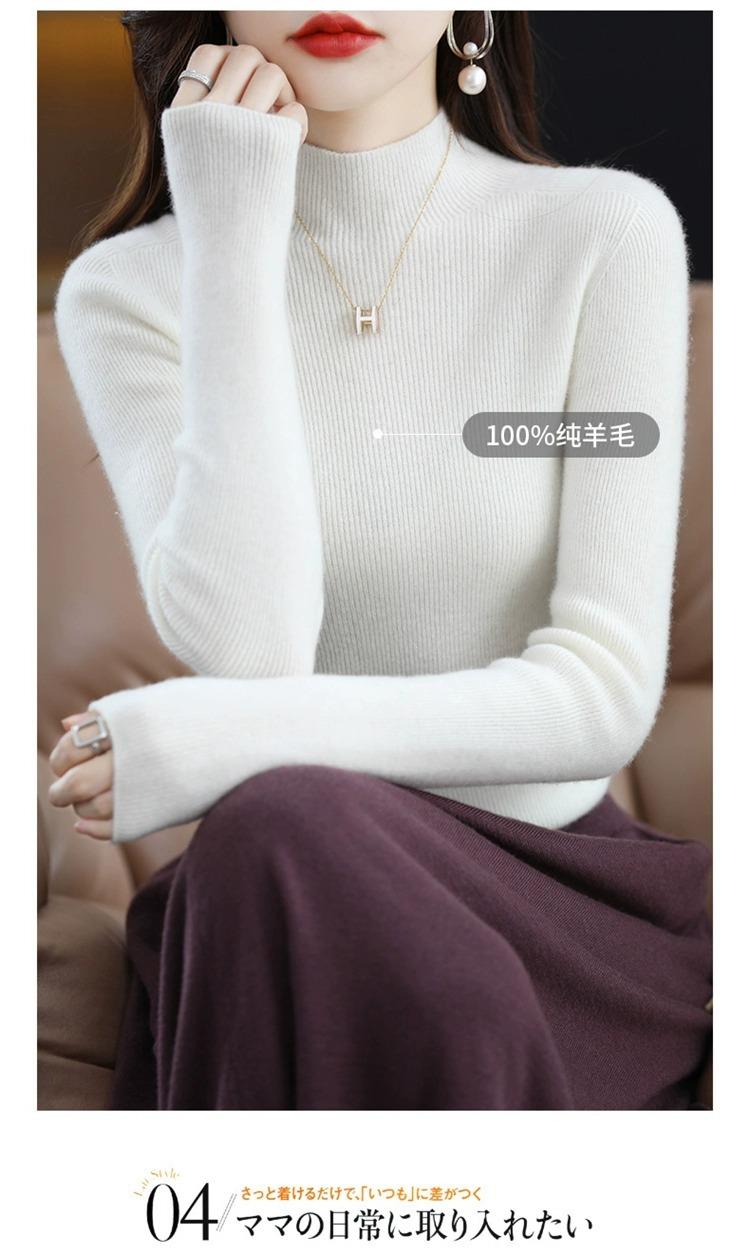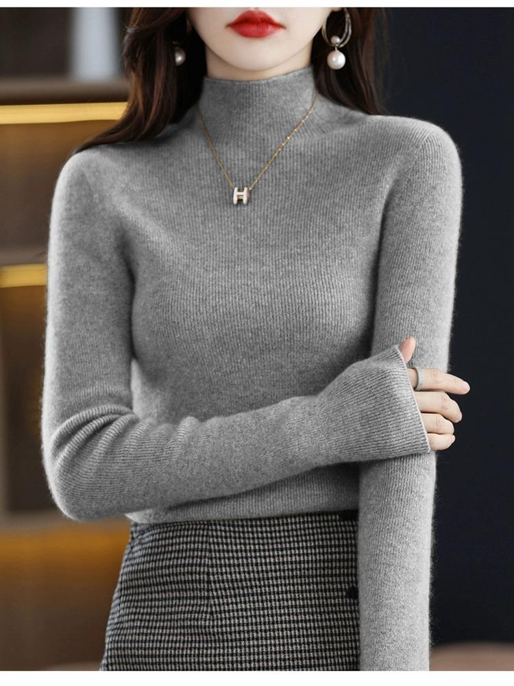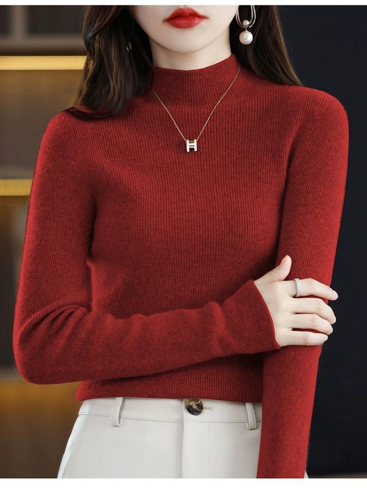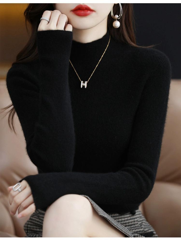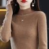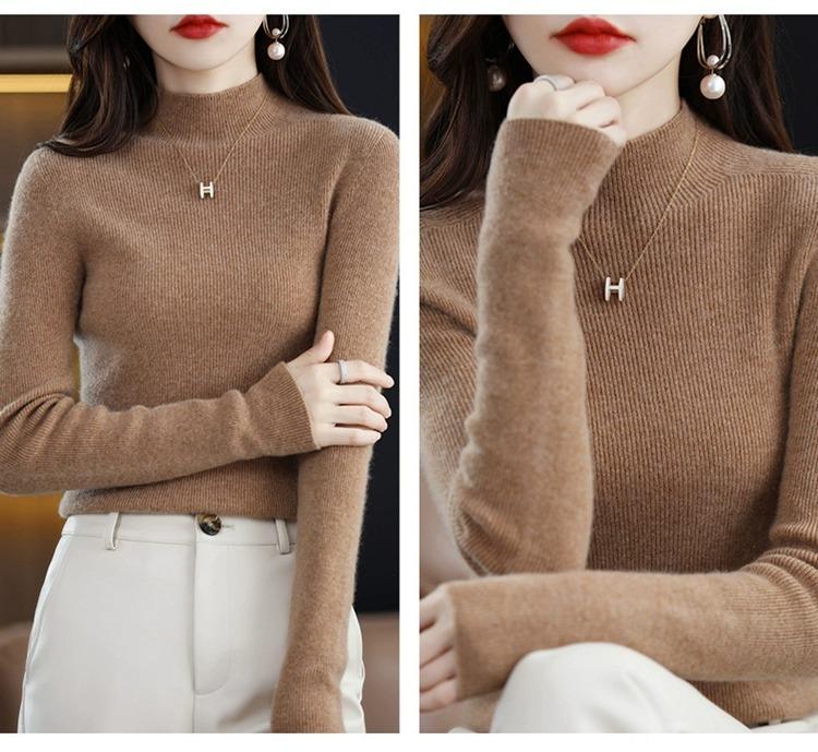 Suéter ajustado de cuello alto para mujer, otoño e invierno, nuevo, 100 % lana, tejido, top adelgazante, camisa básica estilo occidental que combina con todo.