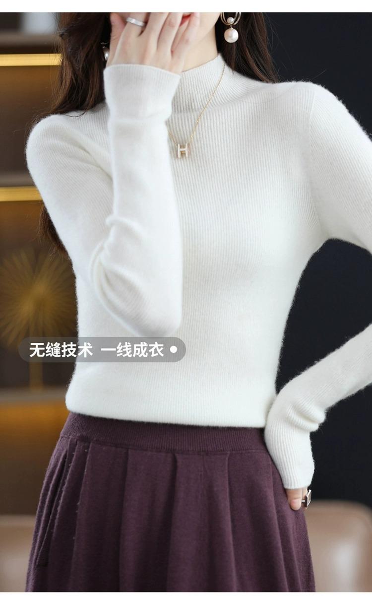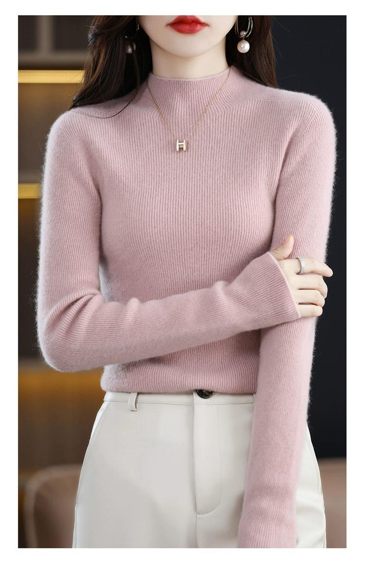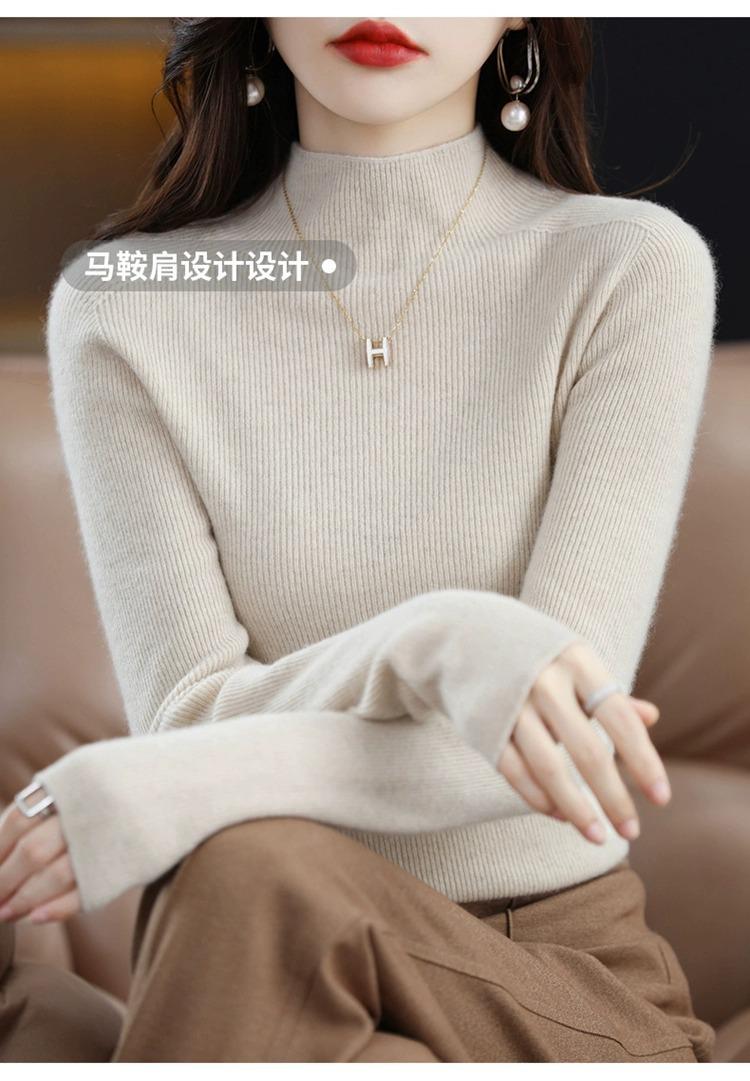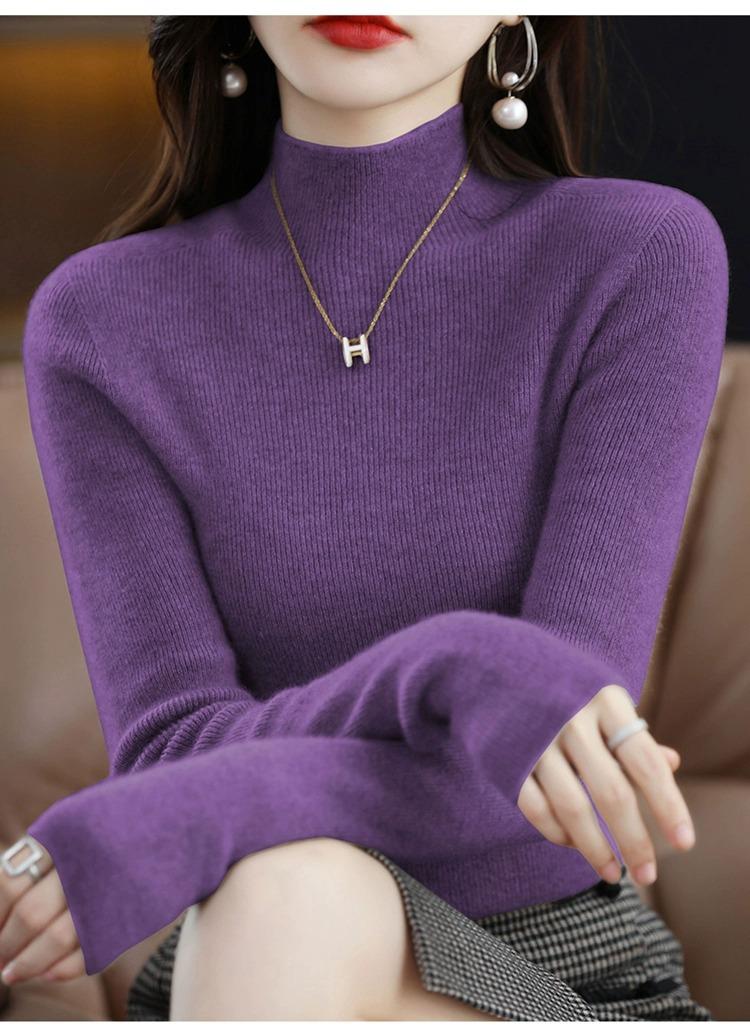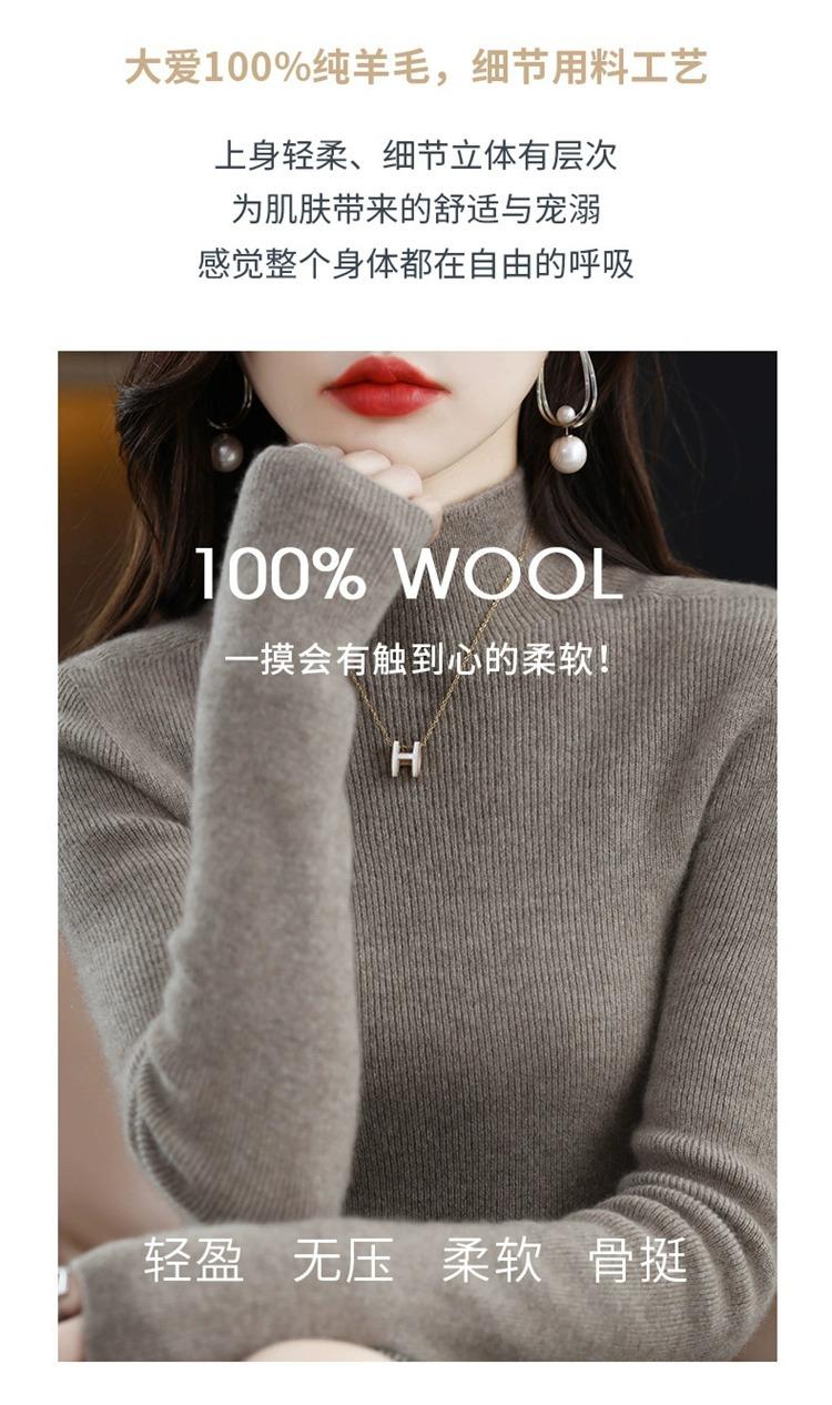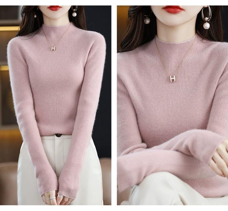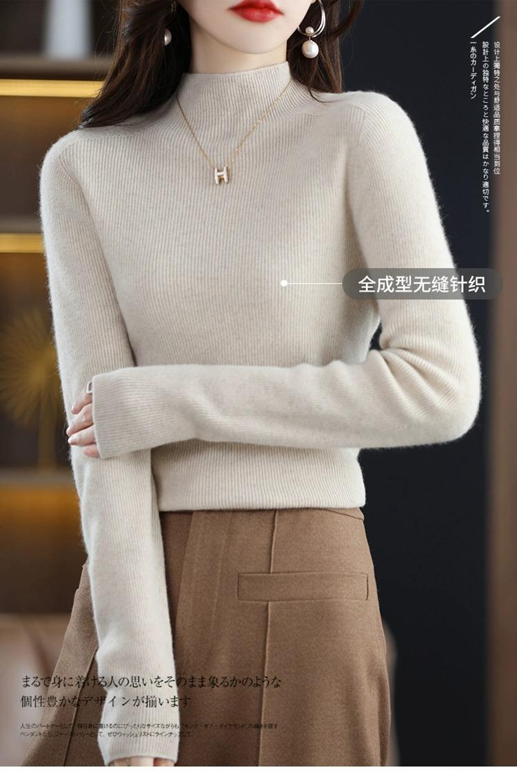 Suéter ajustado de cuello alto para mujer, otoño e invierno, nuevo, 100 % lana, tejido, top adelgazante, camisa básica estilo occidental que combina con todo.