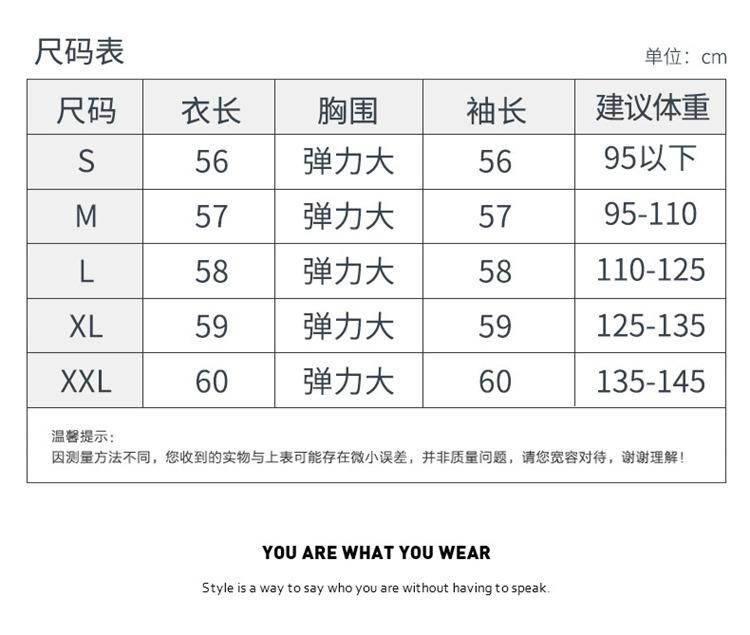 S fit for 40-47.5kg, M fit for 47.5-55kg, L fit for 55-62.5kg, Xl fit for 62.5-67.5kg, 2xl fit for 67.5-72.5kg