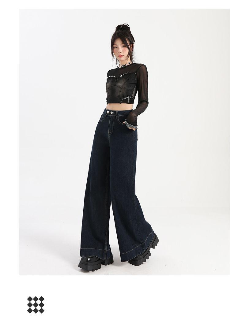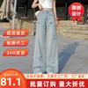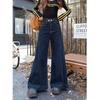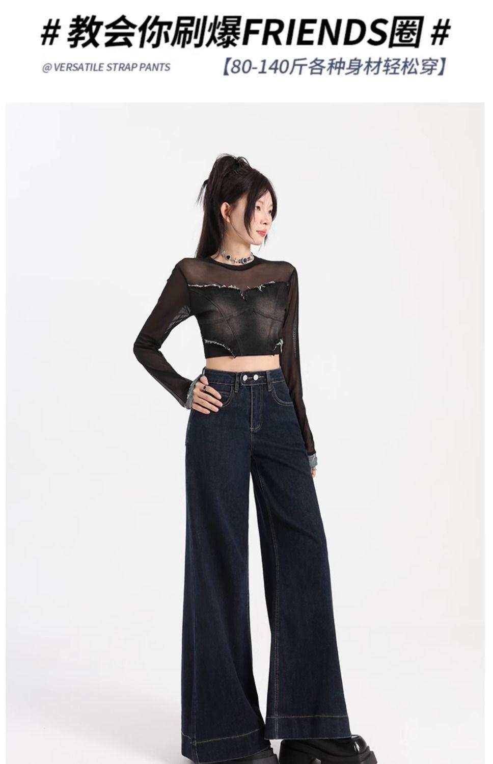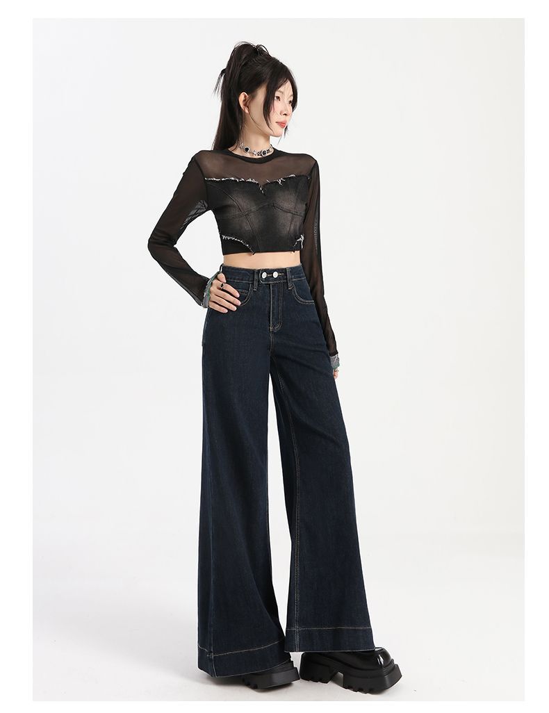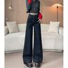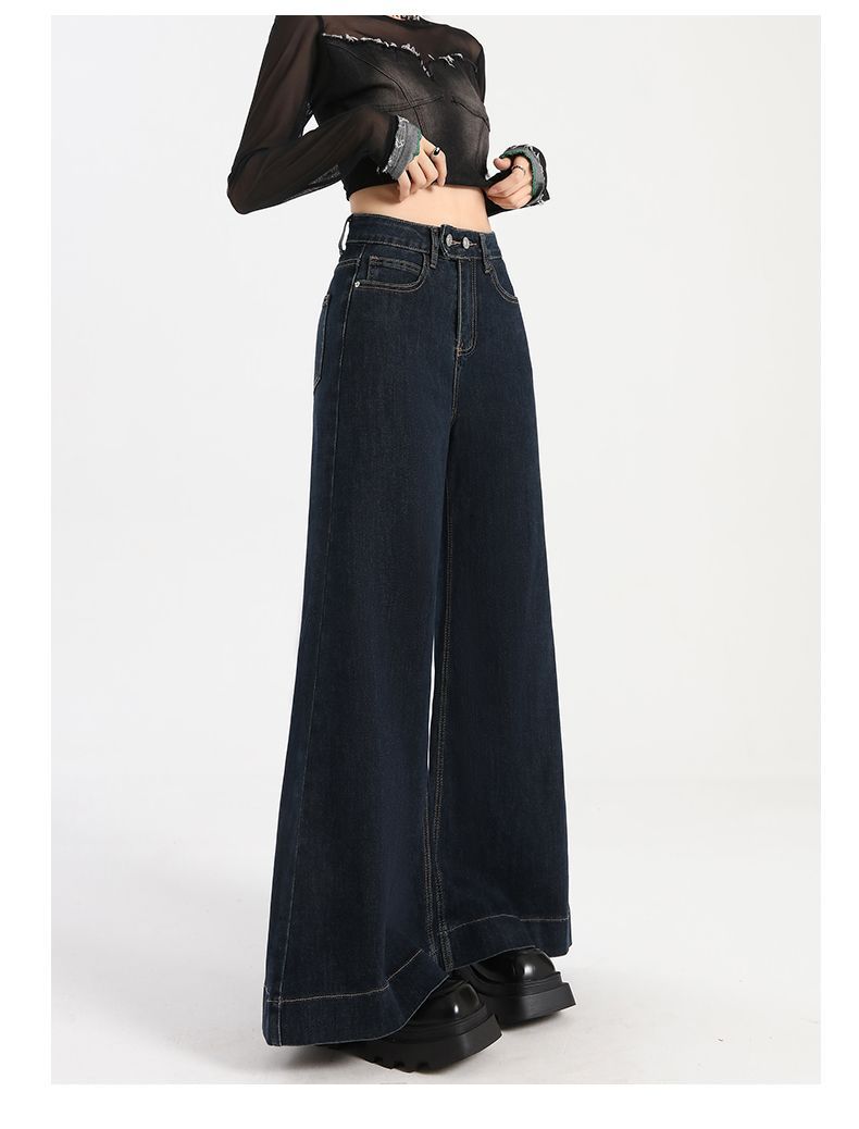Pantalones vaqueros de cintura alta para mujer, estilo retro, versátiles, cómodos y elásticos, de pierna ancha, color azul y gris, adelgazantes, 2025