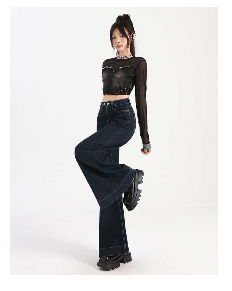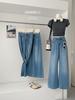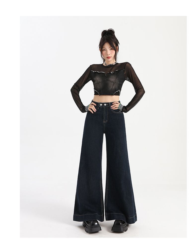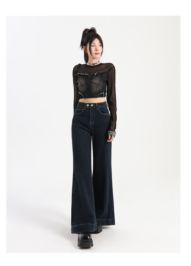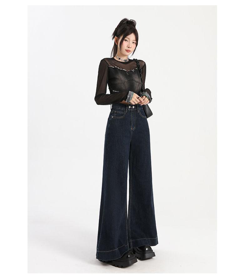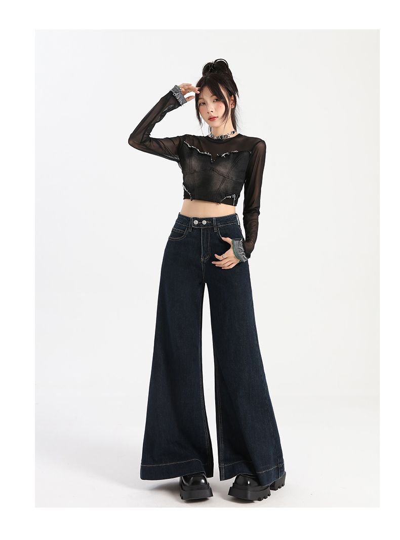 Pantalones vaqueros de cintura alta para mujer, estilo retro, versátiles, cómodos y elásticos, de pierna ancha, color azul y gris, adelgazantes, 2025