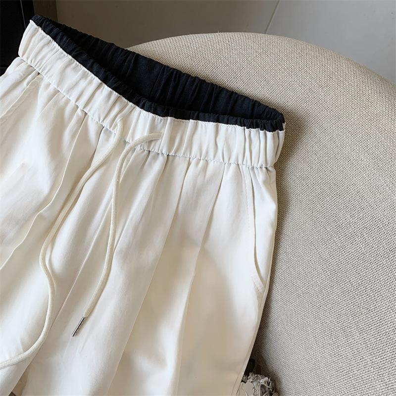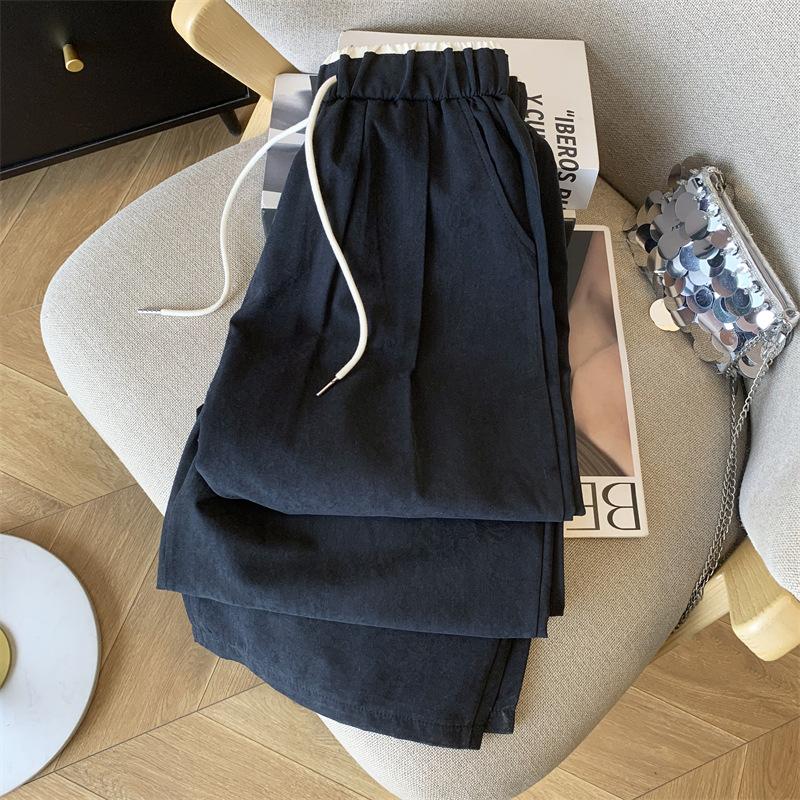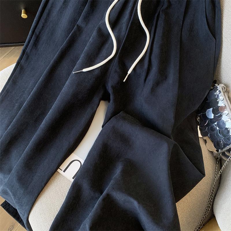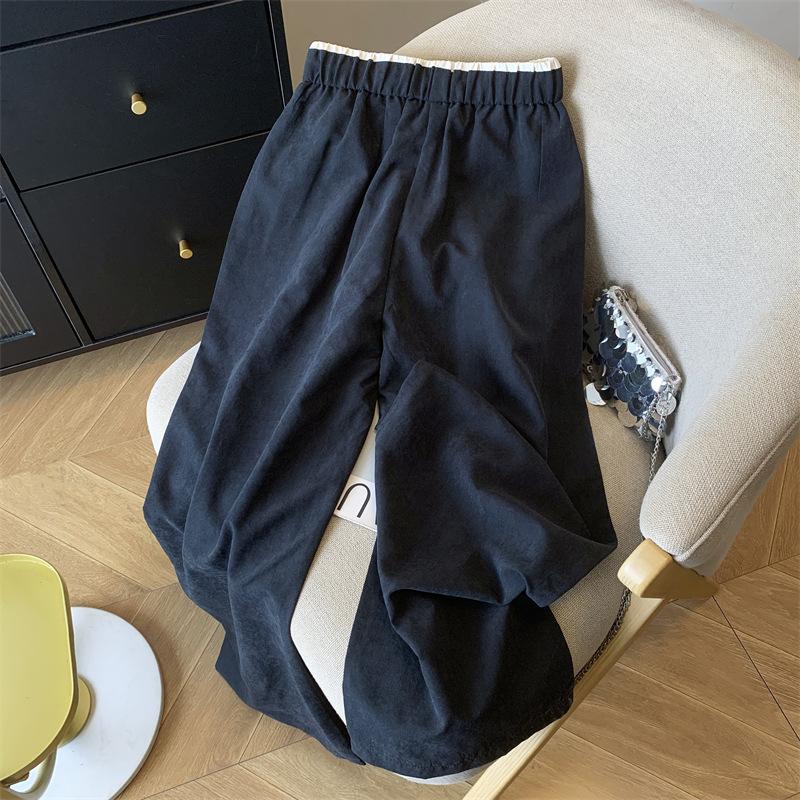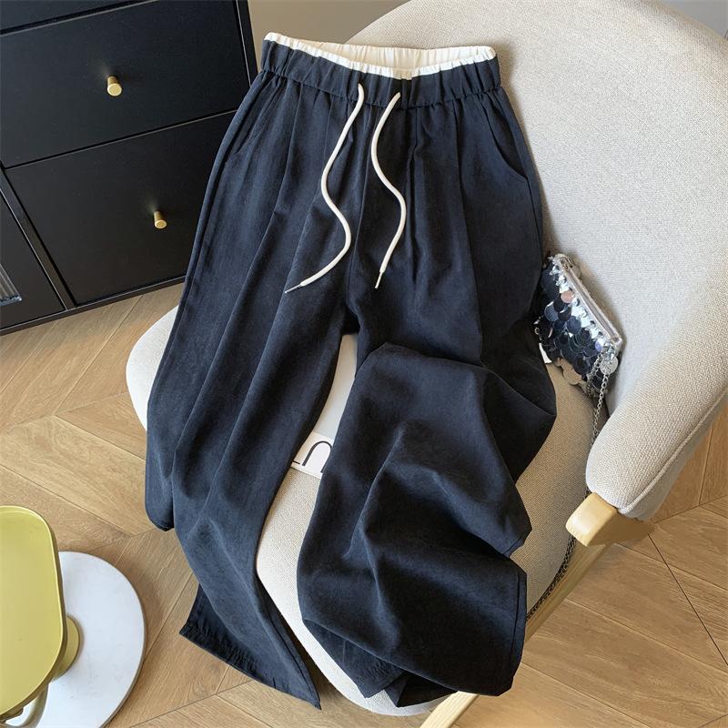 Foto real de pantalones nuevos de pierna ancha texturizados sueltos en color de contraste para primavera, estilo perezoso recto casual deportivo para combinar con todo
